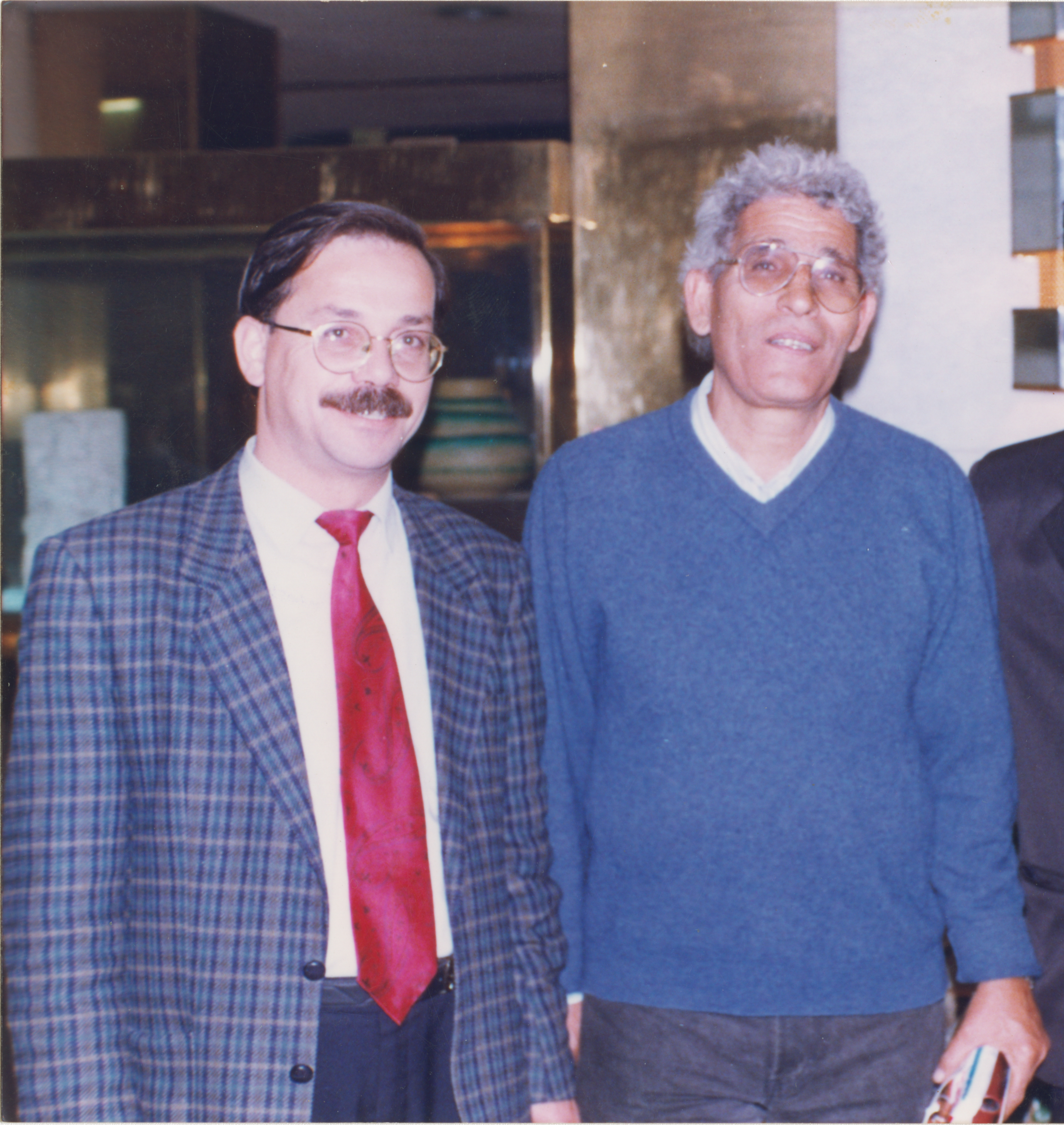 شاعر فلسطيني برفقة الشاعر العراقي محمد عفيف مطر في أحد المهرجانات في بغداد