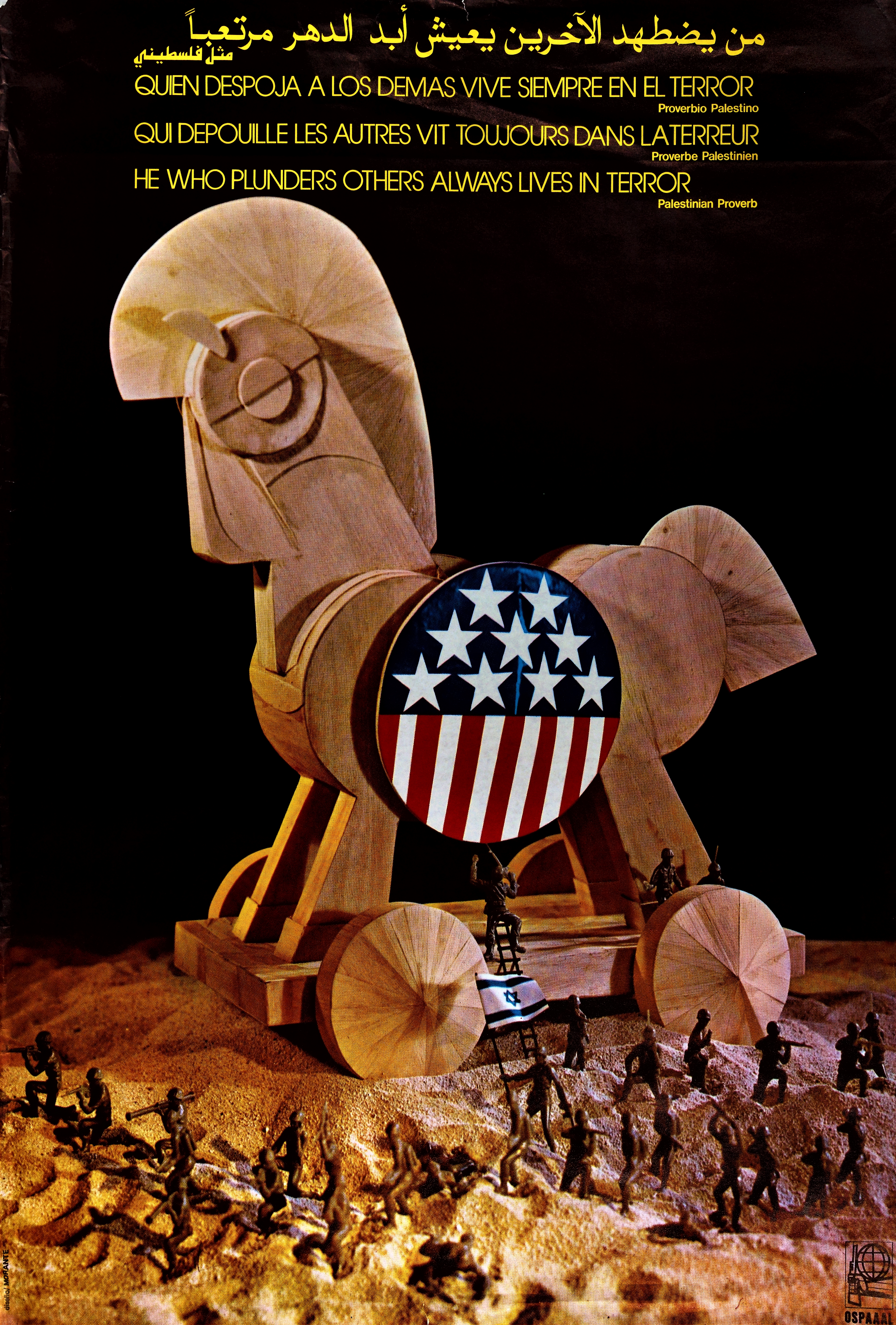 ملصق بعنوان "من يضطهد الآخرين يعيش أبد الدهر مرتعبًا" صادر عن منظمة التضامن بين شعوب آسيا وإفريقيا وأمريكا اللاتينية (أوسبال).