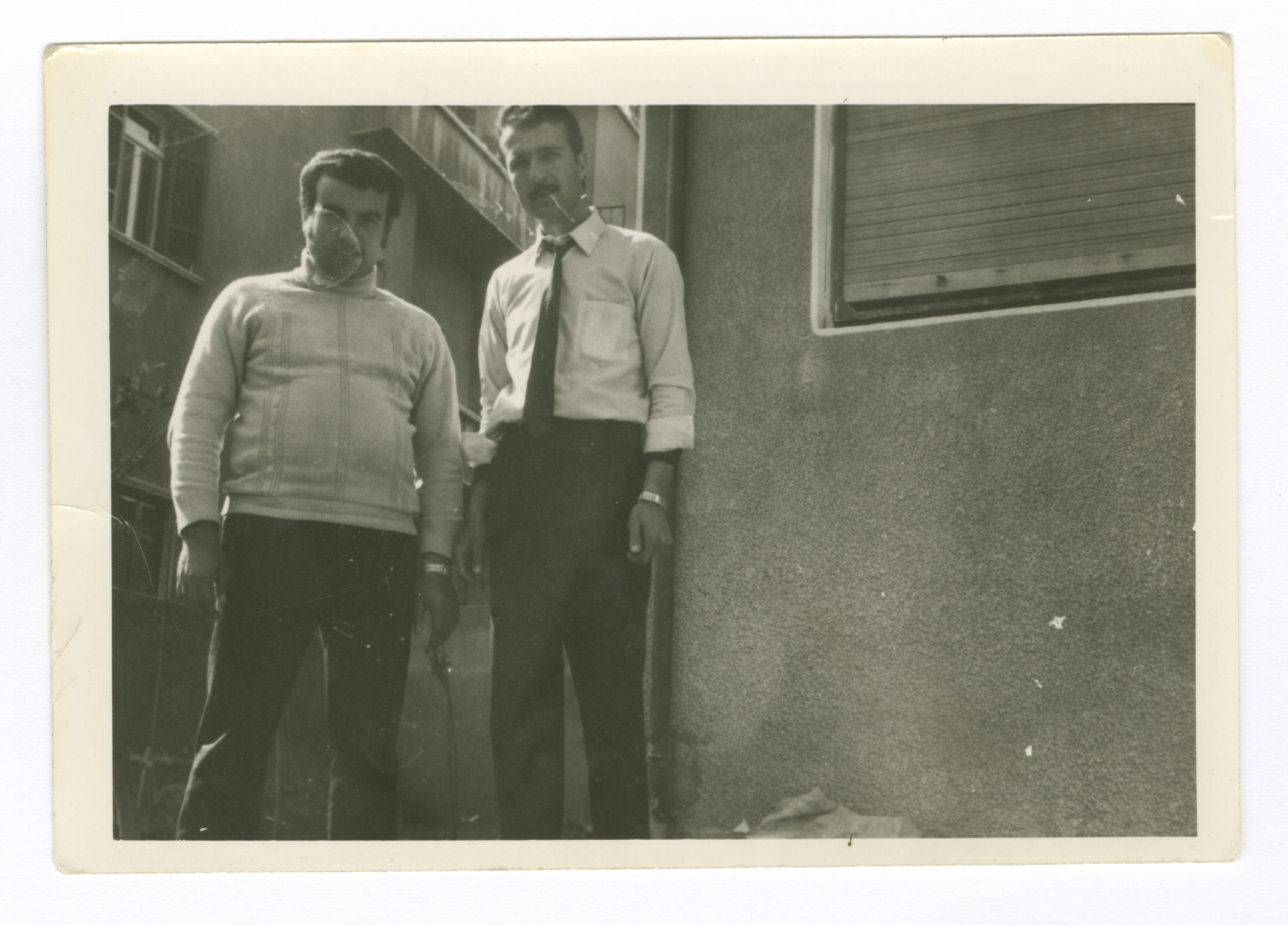 محمد سامي عرار (شمالأ) من قرية قراوة بني زيد شمال غرب رام الله، مع صديقه غسان أثناء فترة دراسته لتخصص الاجتماعيات في جامعة دمشق