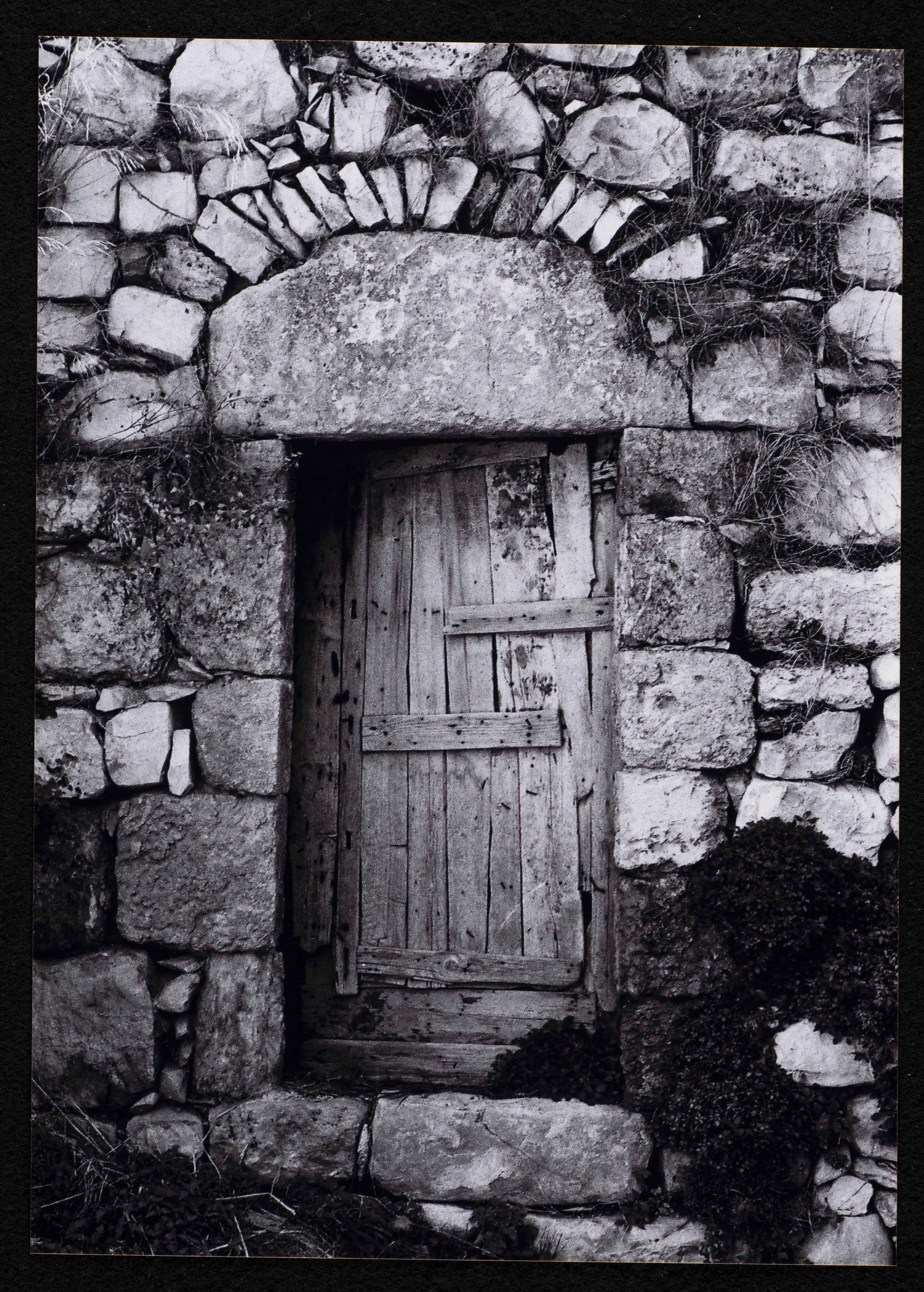 صورة غير ملونة، توثق جانباً من بيت قديم في قرية بيت ريما قضاء رام الله المحتلة.