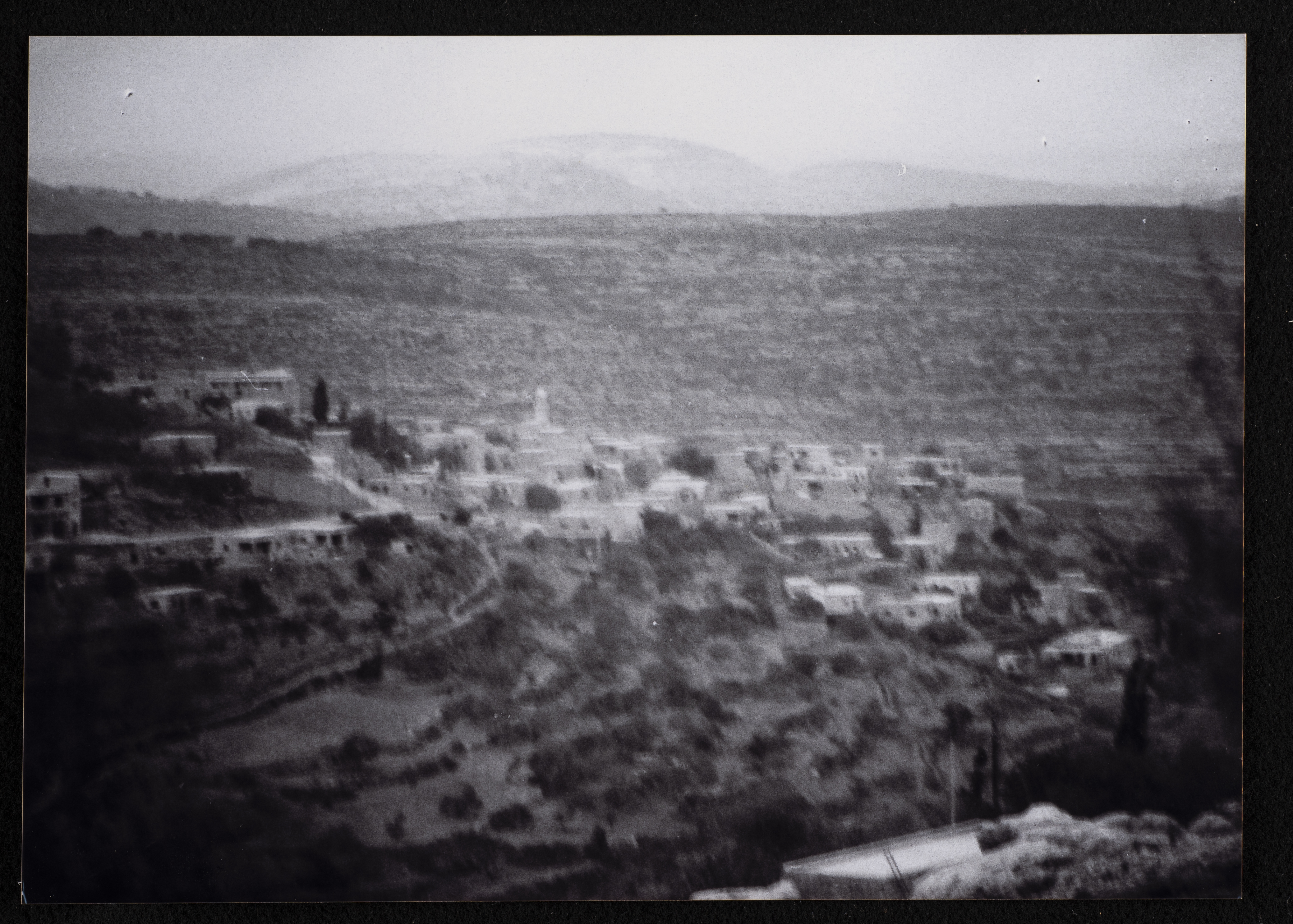 This black-and-white photograph captures a glimpse of the village of Dayr Ghassana.
