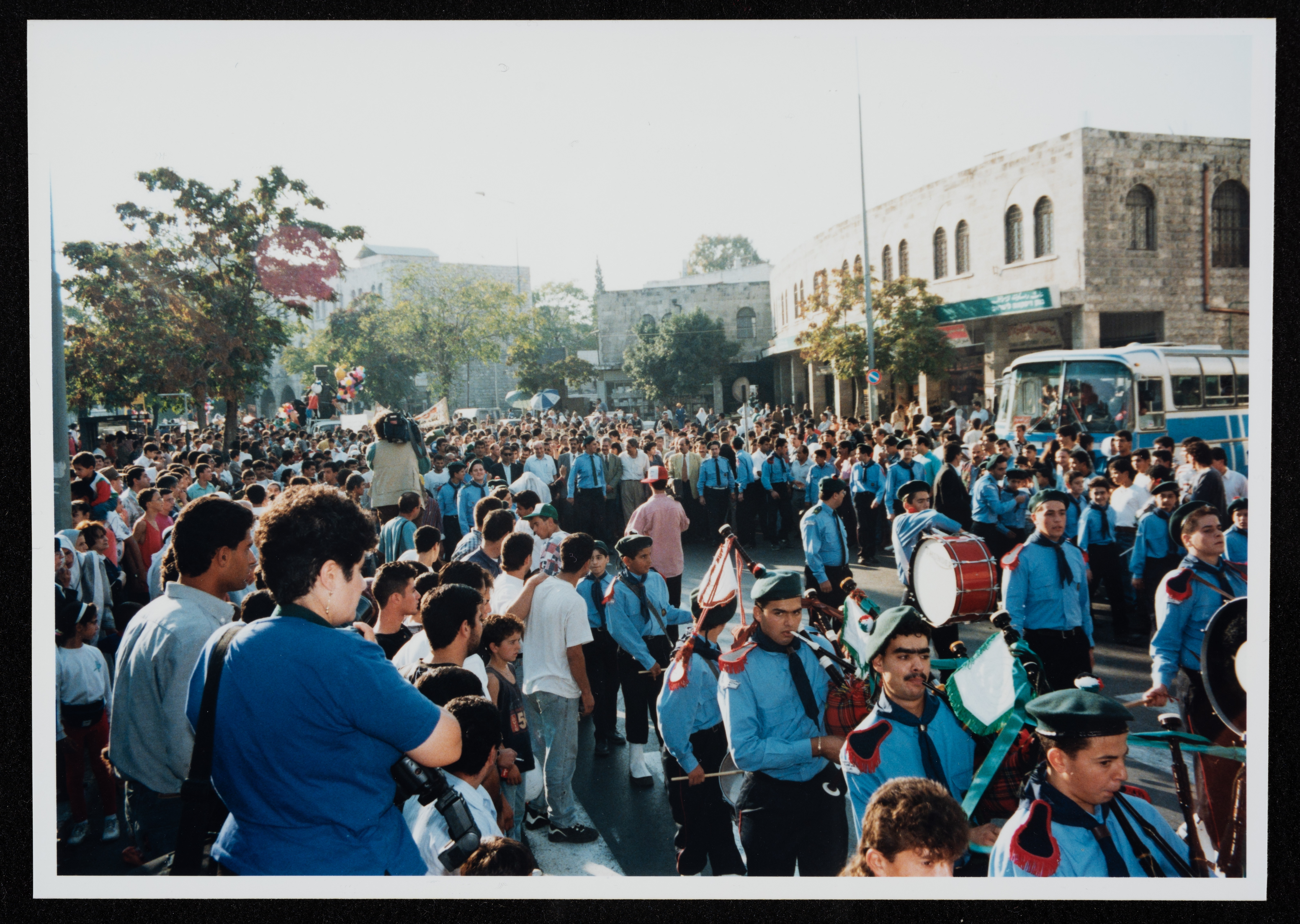 Taken in 1995, this photograph captures a glimpse of the Palestinian Puppet Theatre Festival in al-Quds (Jerusalem).