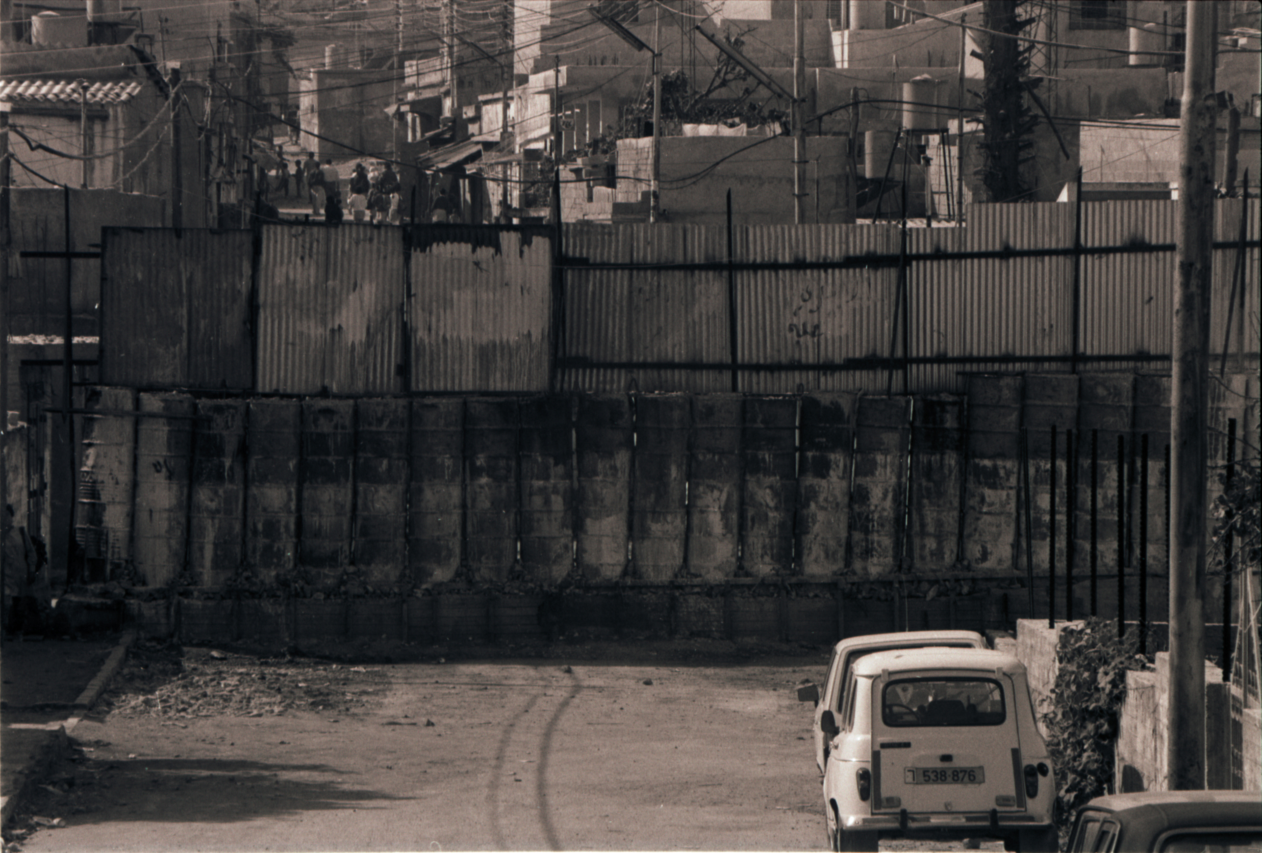 صورة غير ملونة يظهر فيها منظر عام لشارع وسياره في بيت ساحور عام 1989. وجدت في مجموعة الصحفي دانيال