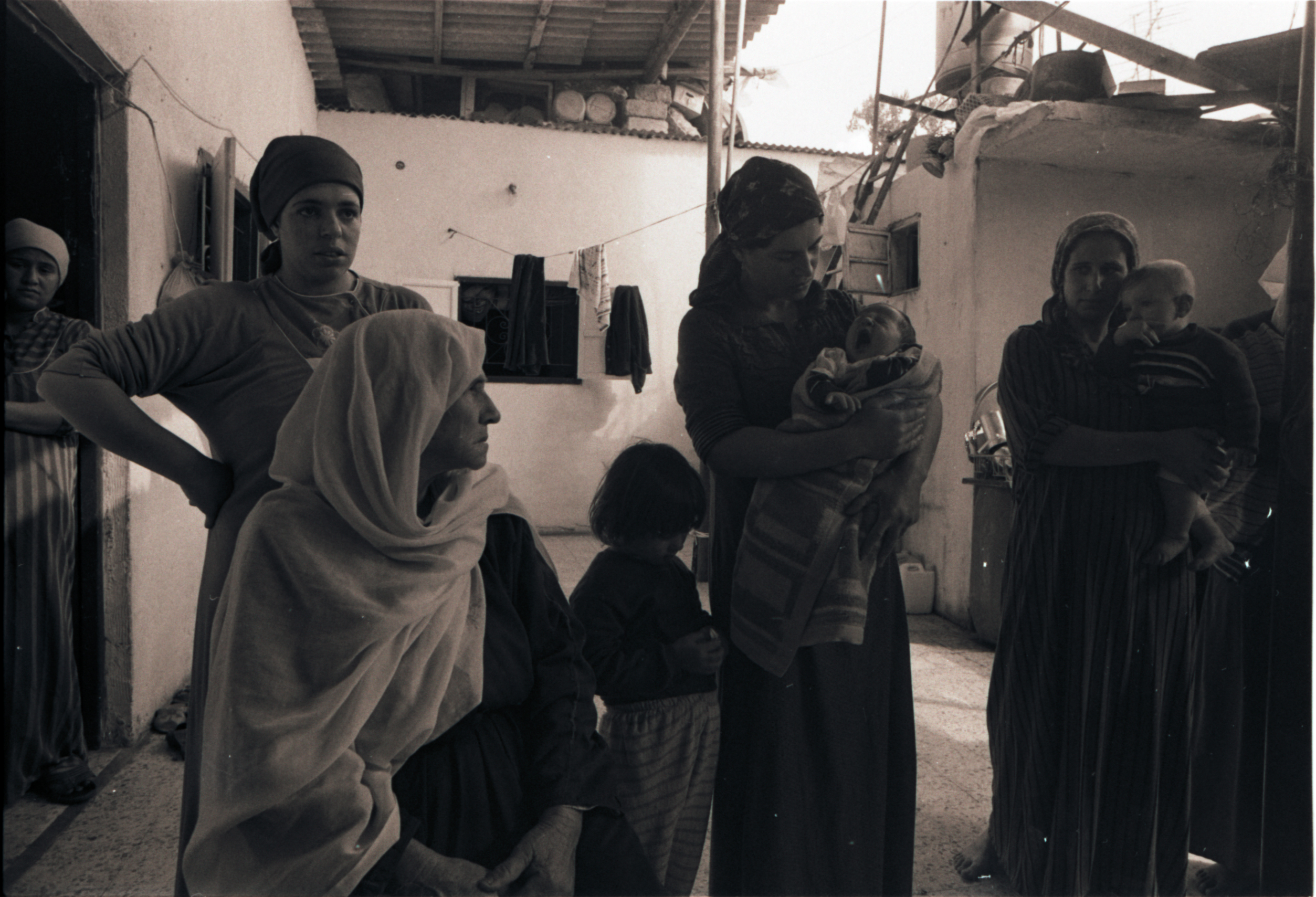 صورة غير ملونة، تظهر فيها مجموعة نساء واطفال في بلدة بيت ساحور عام 1989. وجدت في مجموعة الصحفي دانيال