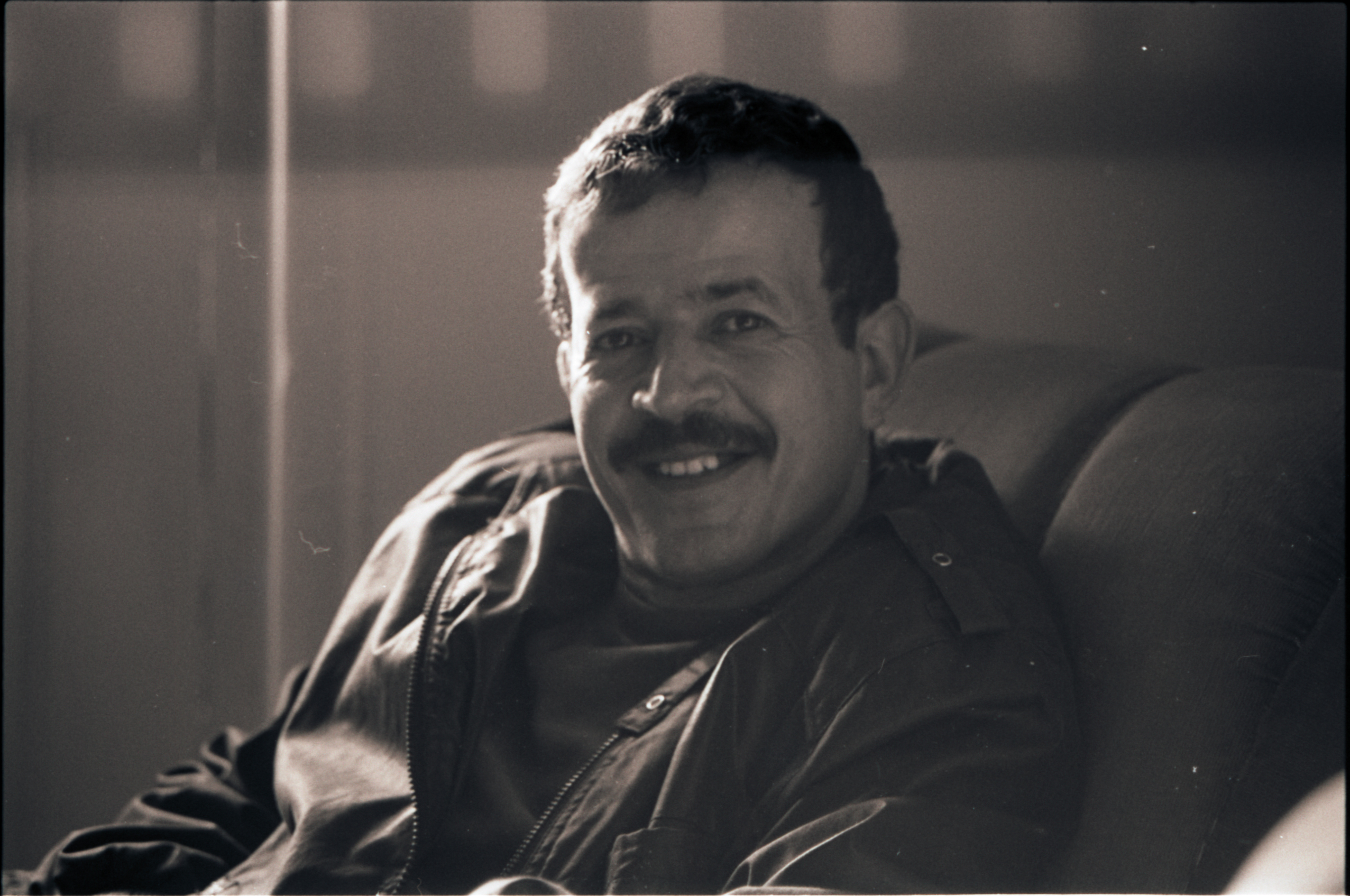 صورة شخصية غير ملونة، يظهر فيها رجل جالس من بلدة بيت ساحور عام 1989. وجدت في مجموعة الصحفي دانيال