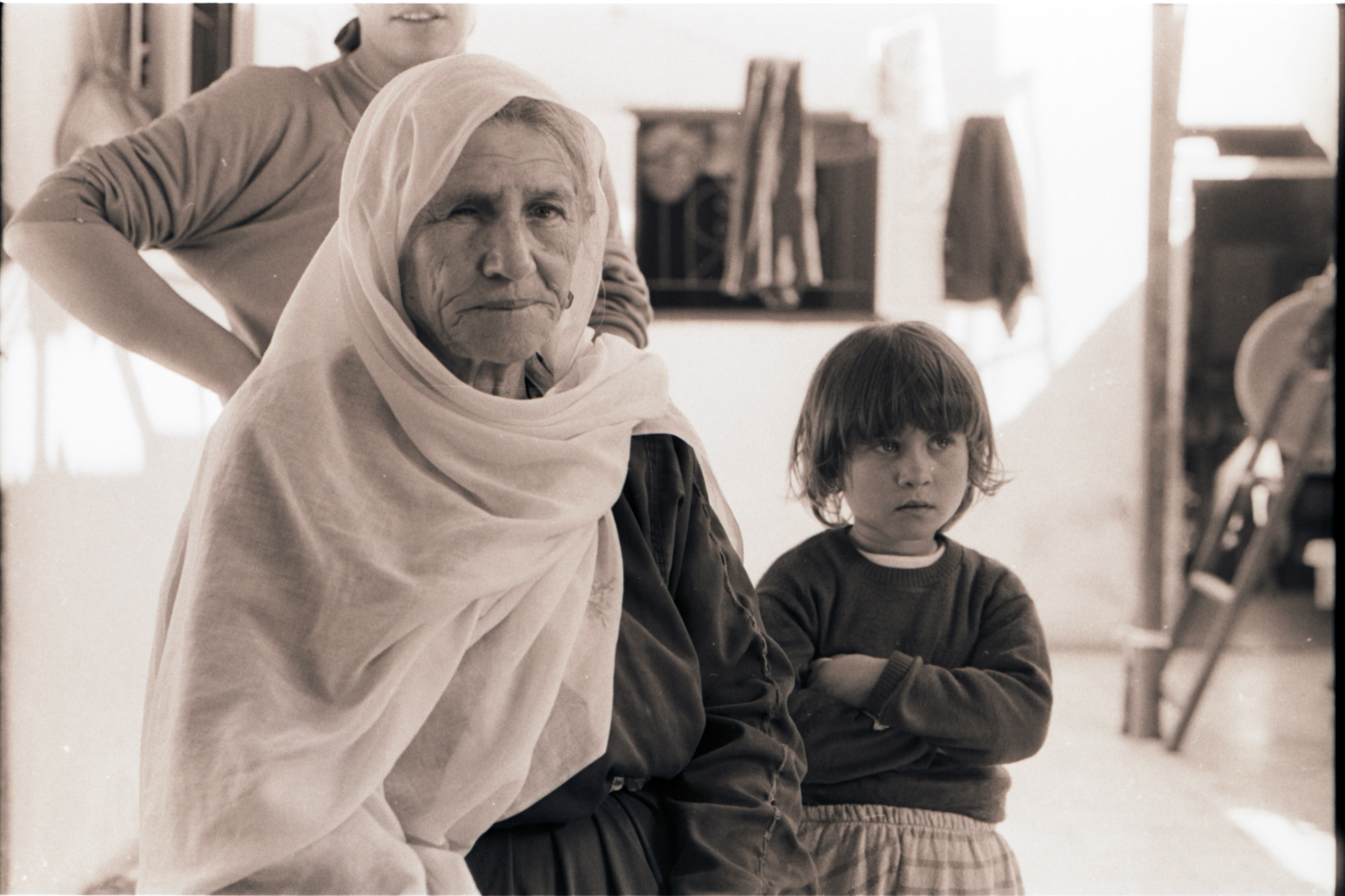 صورة غير ملونة، تظهر فيها امرأة مسنة وطفلة من بلدة بيت ساحور عام 1989. وجدت في مجموعة الصحفي دانيال