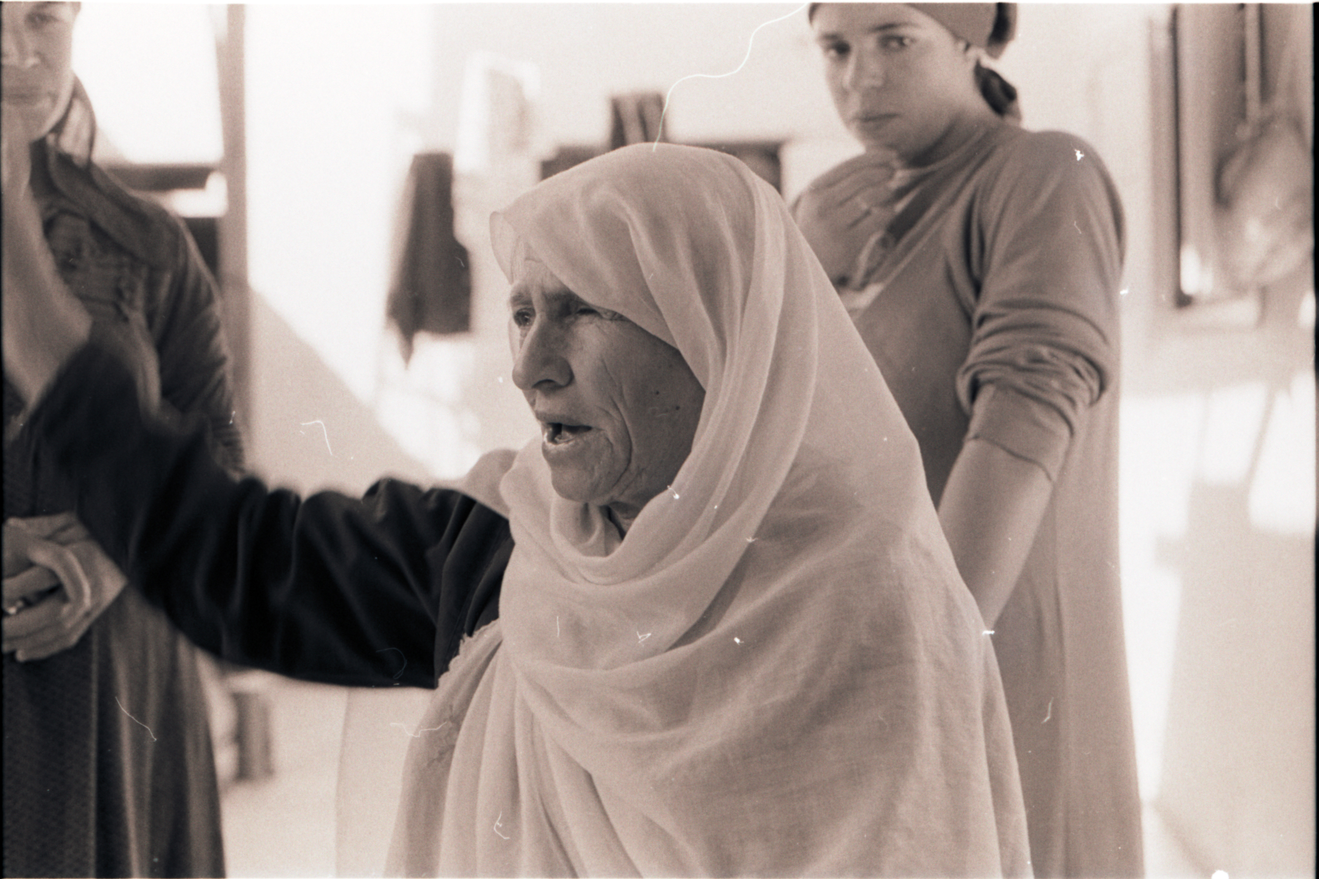 صورة شخصية غير ملونة، تظهر فيها امرأه مسنة من بلدة بيت ساحور عام 1989. وجدت في مجموعة الصحفي دانيال