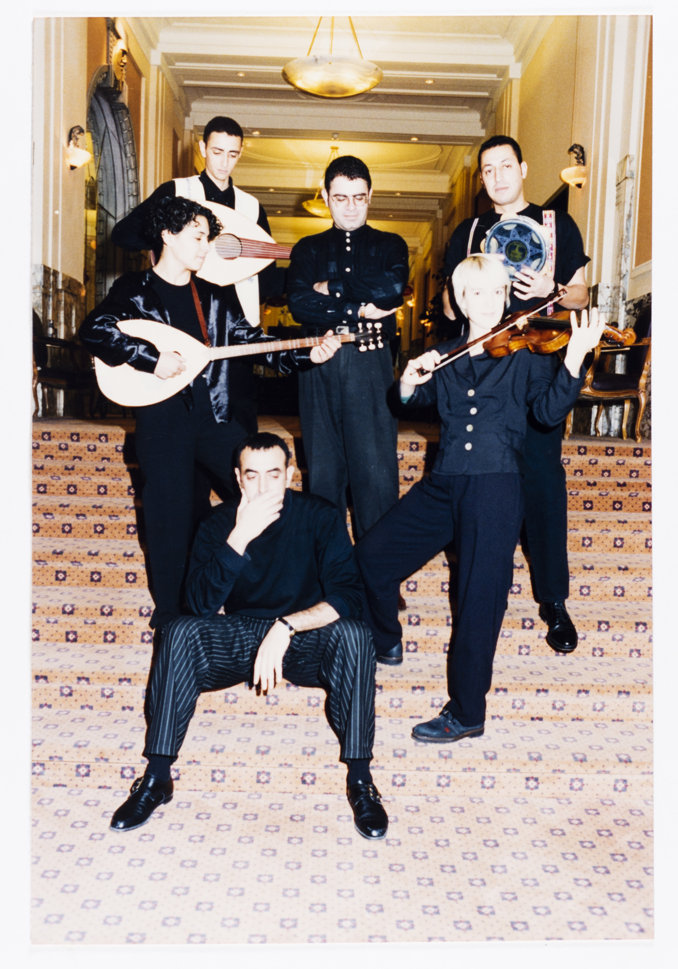 صورة ملونة من جولة فرقة صابرين إلى بروكسل عام 1995، يظهر في الصورة سعيد وعصام مراد وكاميليا جبران.