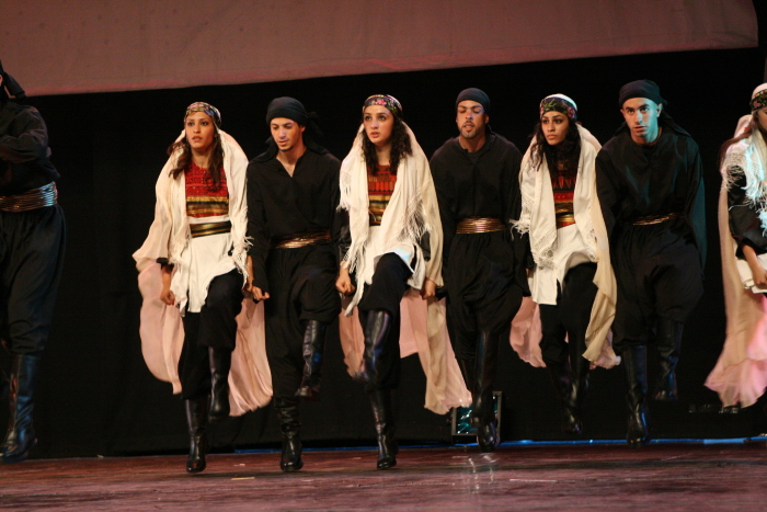 Taken in 2009, this colour photograph captures a glimpse of el-Funoun Palestinian Popular Dance Troupe's "Images Remembered" show.