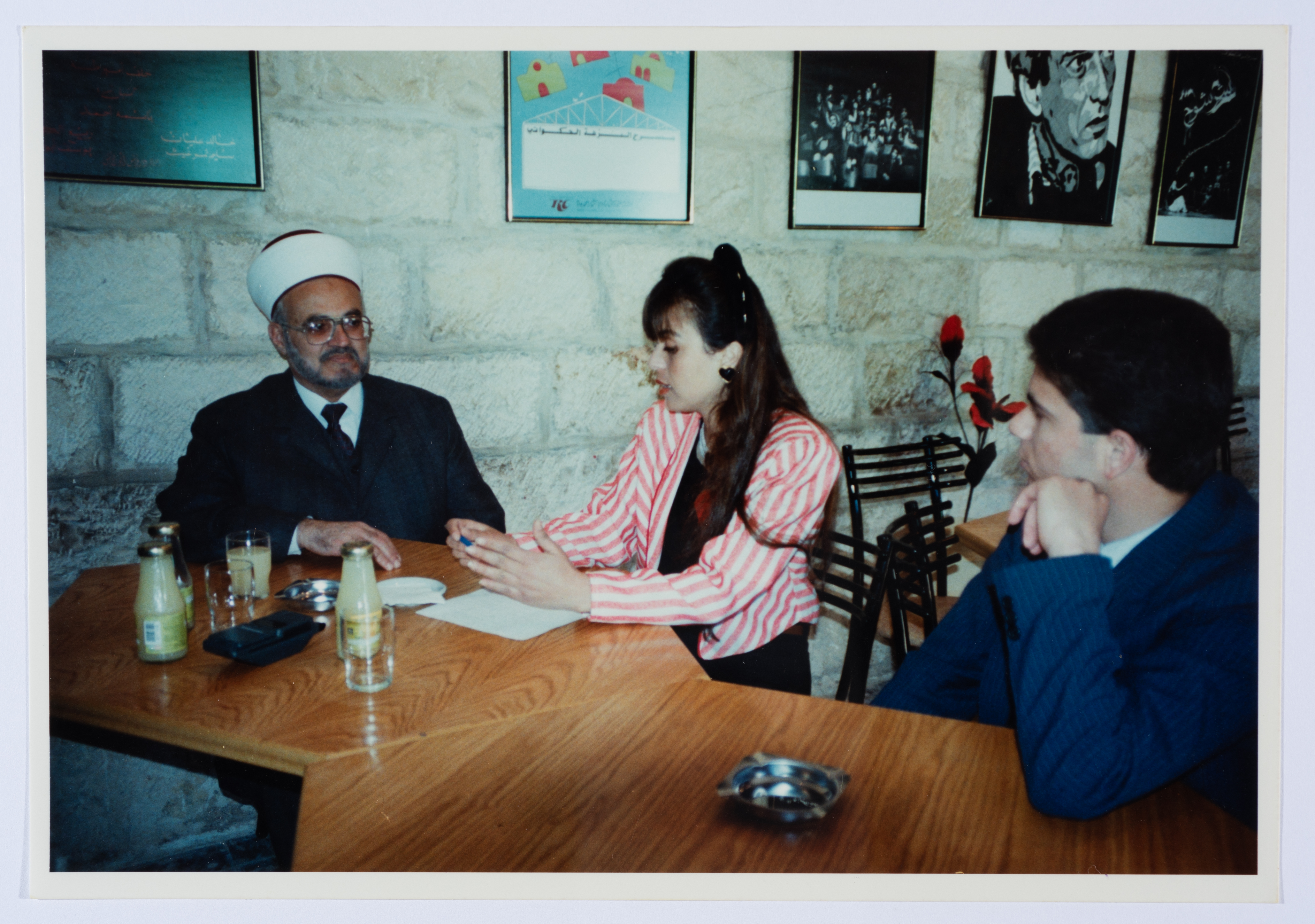 Taken in 1994, this colour photograph capture part of a workshop for the Palestinian Broadcasting Corporation (PBC) staff at the Palestinian National Theatre- al-Hakawati.