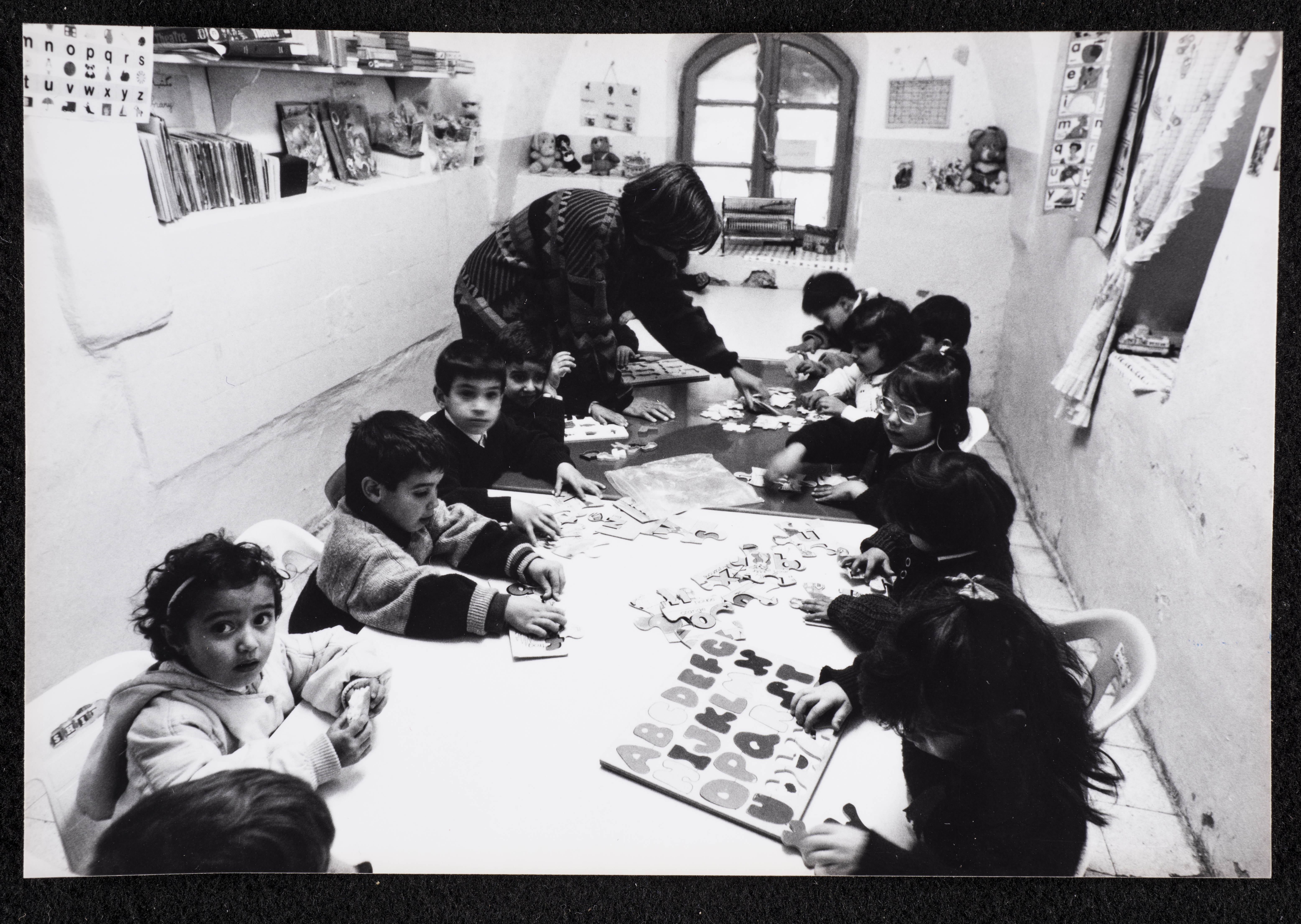 المعلمة هالة شبيطة مع طلابها في روضة الزهور