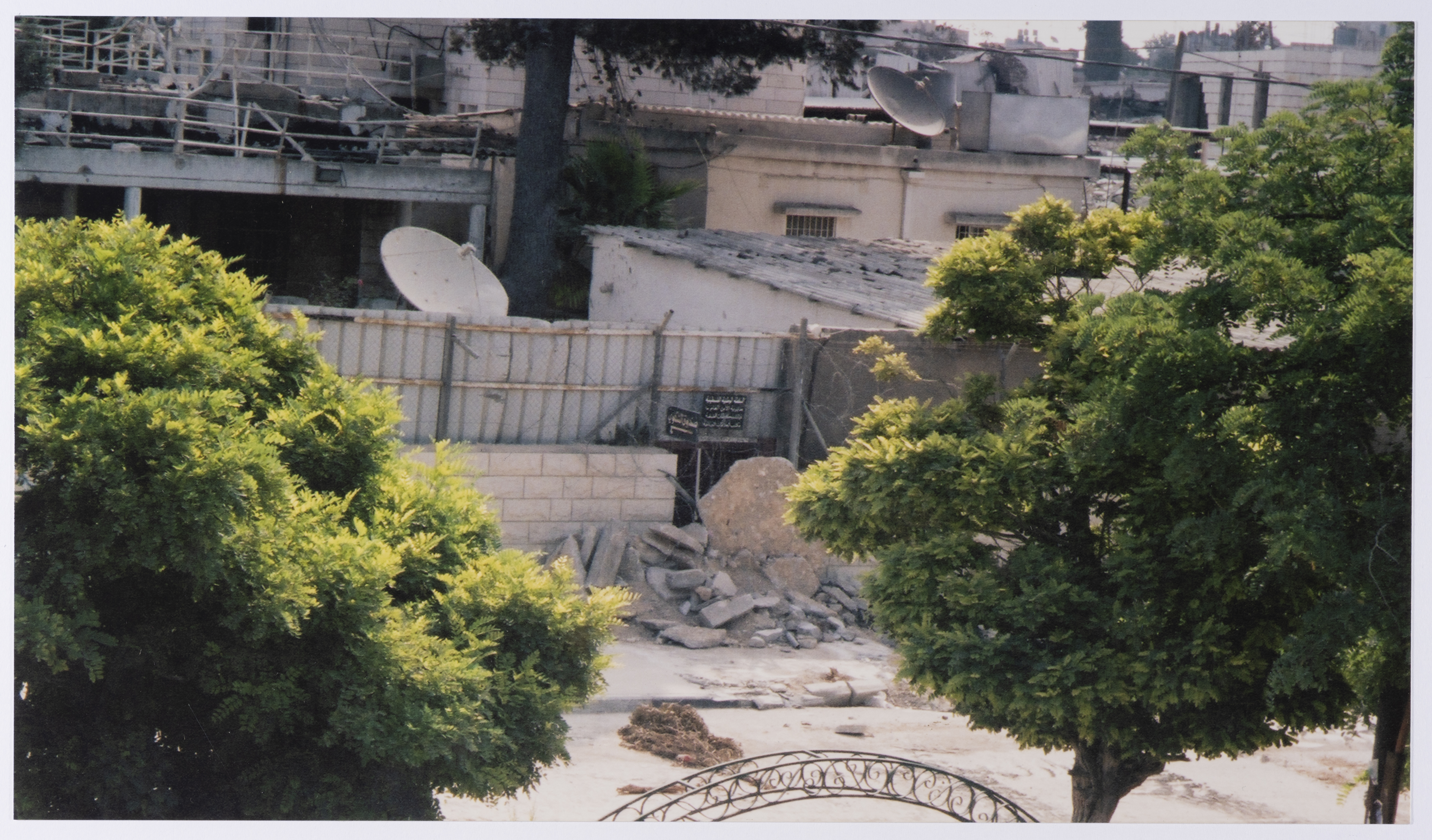 صورة ملونة من تدمير مقر الرئاسة الفلسطينية "المقاطعة" في رام الله عام 2002.