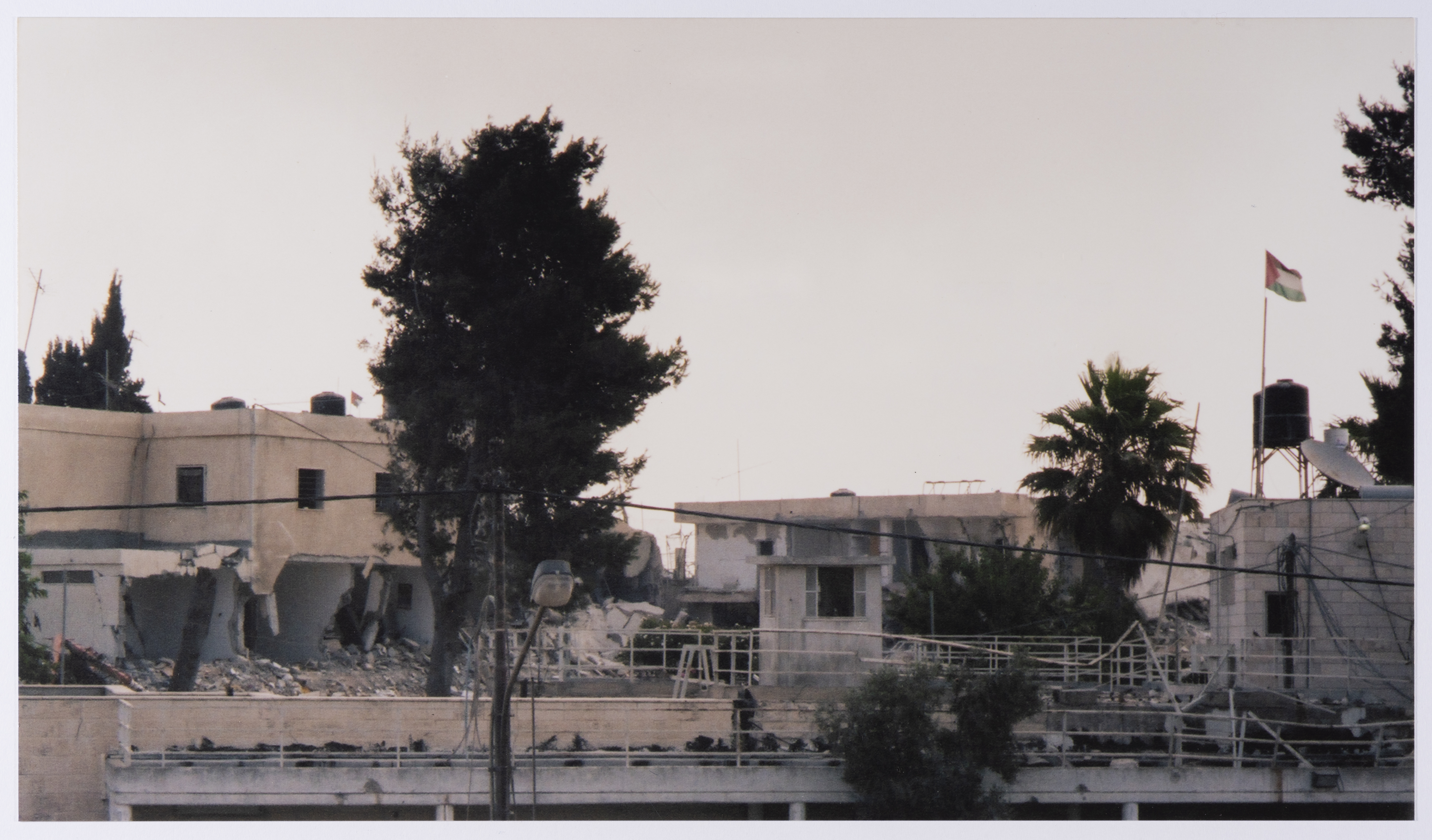 صورة ملونة من تدمير مقر الرئاسة الفلسطينية "المقاطعة" في رام الله عام 2002.