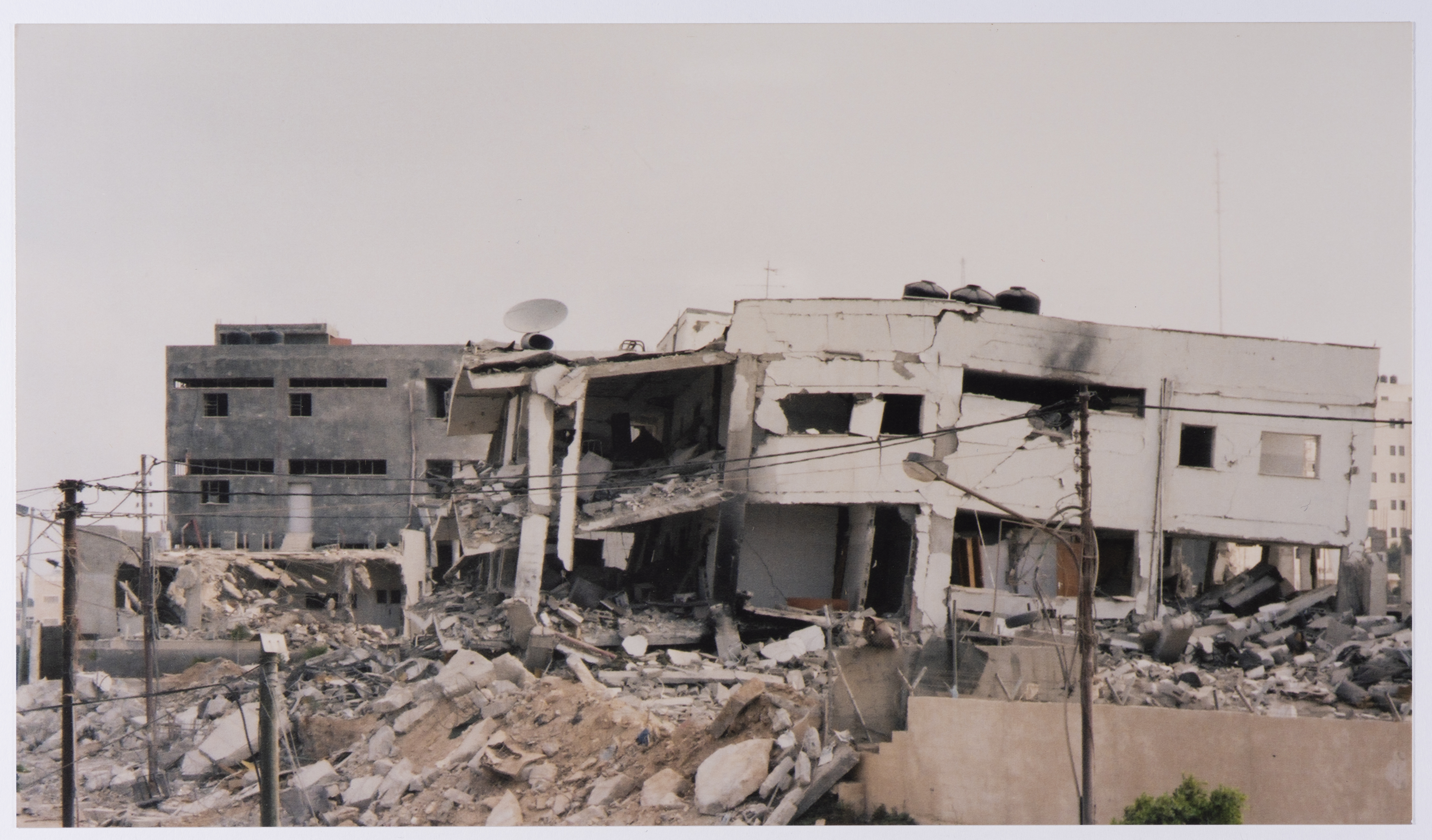 صورة ملونة من تدمير مقر الرئاسة الفلسطينية "المقاطعة" في رام الله عام 2002.