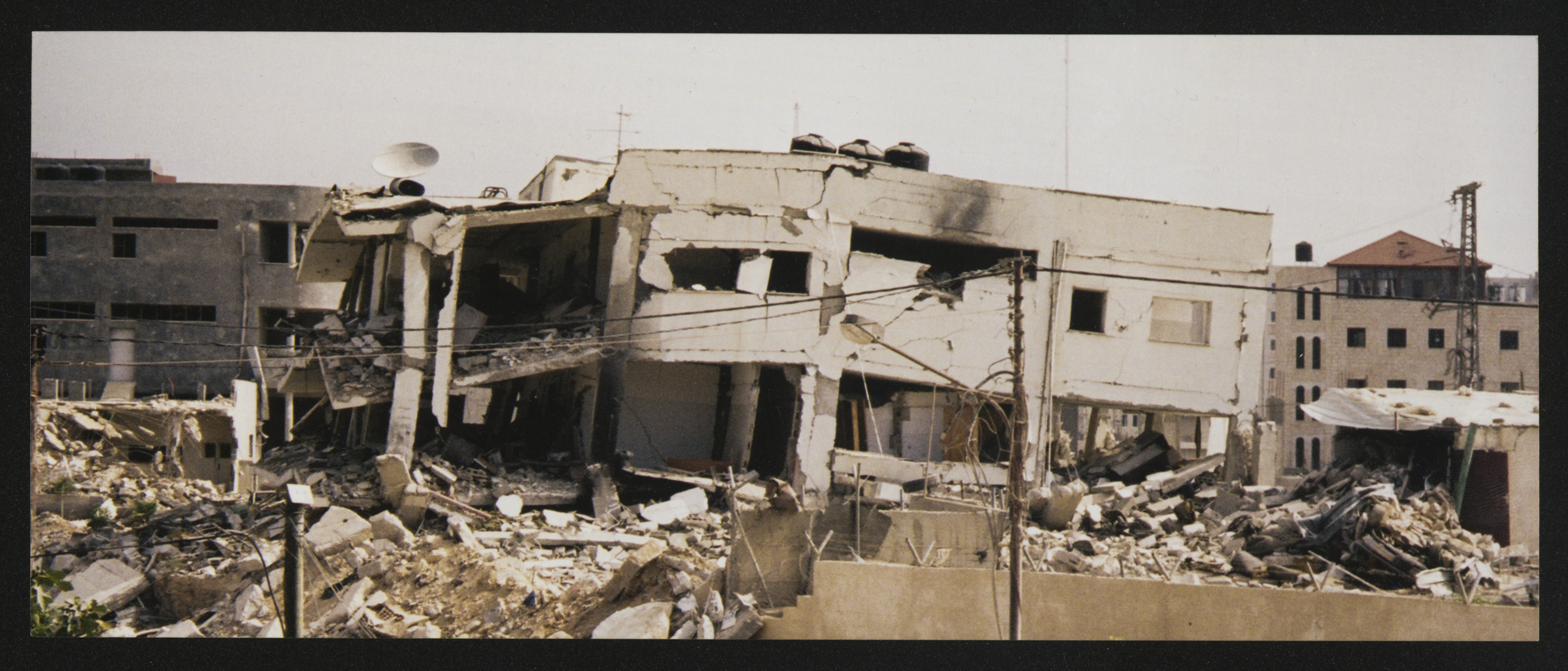 صورة ملونة لمبنى الرئاسة الفلسطينية "المقاطعة" في رام الله بعد تدميره عام 2002.