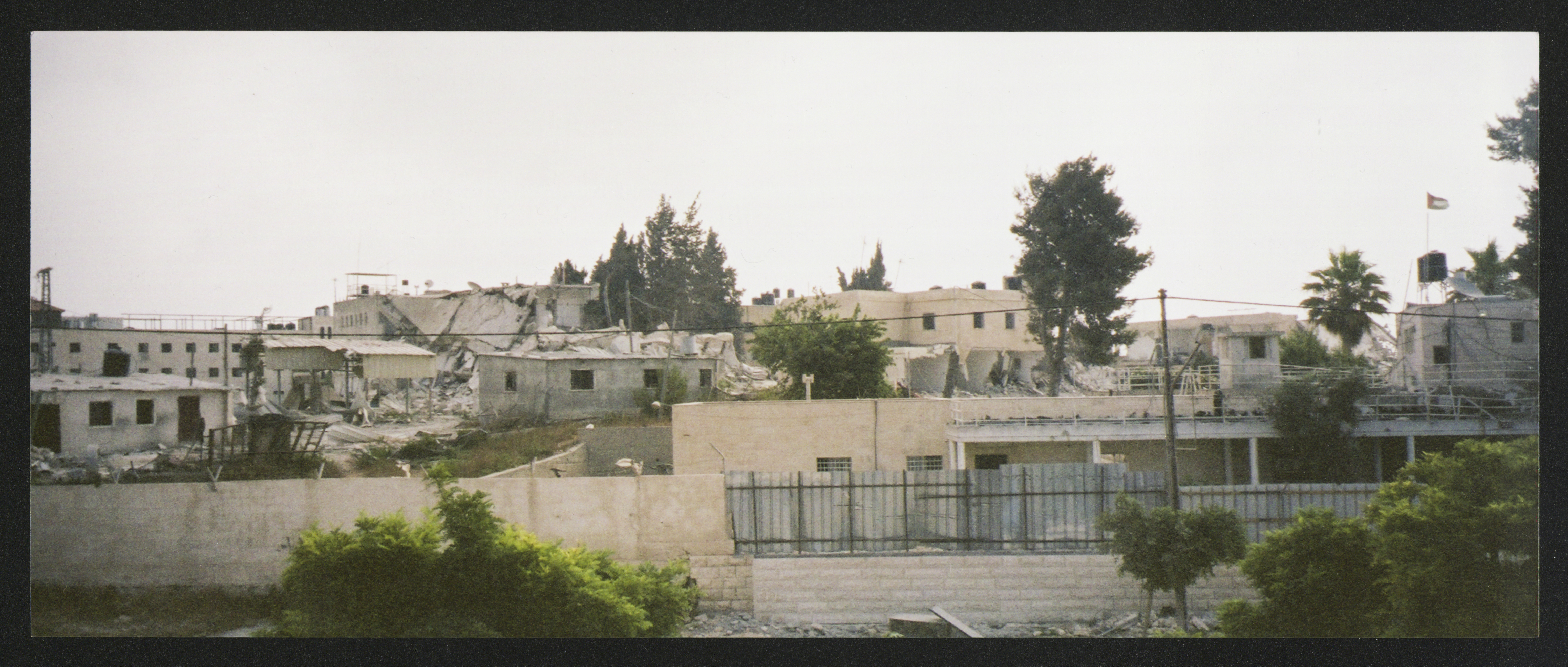 صورة ملونة لمبنى الرئاسة الفلسطينية "المقاطعة" في رام الله بعد تدميره عام 2002.
