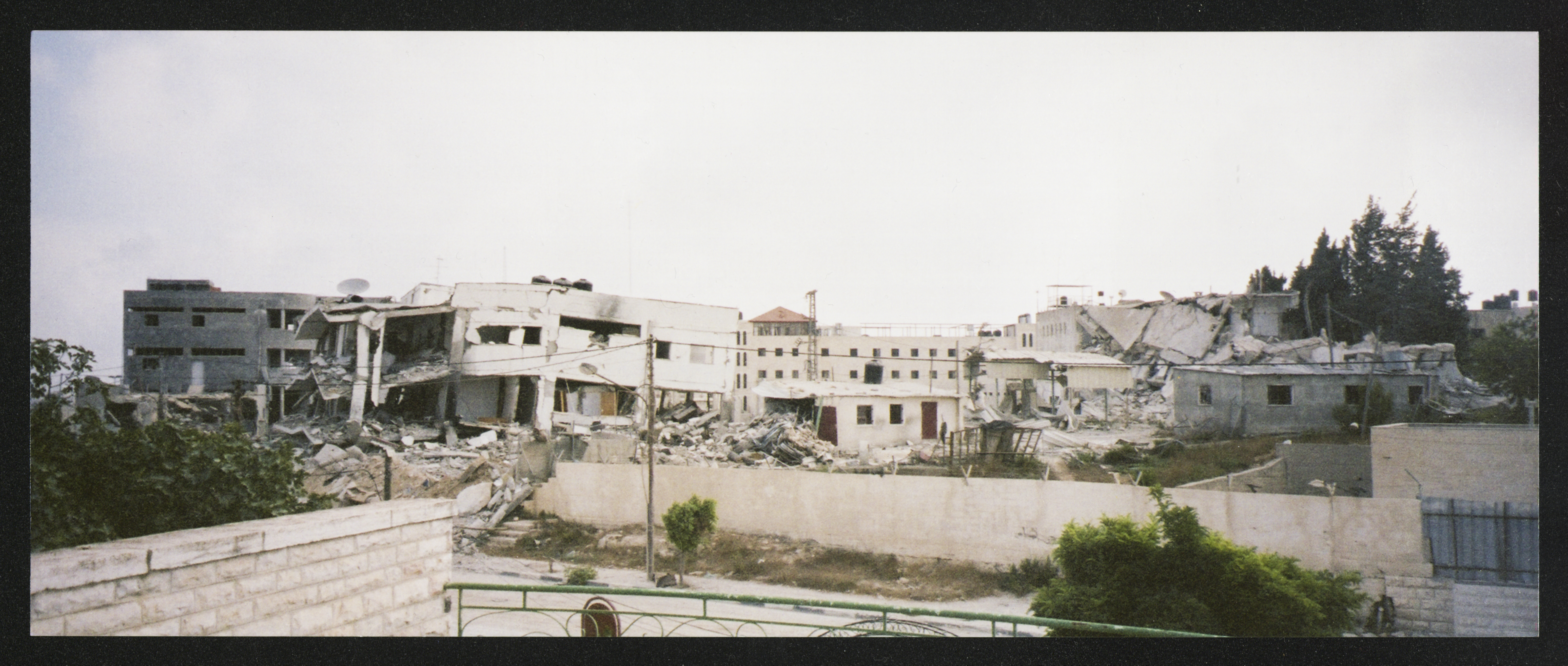 صورة ملونة لمبنى الرئاسة الفلسطينية "المقاطعة" في رام الله بعد تدميره عام 2002.