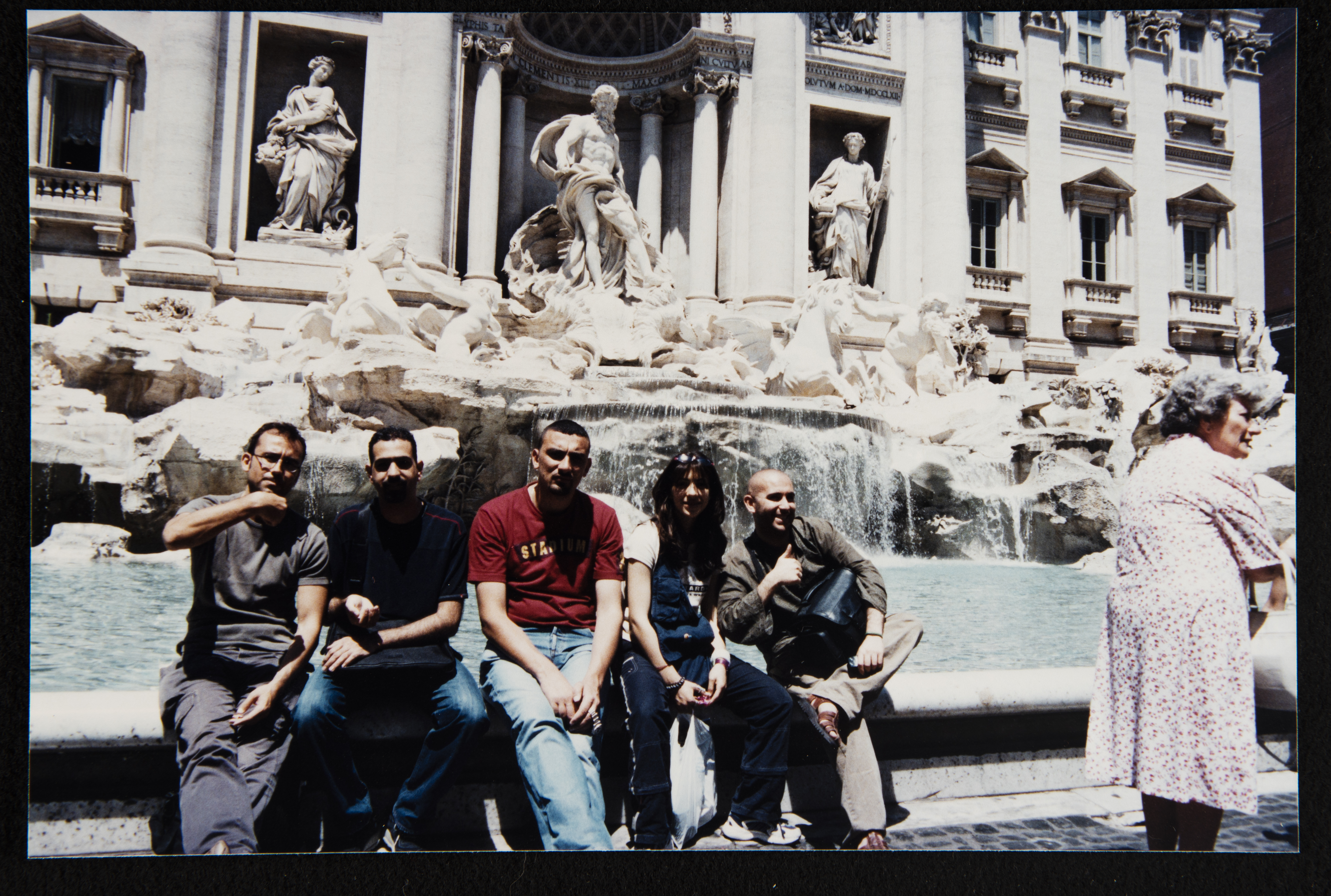 A colour photograph capturing the theatrical performance of the Inad Theatre play "Miladeh & Ramadan" in Italy. Produced by Inad Theatre, the play featured a cast, namely, Khâlid al-Masû, Nicola Rûzâiny, Ruba Subhi. Muhammad Jawad, and Marina Barham.