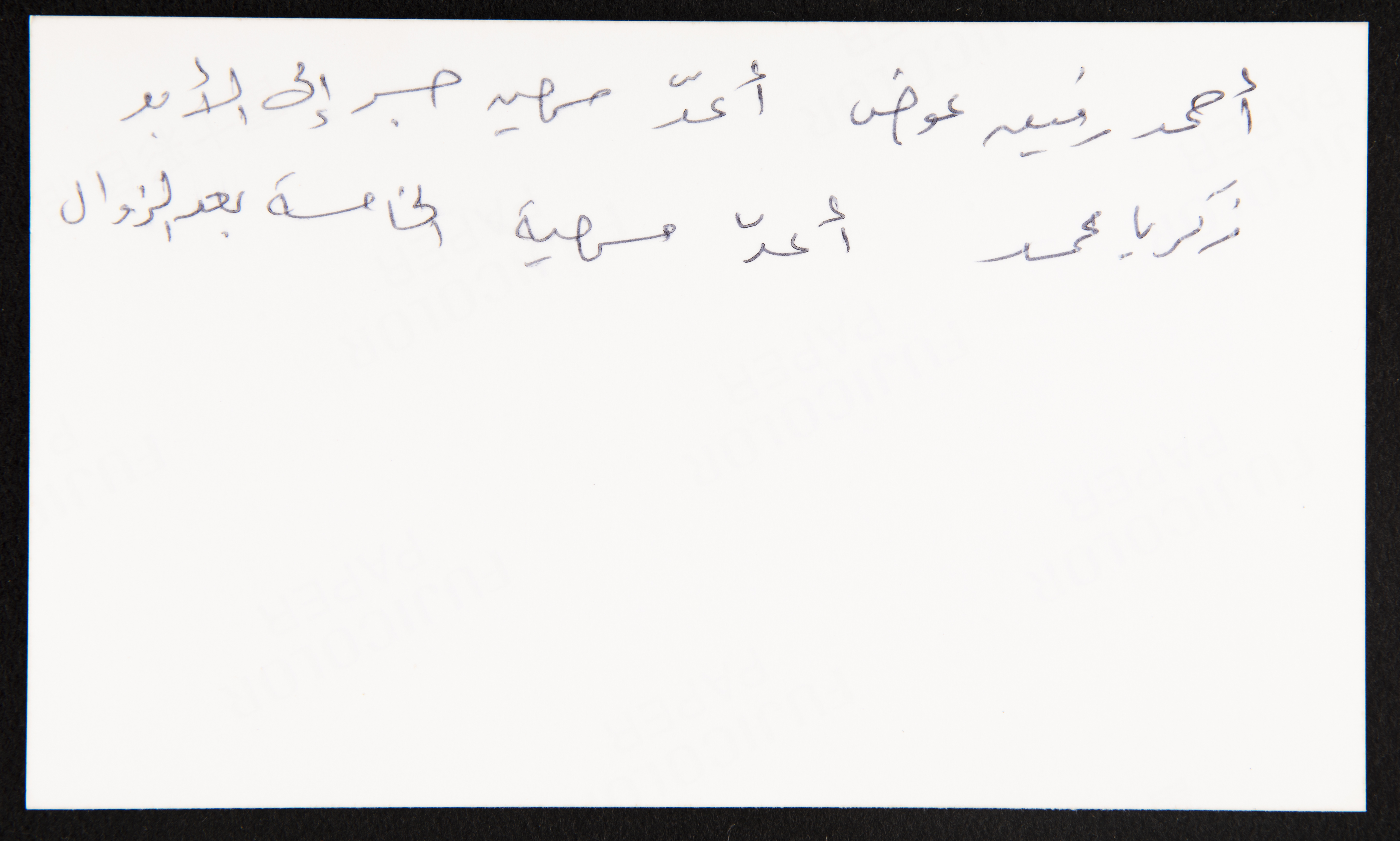 صورة ملونة يظهر فيها كل من زكريا محمد واحمد رفيق عوض في مسرح عناد، وقد عمل زكريا محمد على إعداد مسرحية "الخامسة بعد الزوال"، وعمل احمد رفيق عوض على إعداد مسرحية "جسر إلى الأبد".