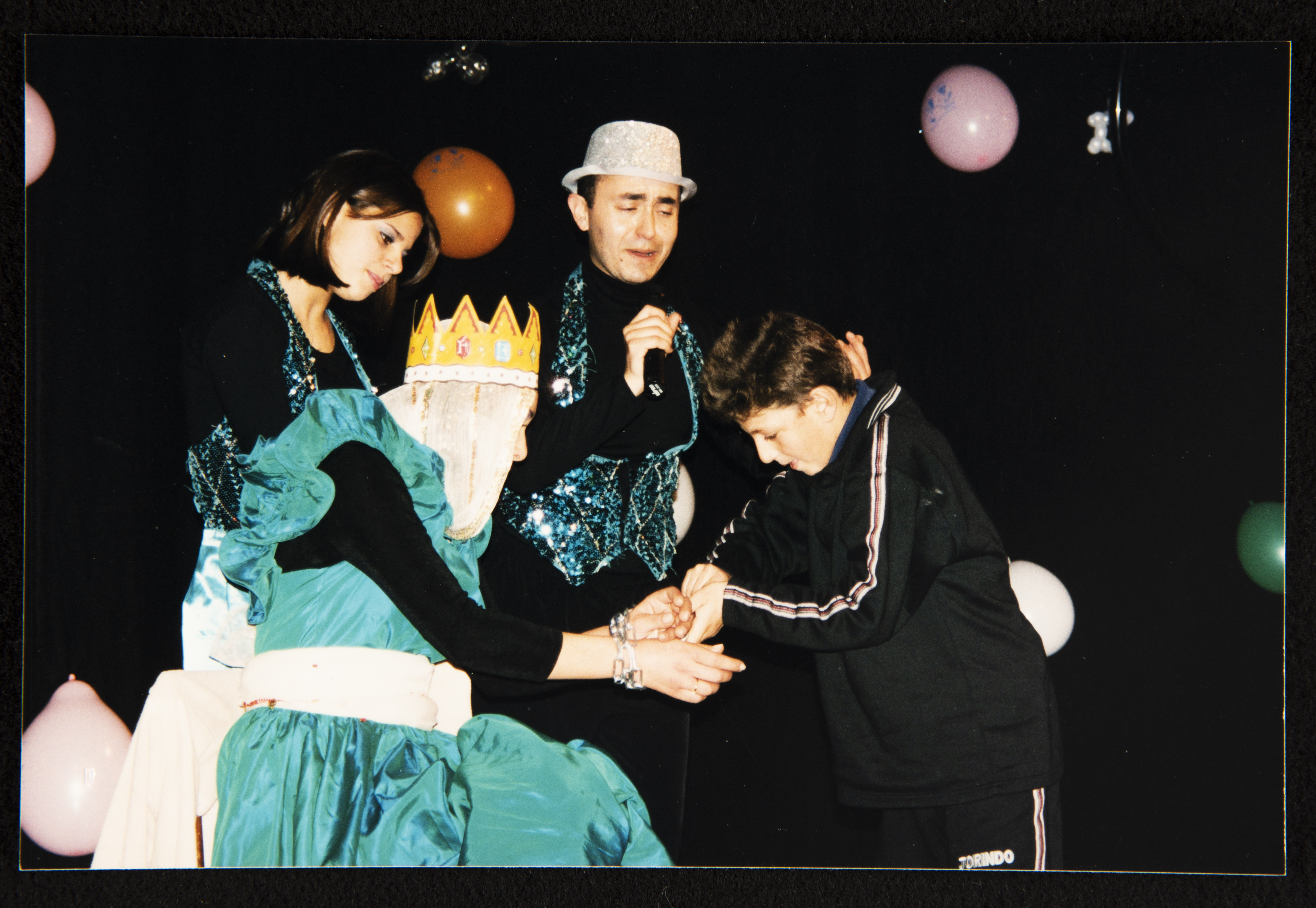 صورة ملونة من عرض مسرحية كراكوزي، من إنتاج مسرح عناد، في مسرح الحكواتي في القدس.
