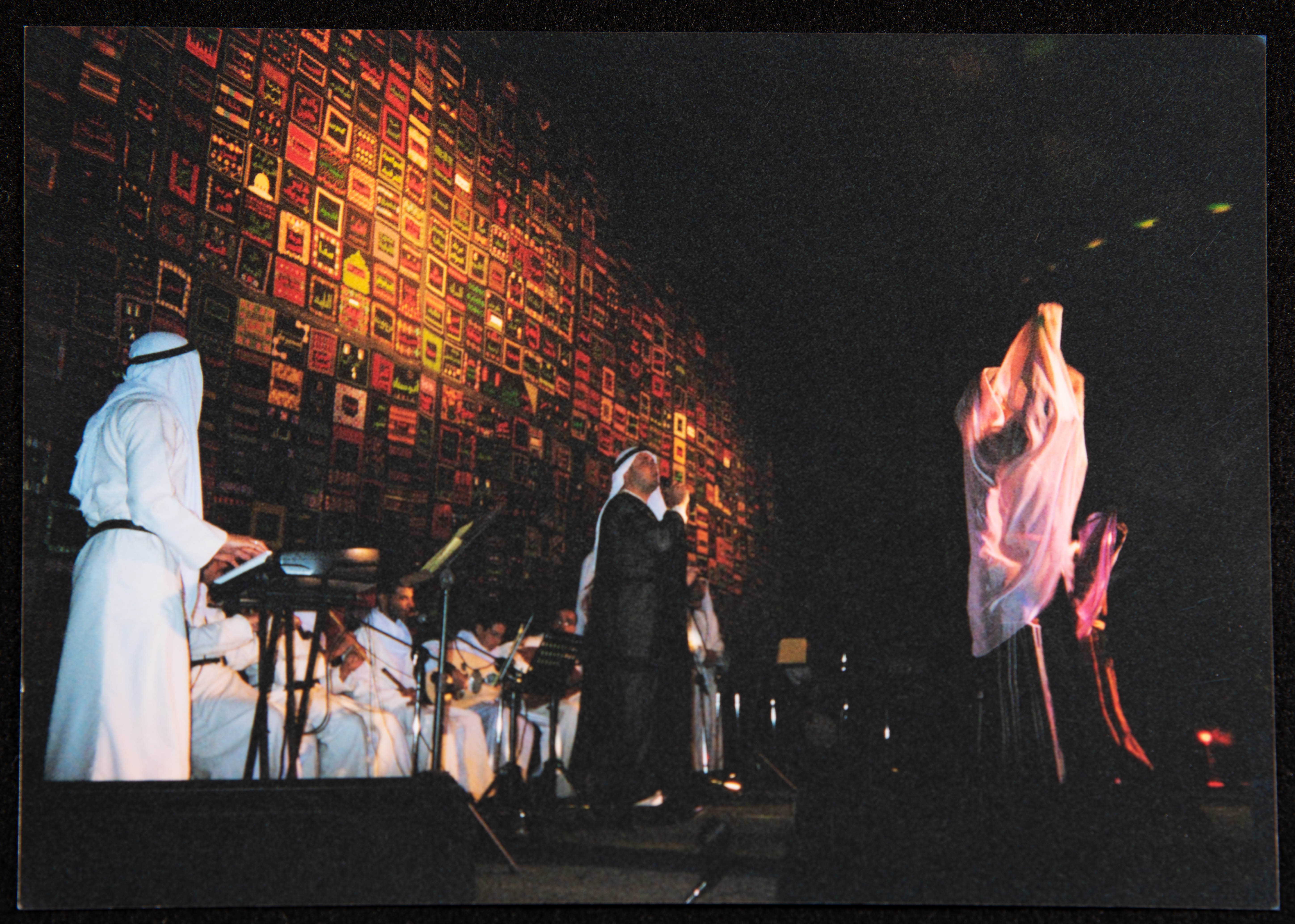 صورة ملونة تظهر فيها مشاركة فرقة الحنونة في البحرين ضمن فعاليات الجمعية البحرينية لمقاومة التطبيع مع العدو الصهيوني عام 2003.