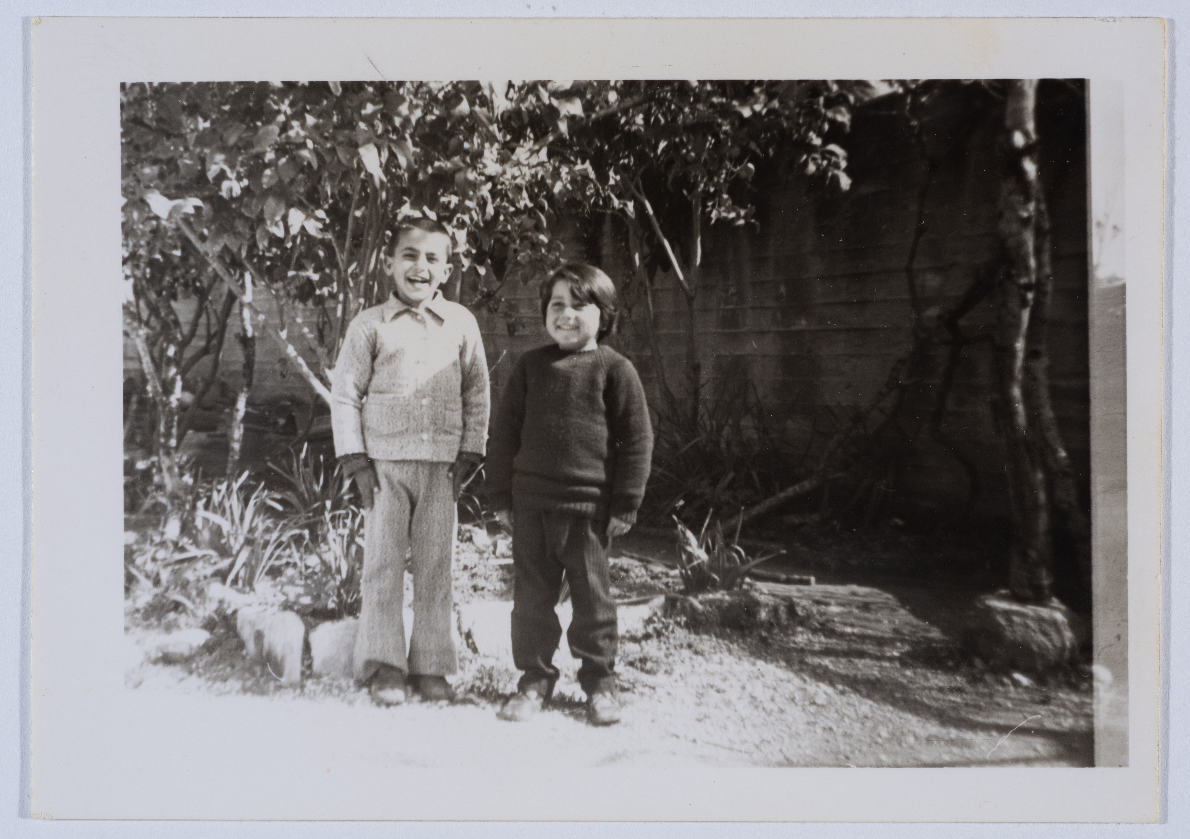 A black-and-white photograph shows children Jihad and Hatim Hiwwari.