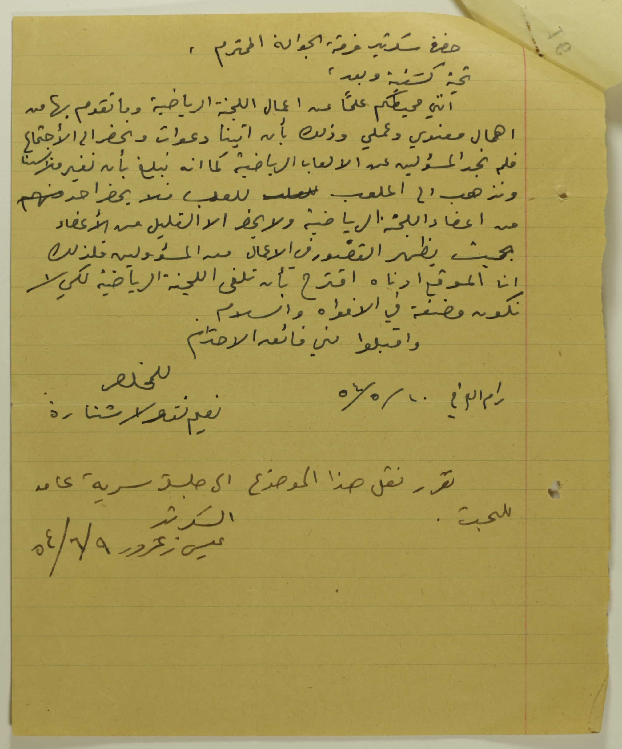 رسالة الى سكرتير فرقة كشافة سرية رام الله عام 1954