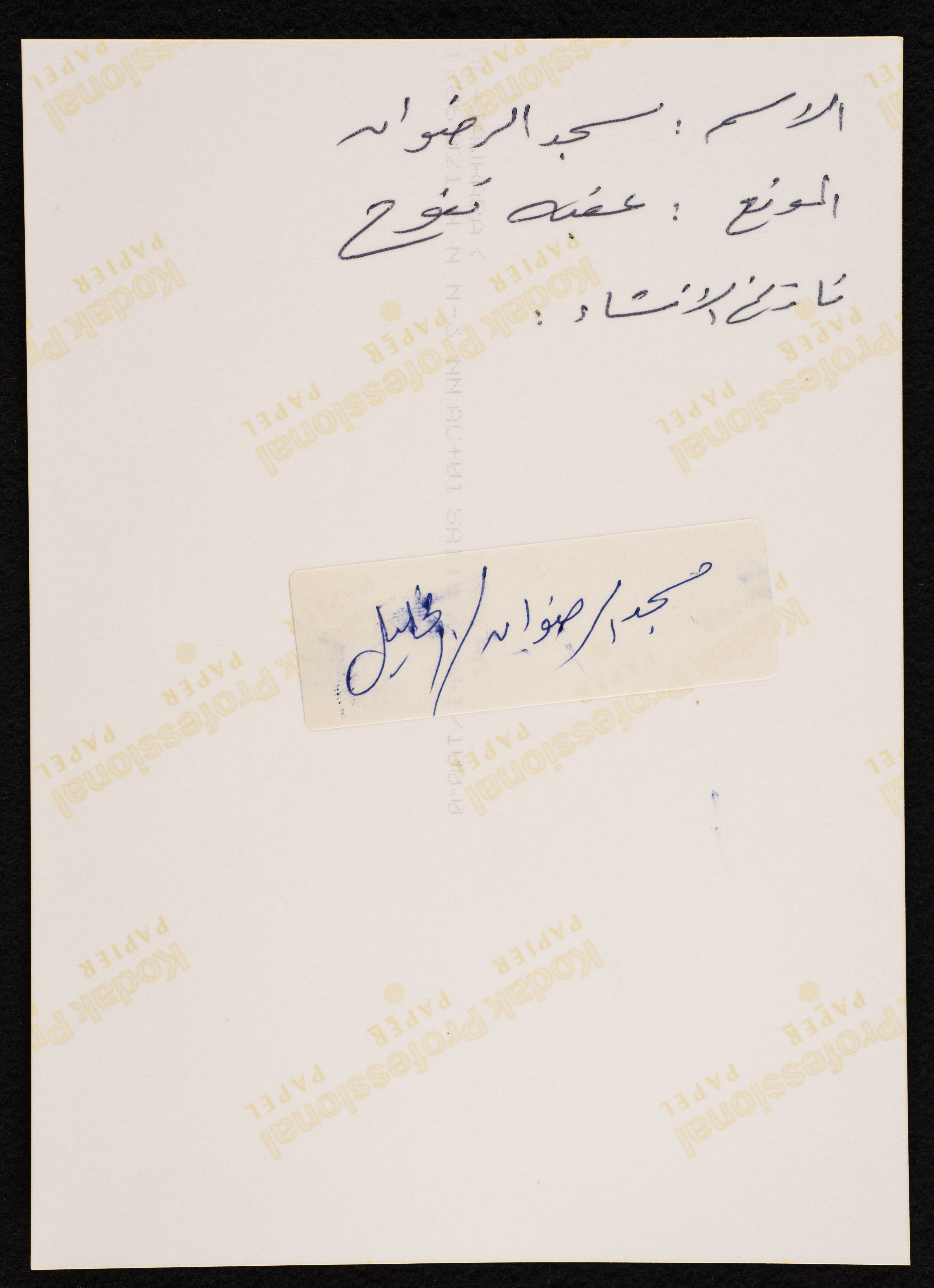 صورة ملونة لمسجد الرضوان في عقبة تفوح في الخليل. بُني المسجد سنة 1992 وهو تابع لوزارة الأوقاف والشؤون الدينية. وُجدت الصورة ضمن مجموعة مركز السنابل للدراسات والتراث الشعبي.