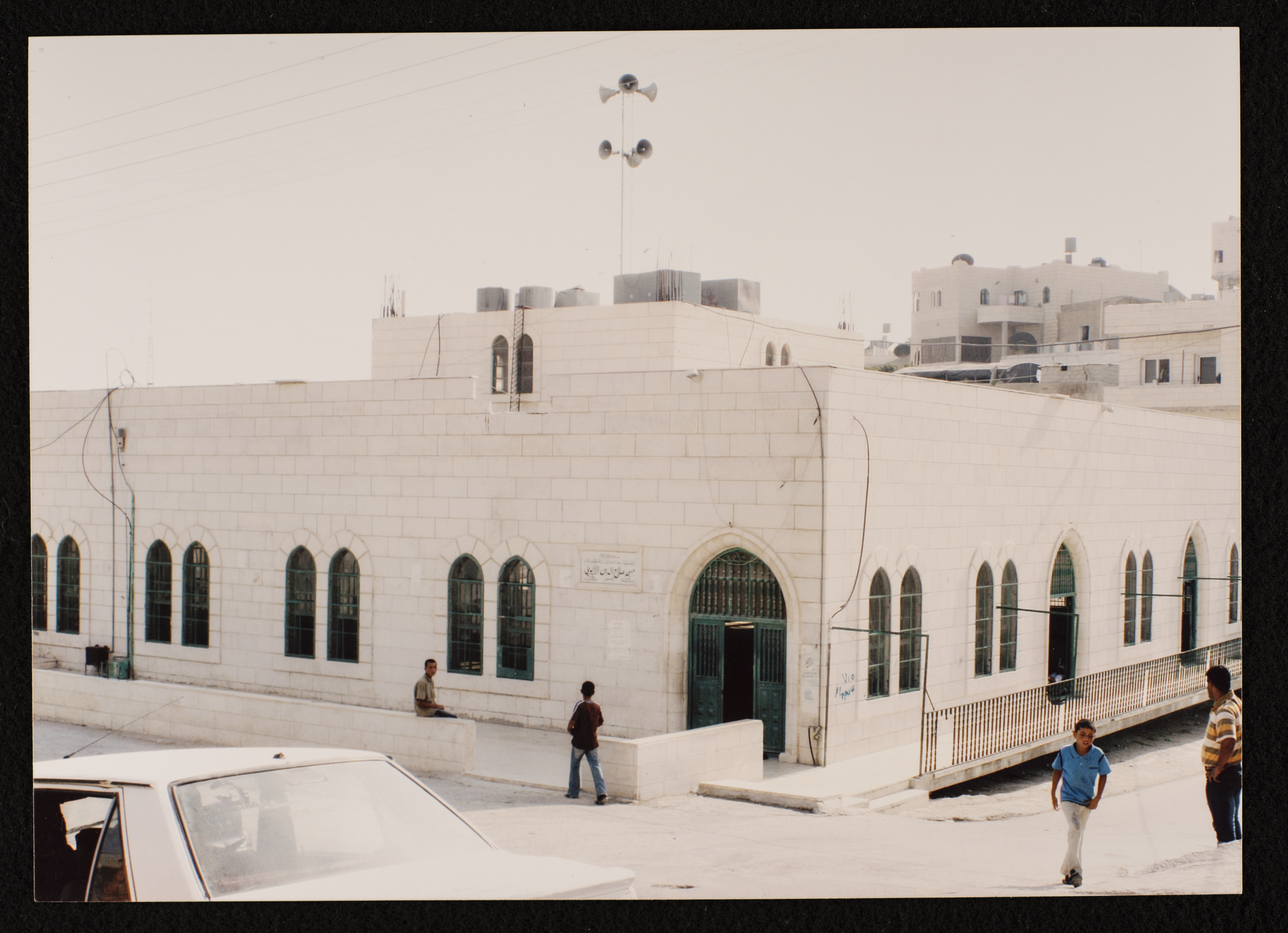 صورة ملونة لمسجد صلاح الدين الأيوبي في مدينة يطا. وُجدت الصورة ضمن مجموعة مركز السنابل للدراسات والتراث الشعبي.