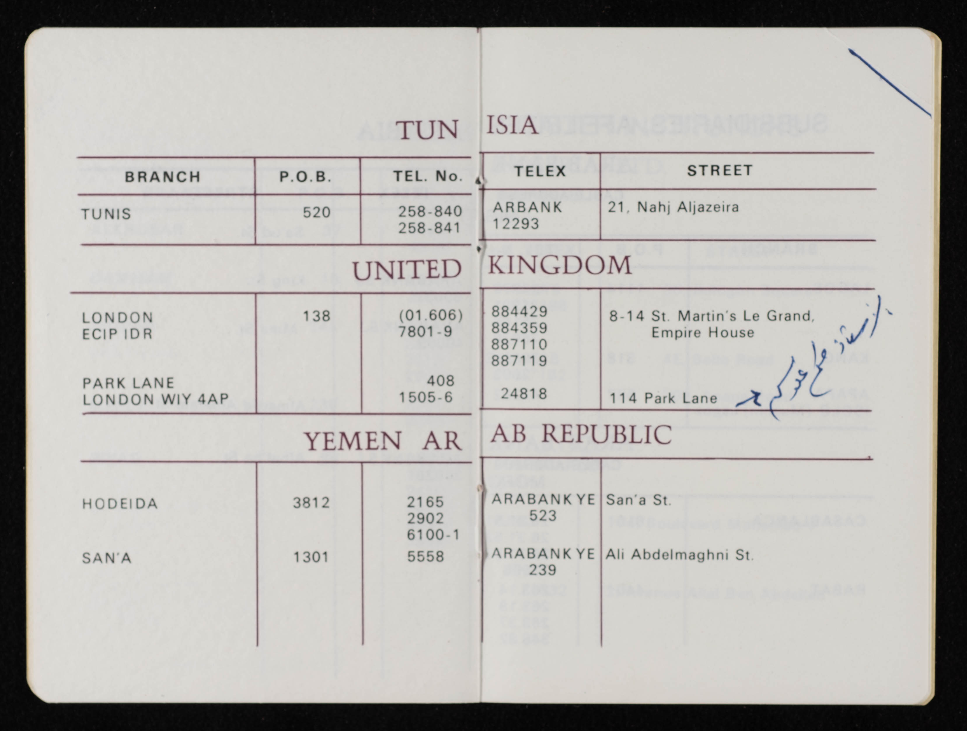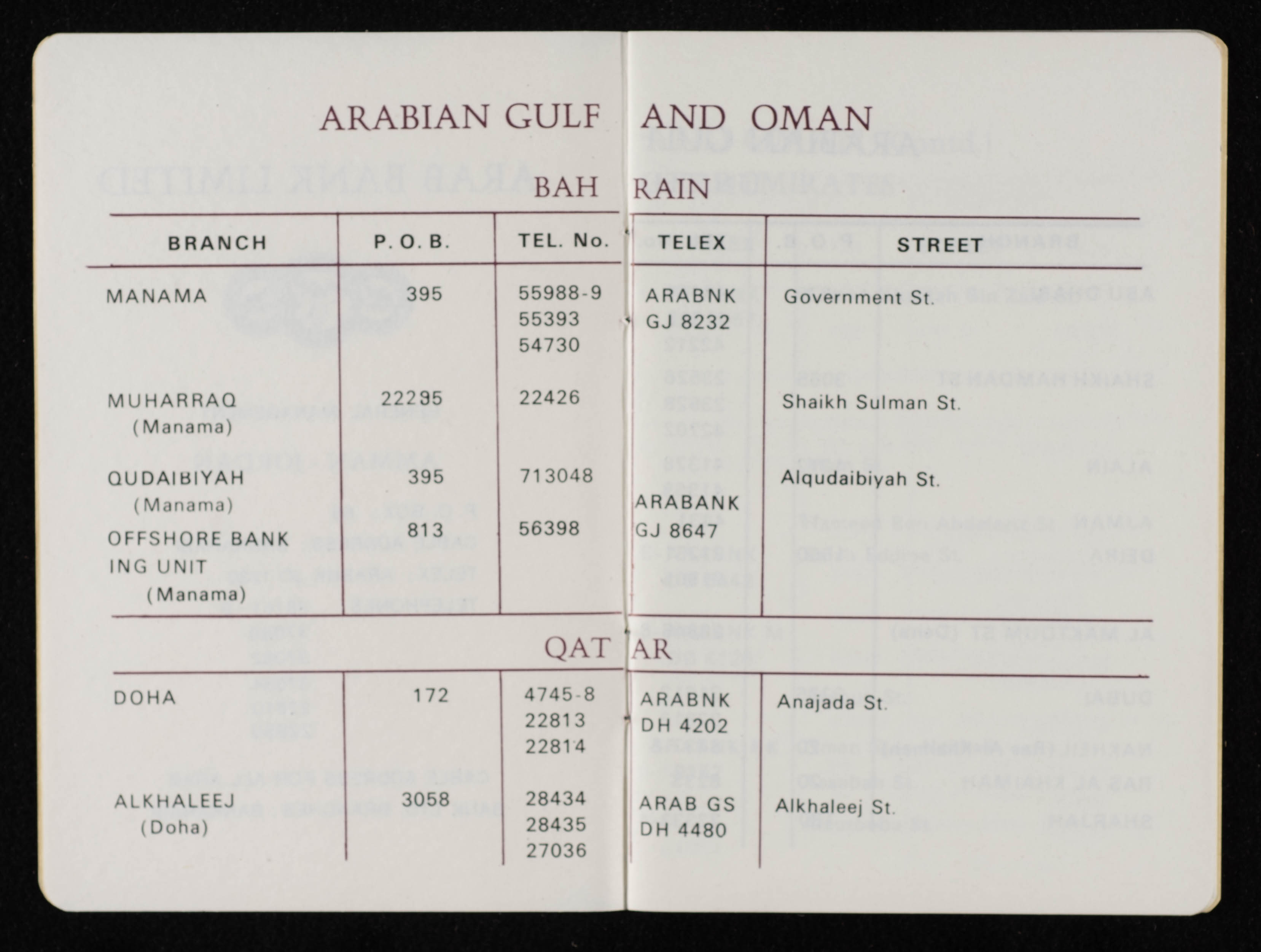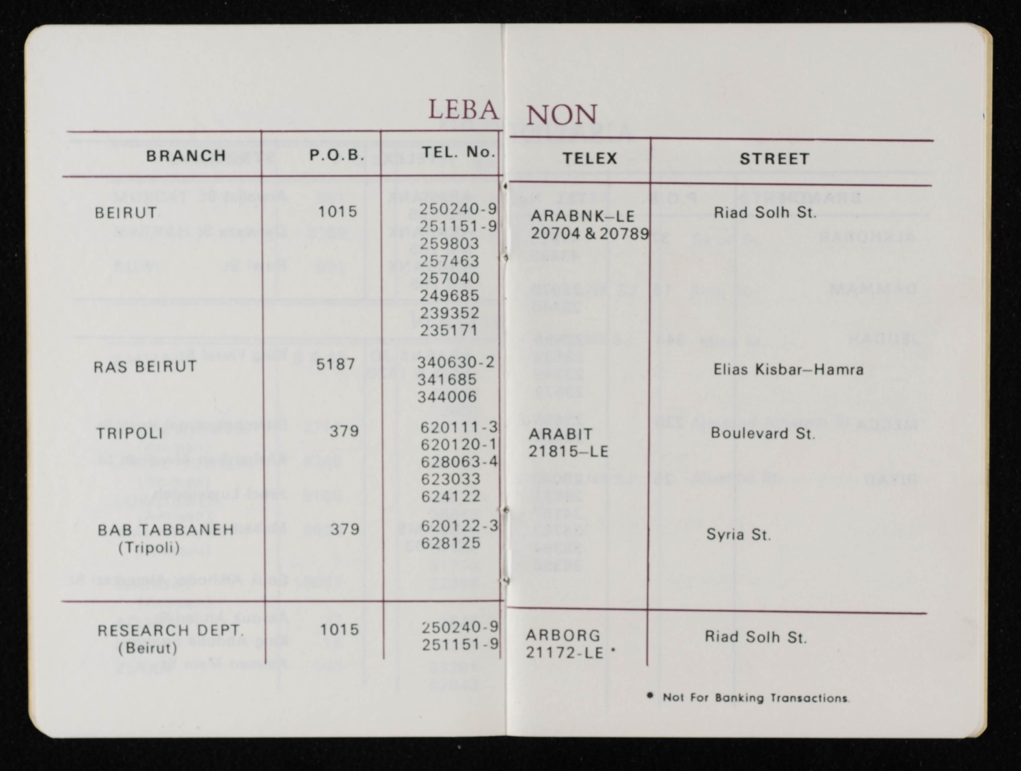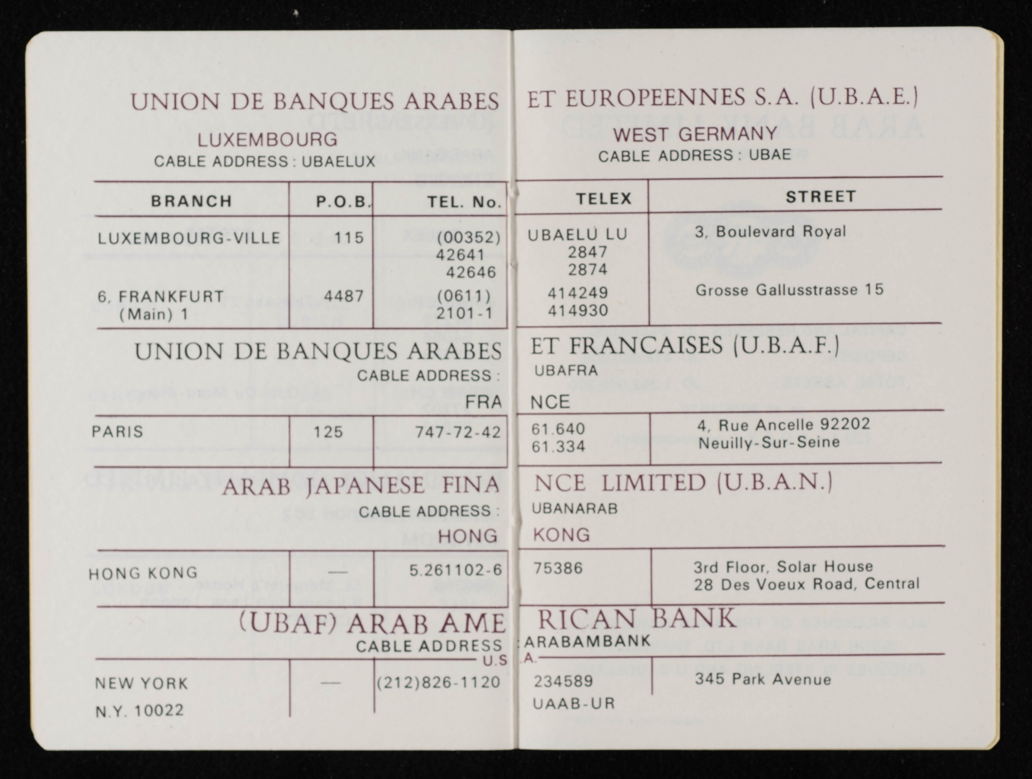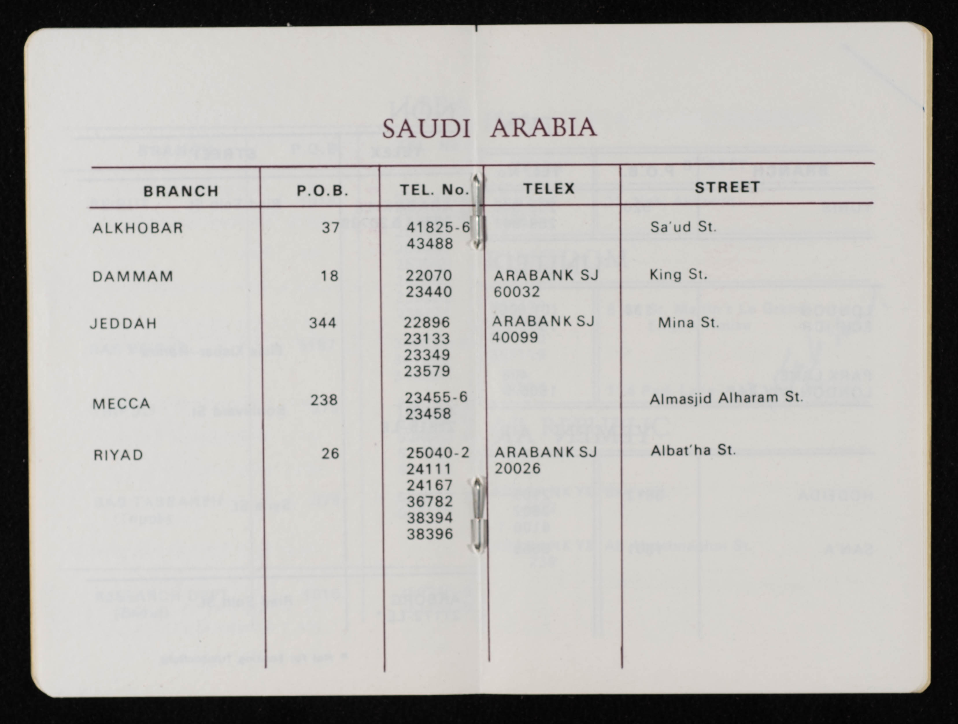 .وثيقة مطبوعة باللغة الانجليزية، تتضمن دفتر خاص دون عليه حسابات موسى العلمي من بنك العربي عام 1976. وجدت في مجموعة المشرع الانشائي العربي