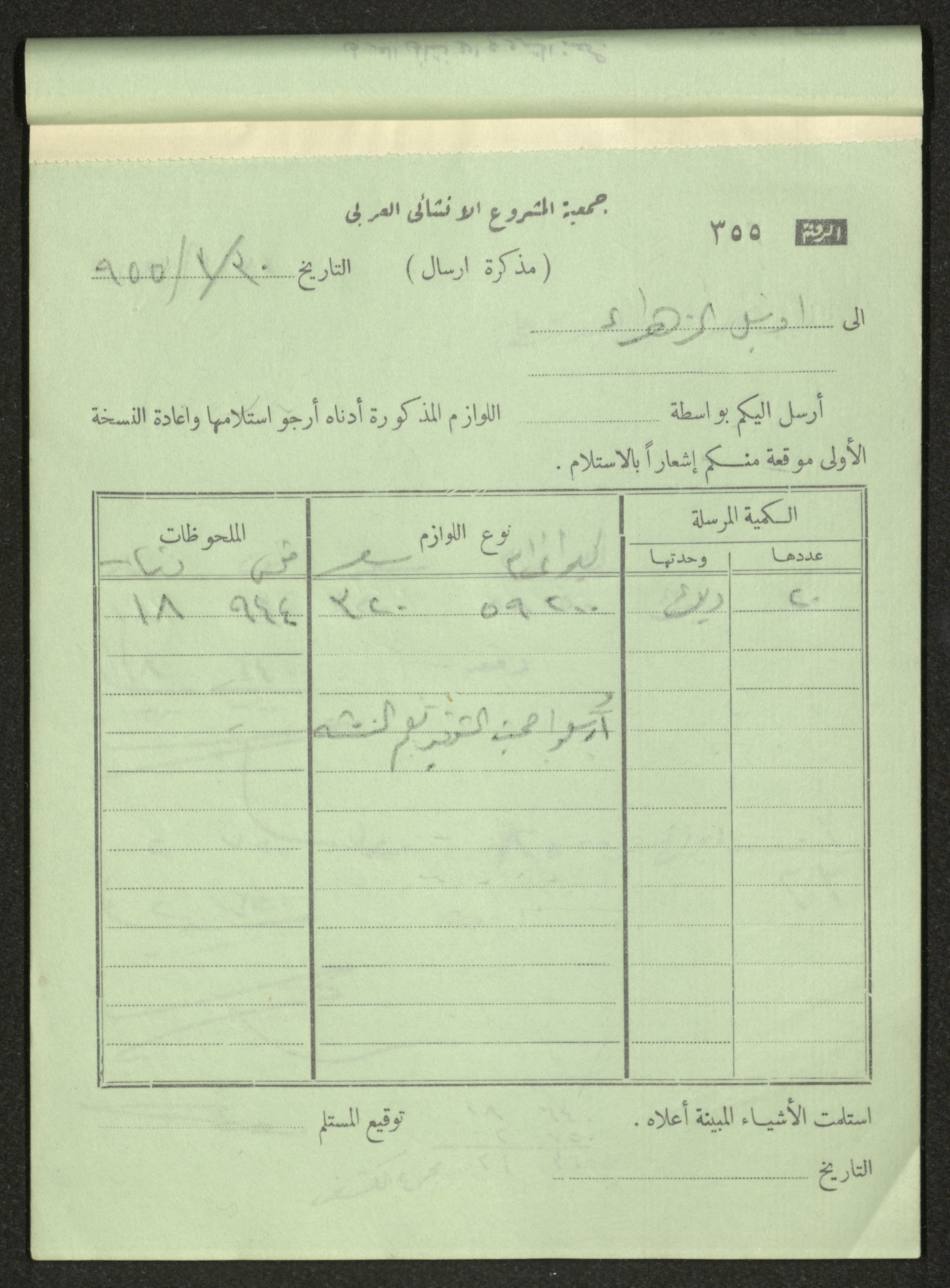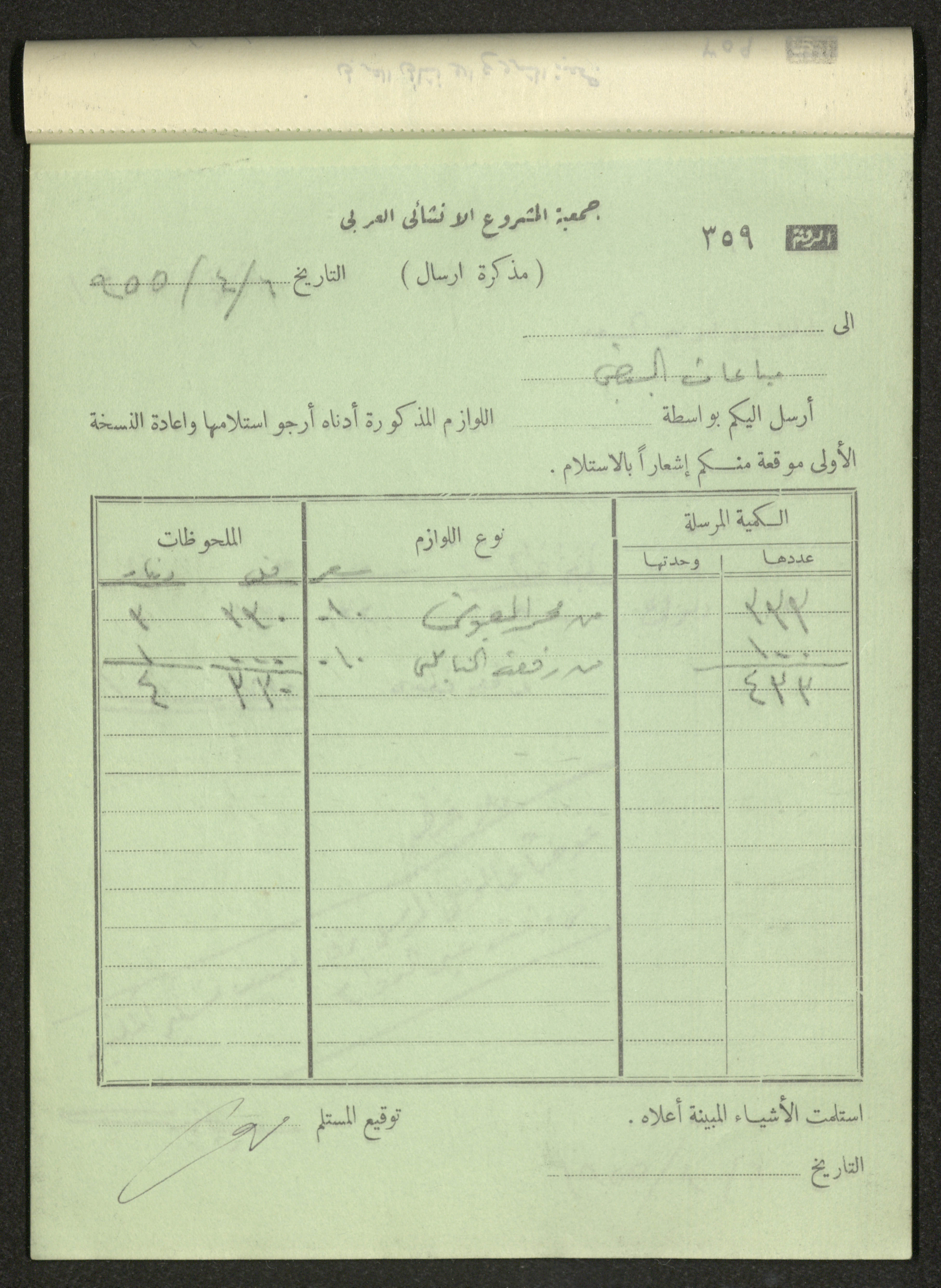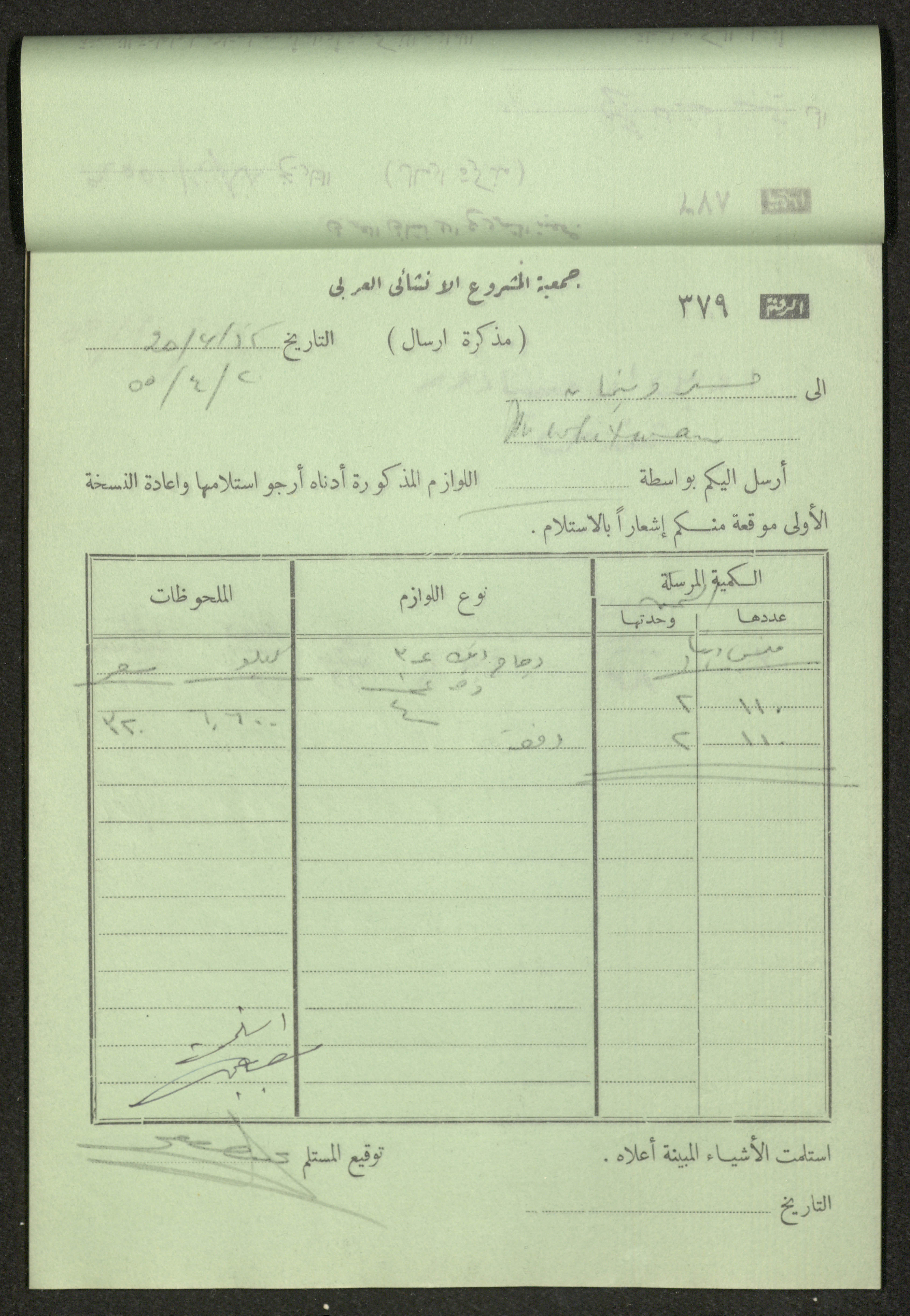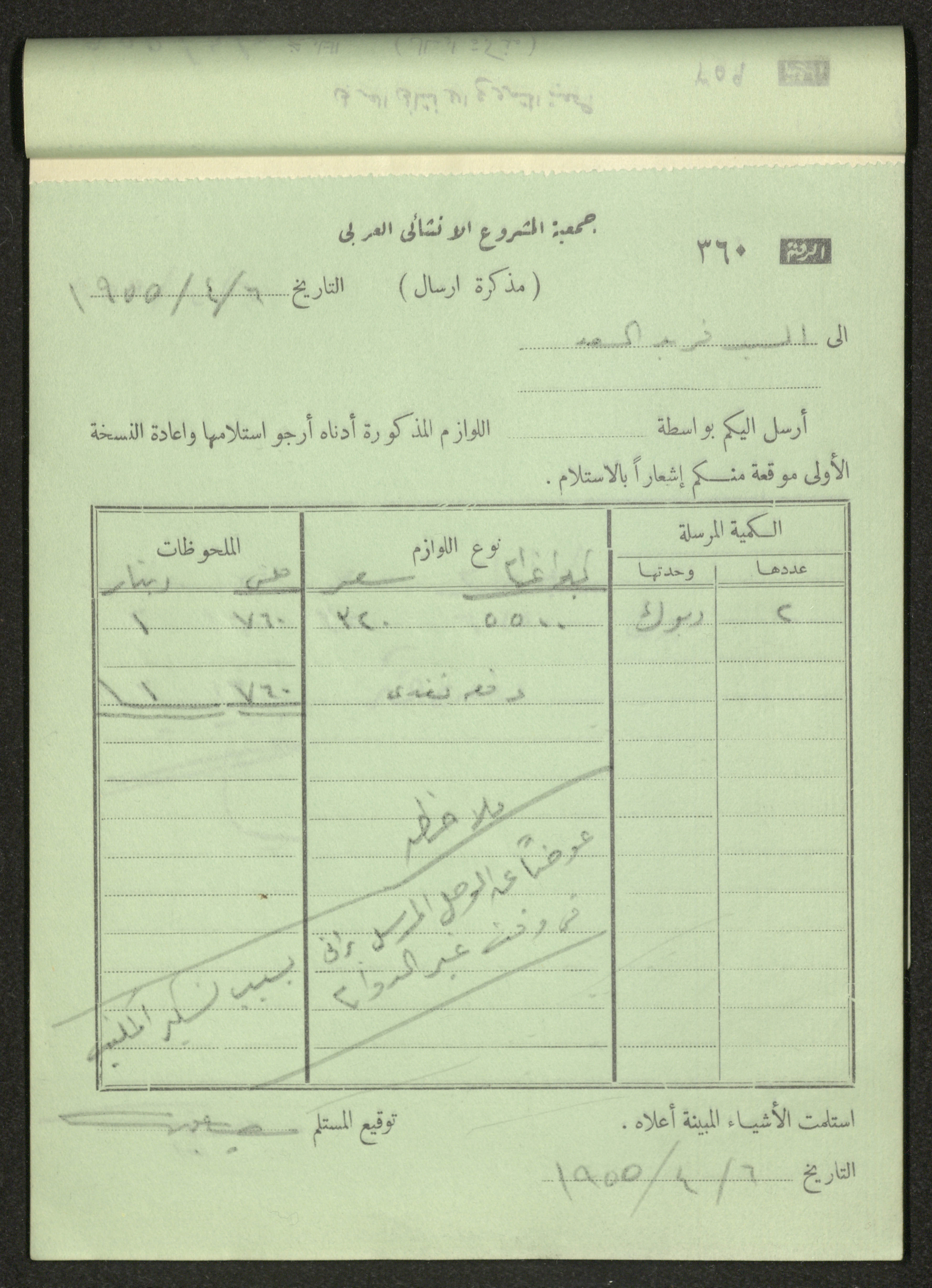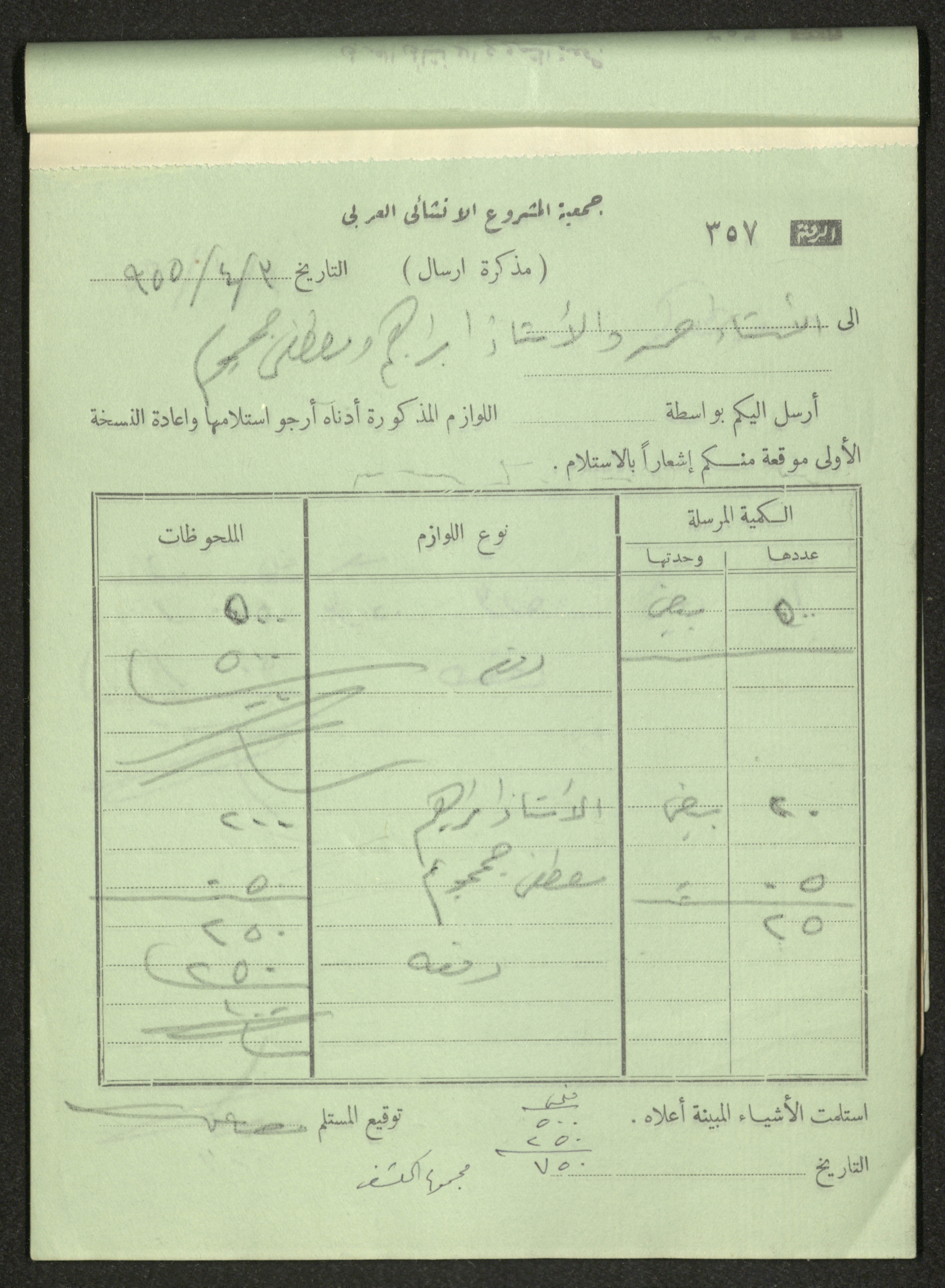 Found in the Arab Development Society Collection, this document shows dispatch notes for the year 1955 issued by the Society.