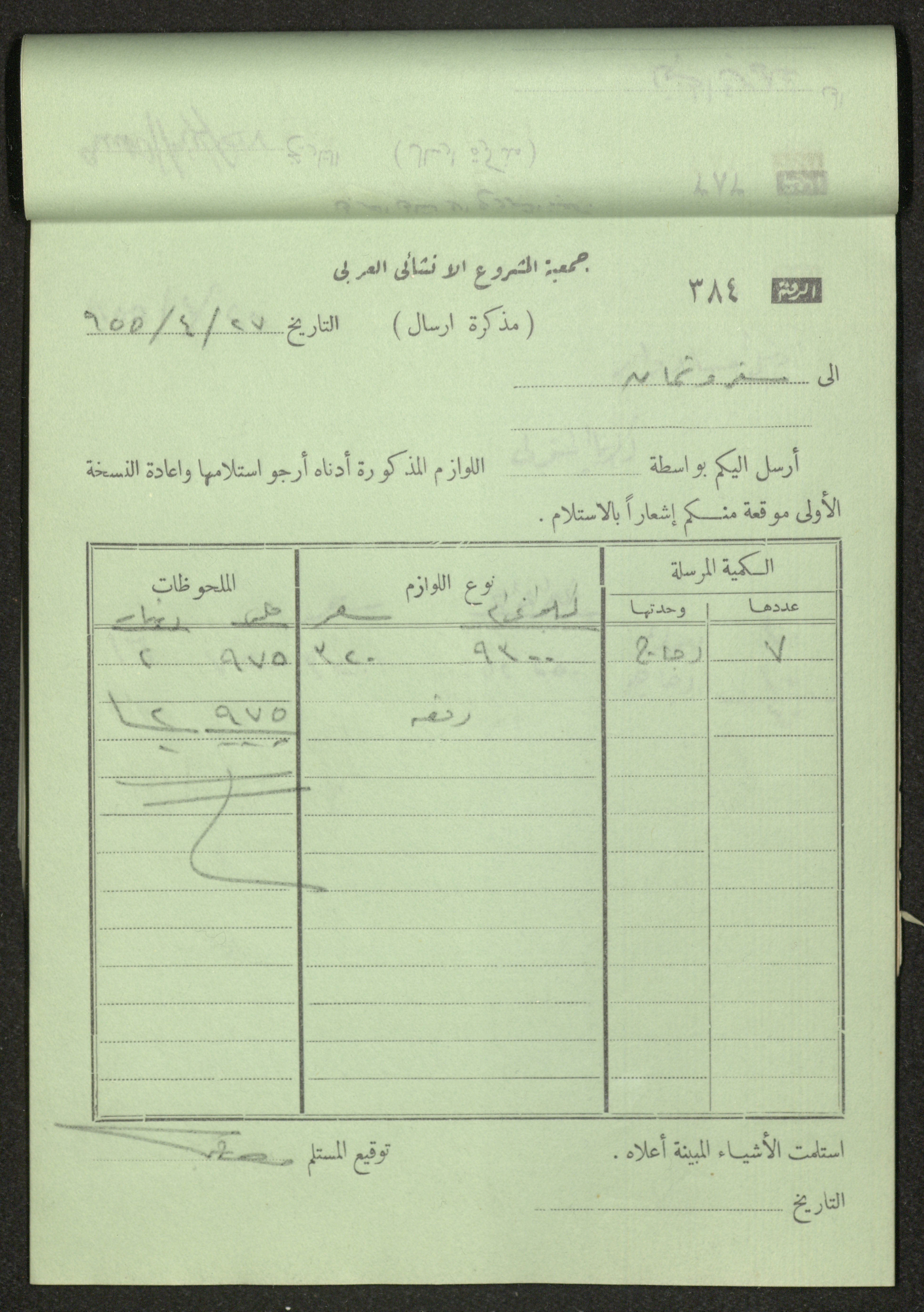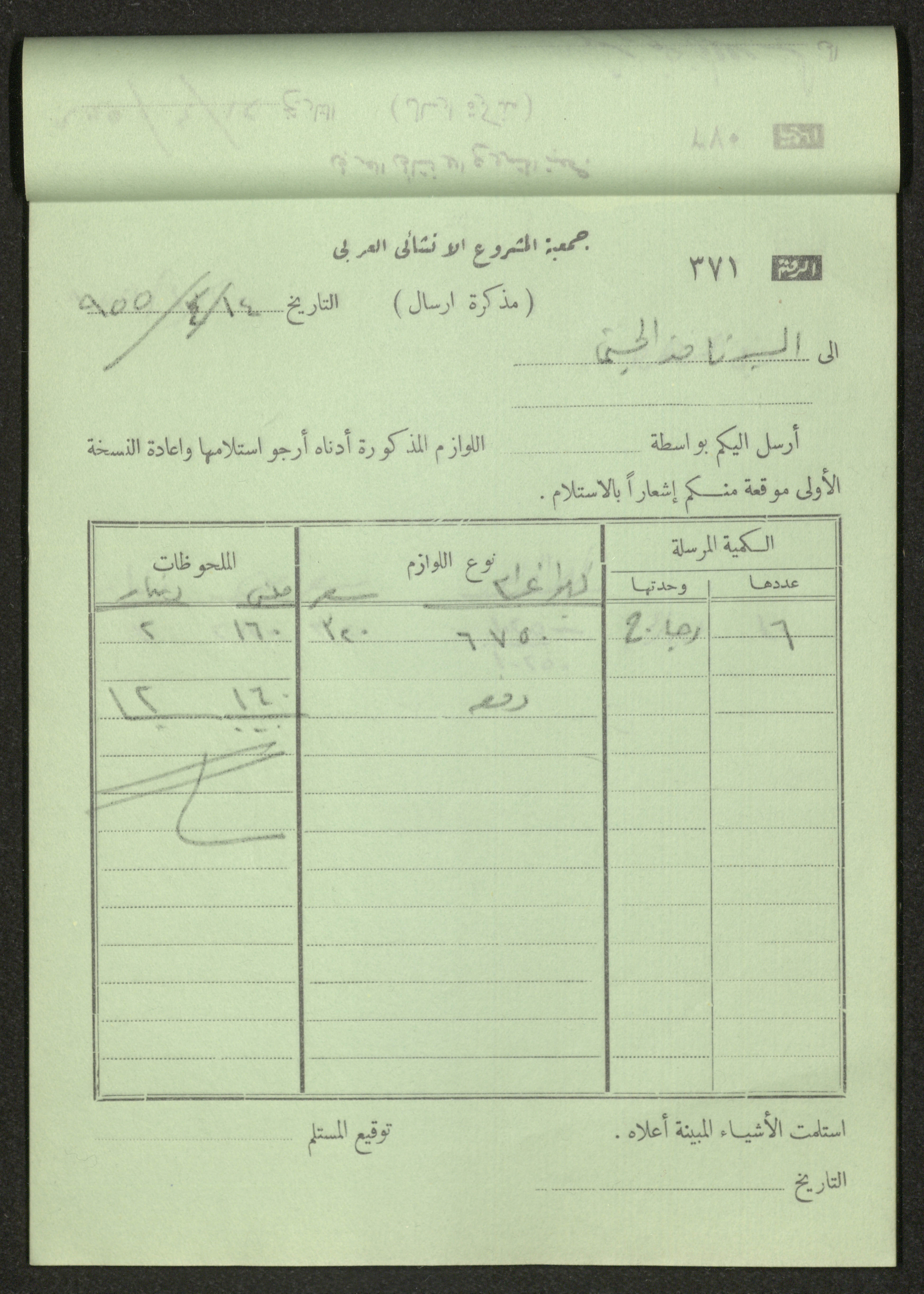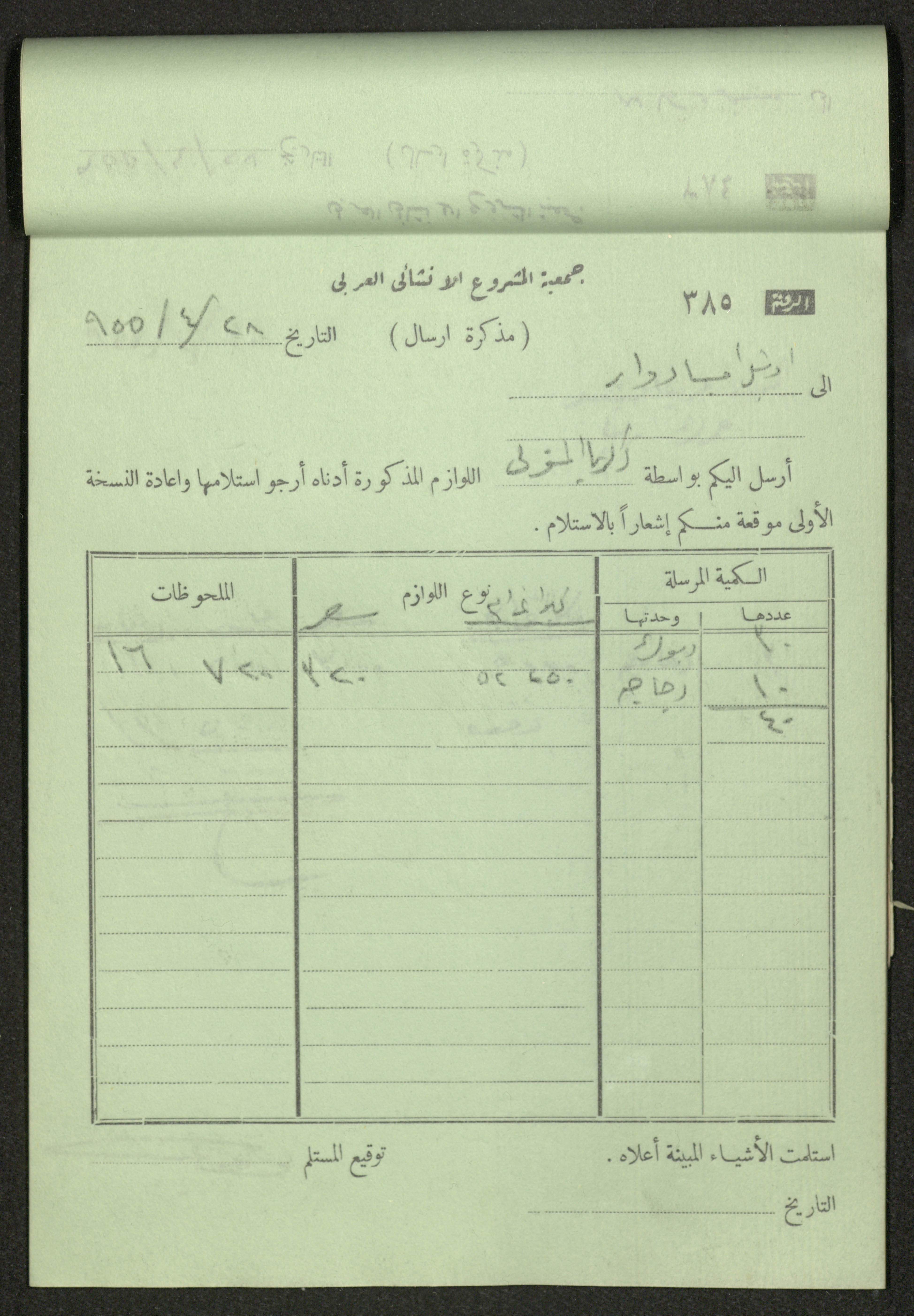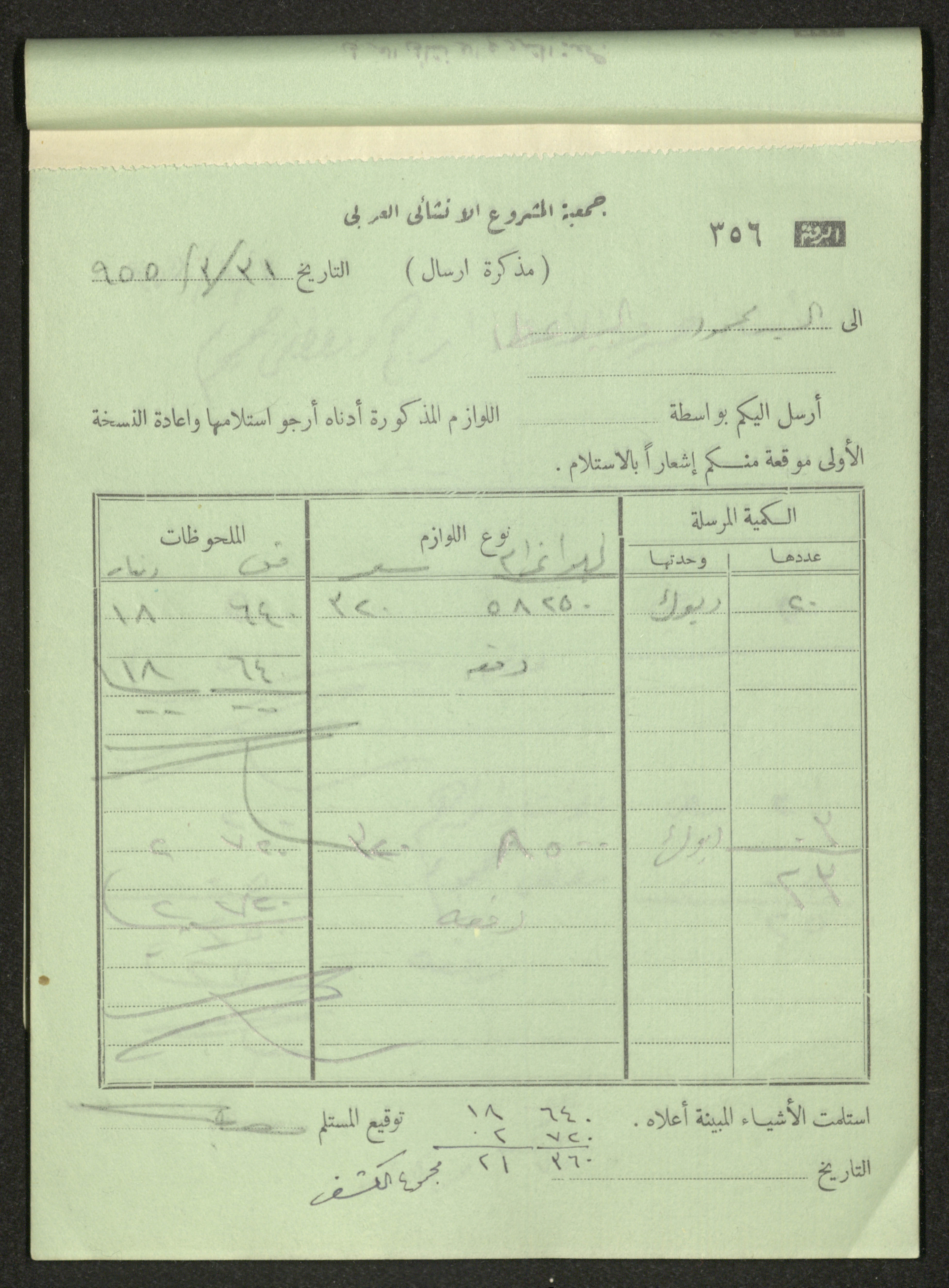 Found in the Arab Development Society Collection, this document shows dispatch notes for the year 1955 issued by the Society.