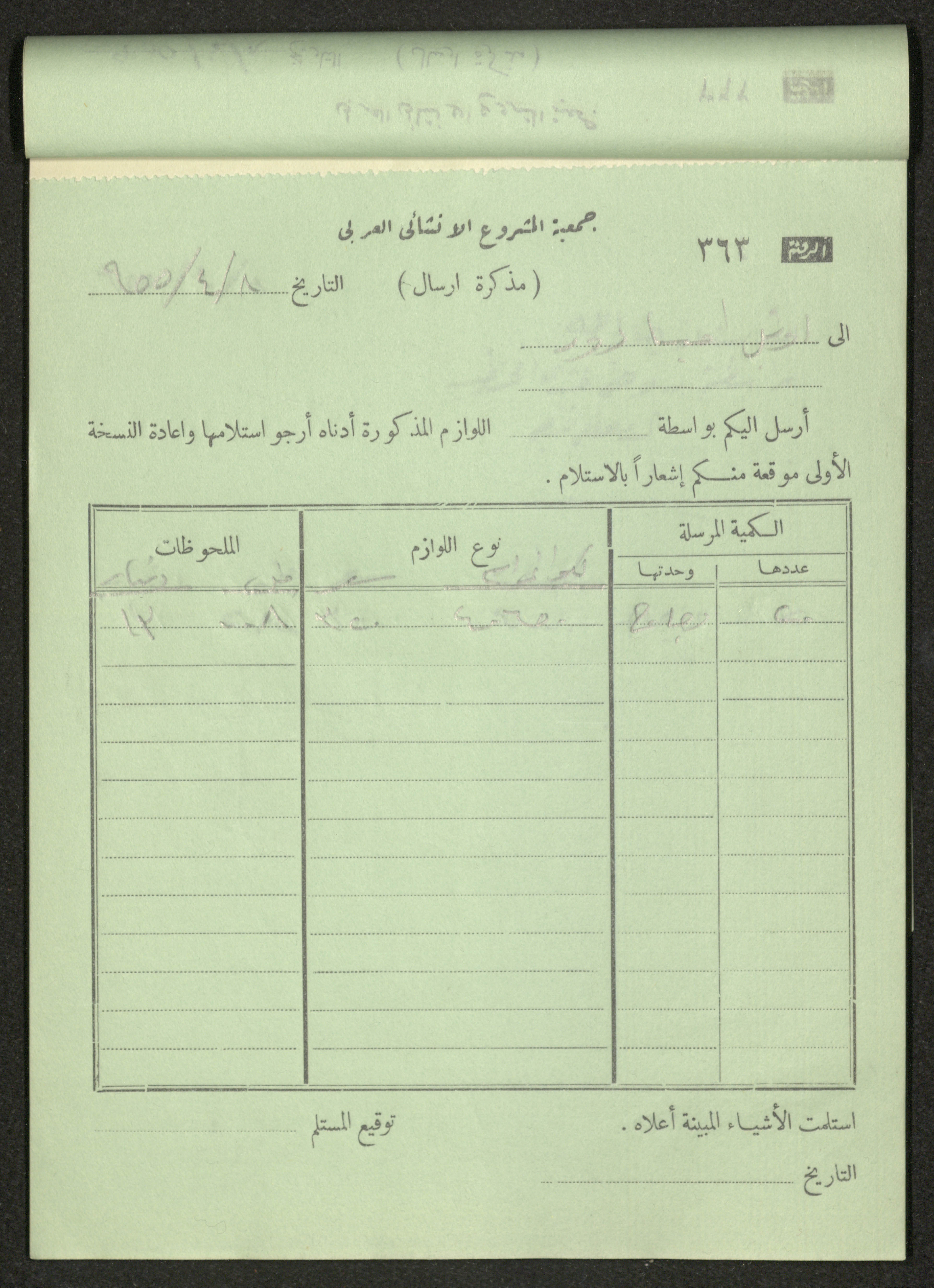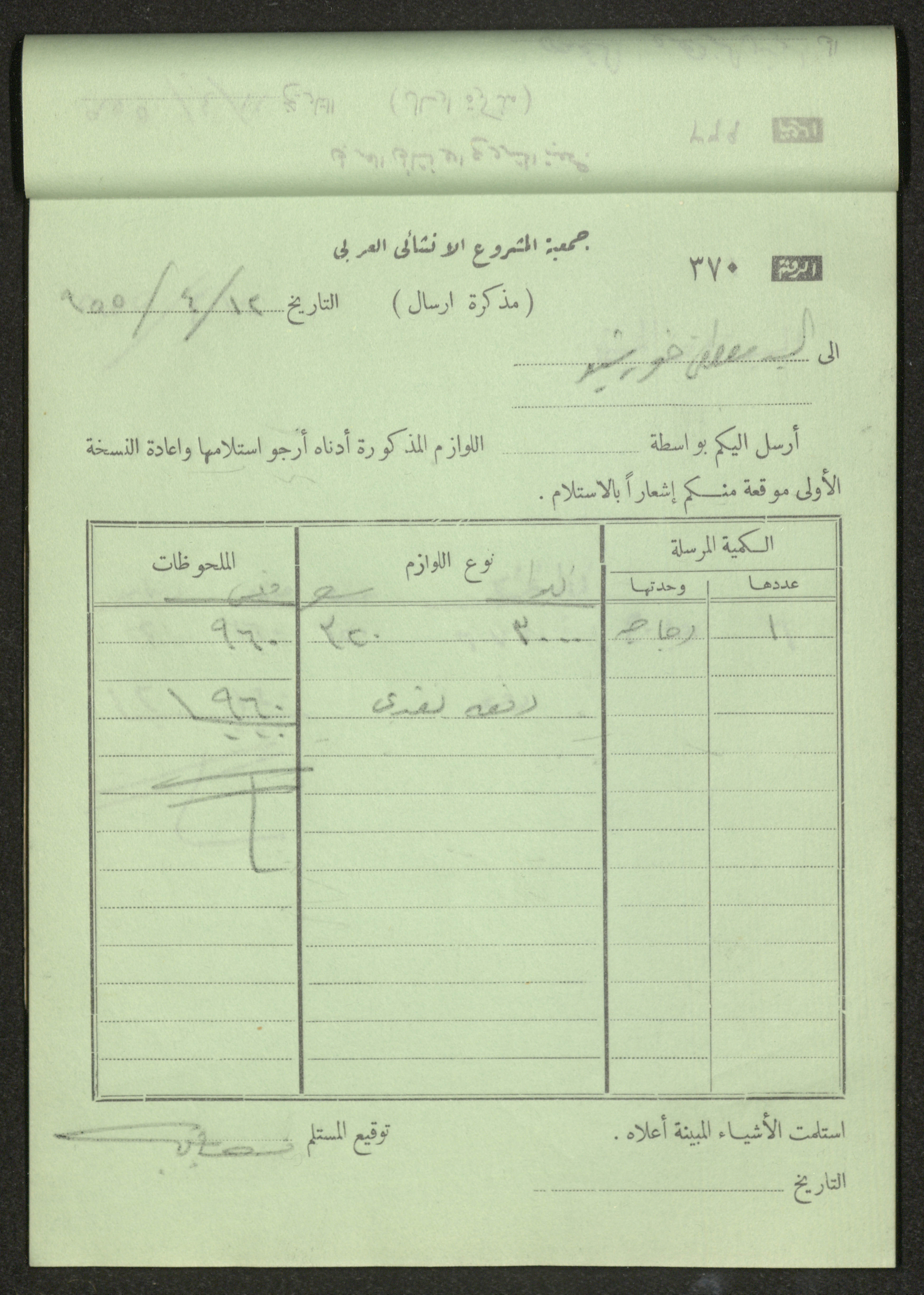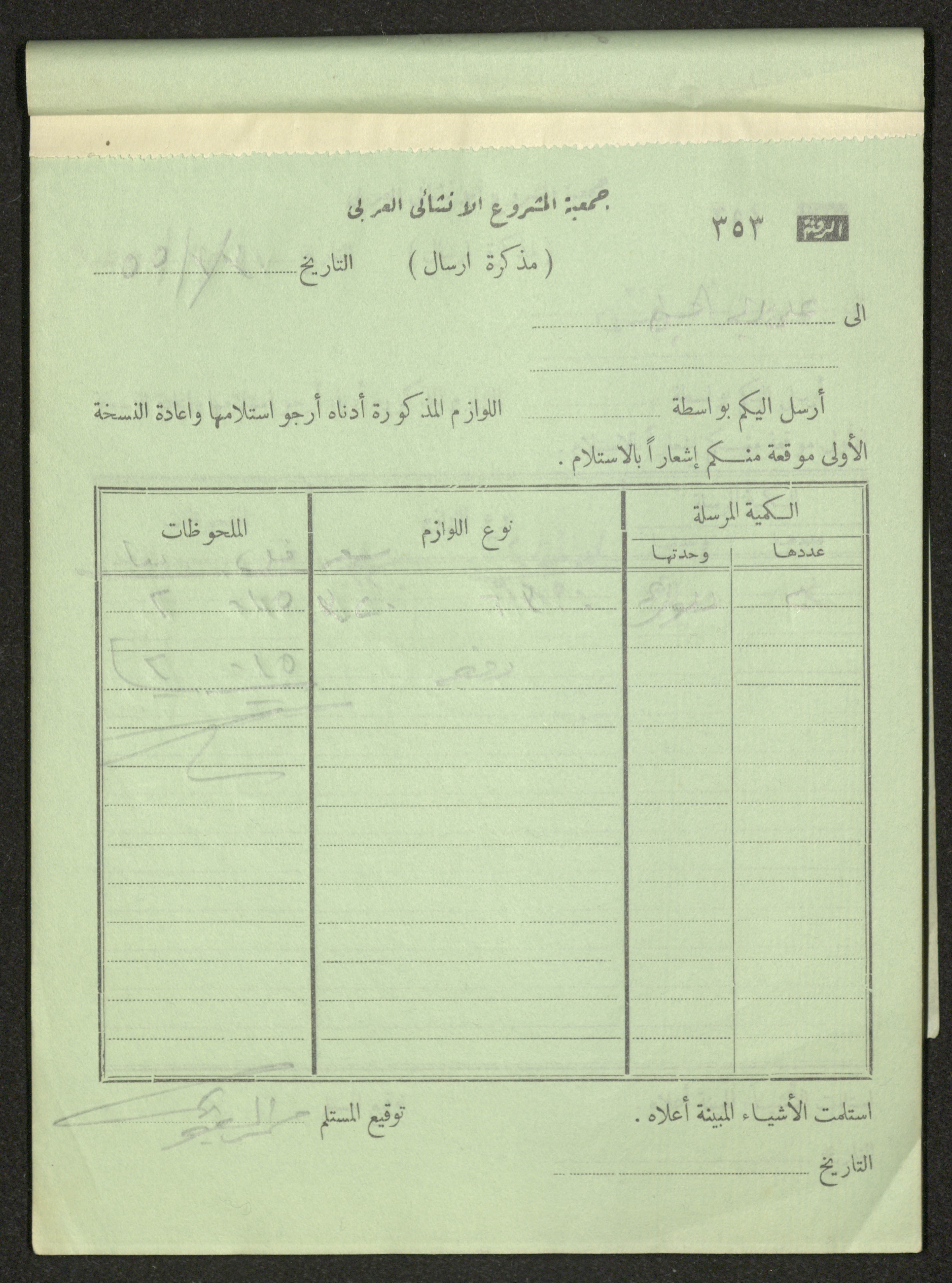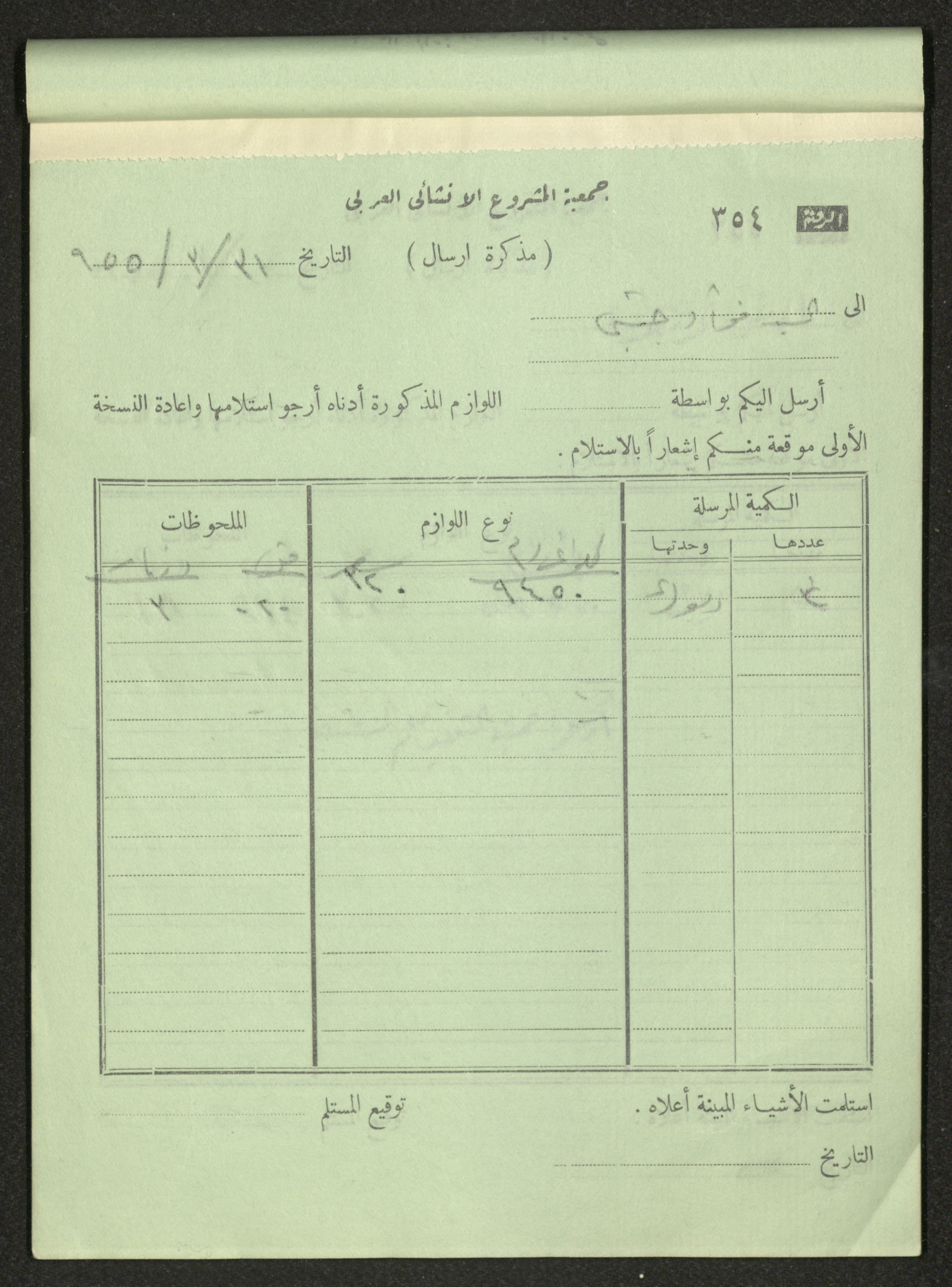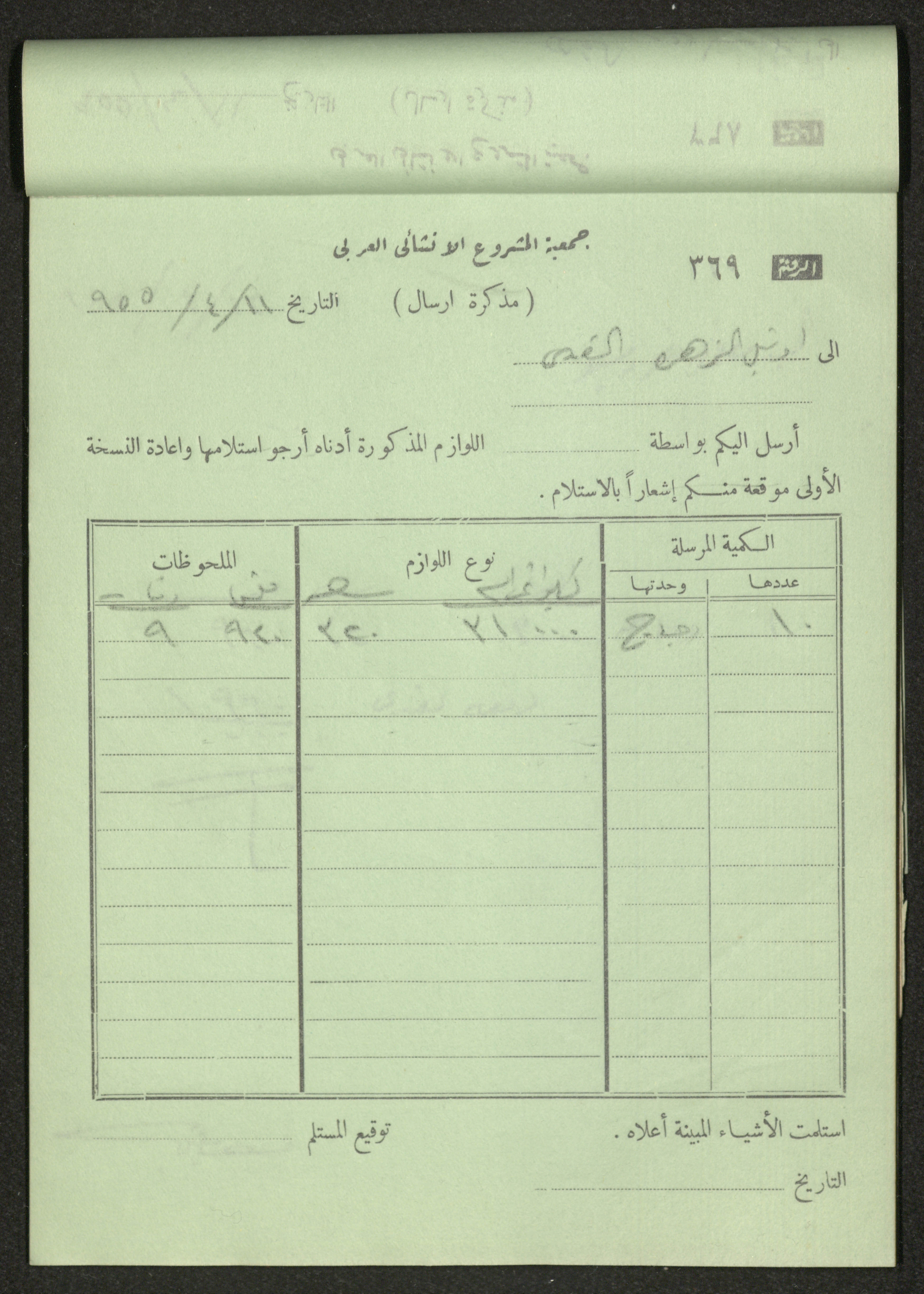 Found in the Arab Development Society Collection, this document shows dispatch notes for the year 1955 issued by the Society.