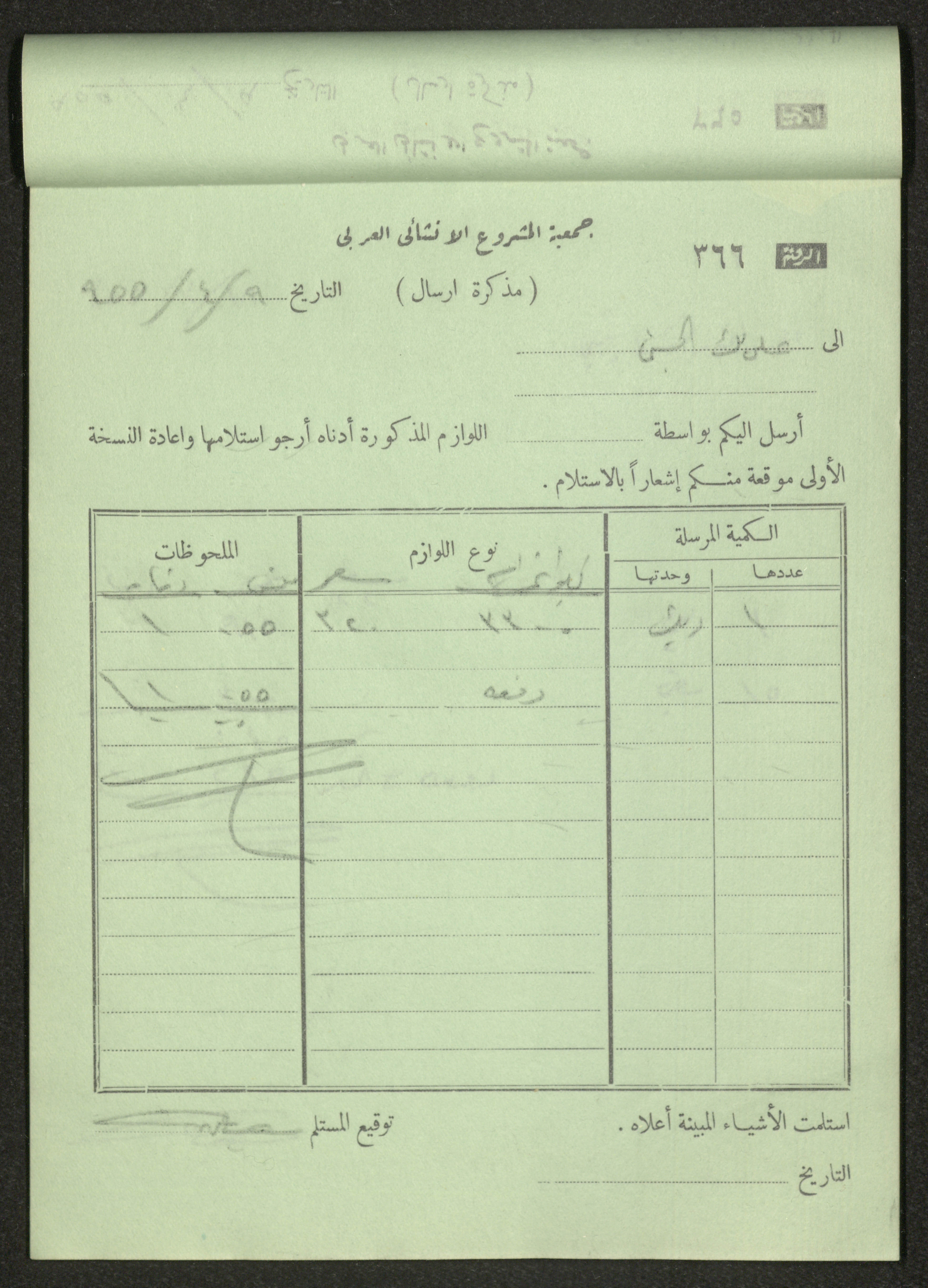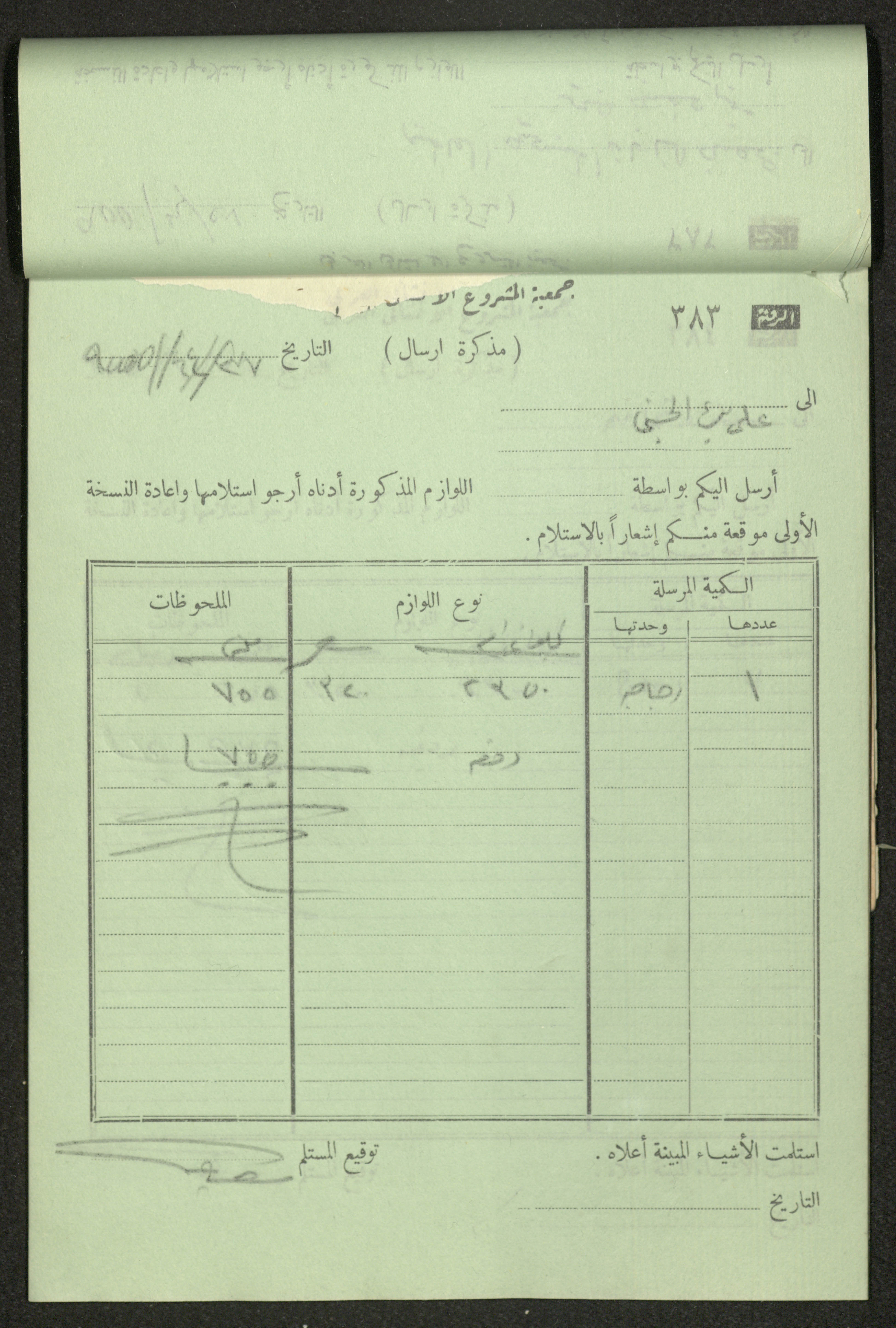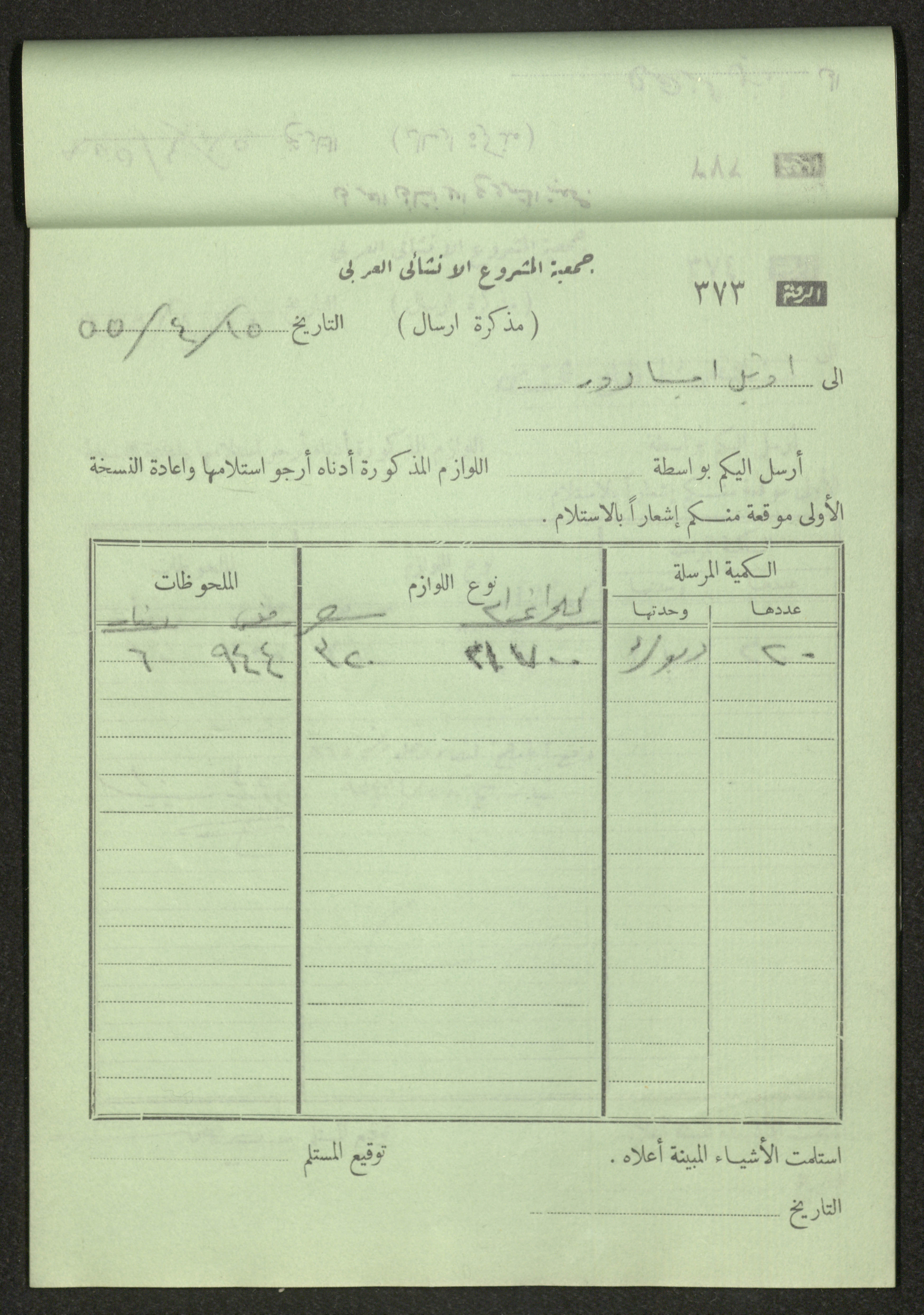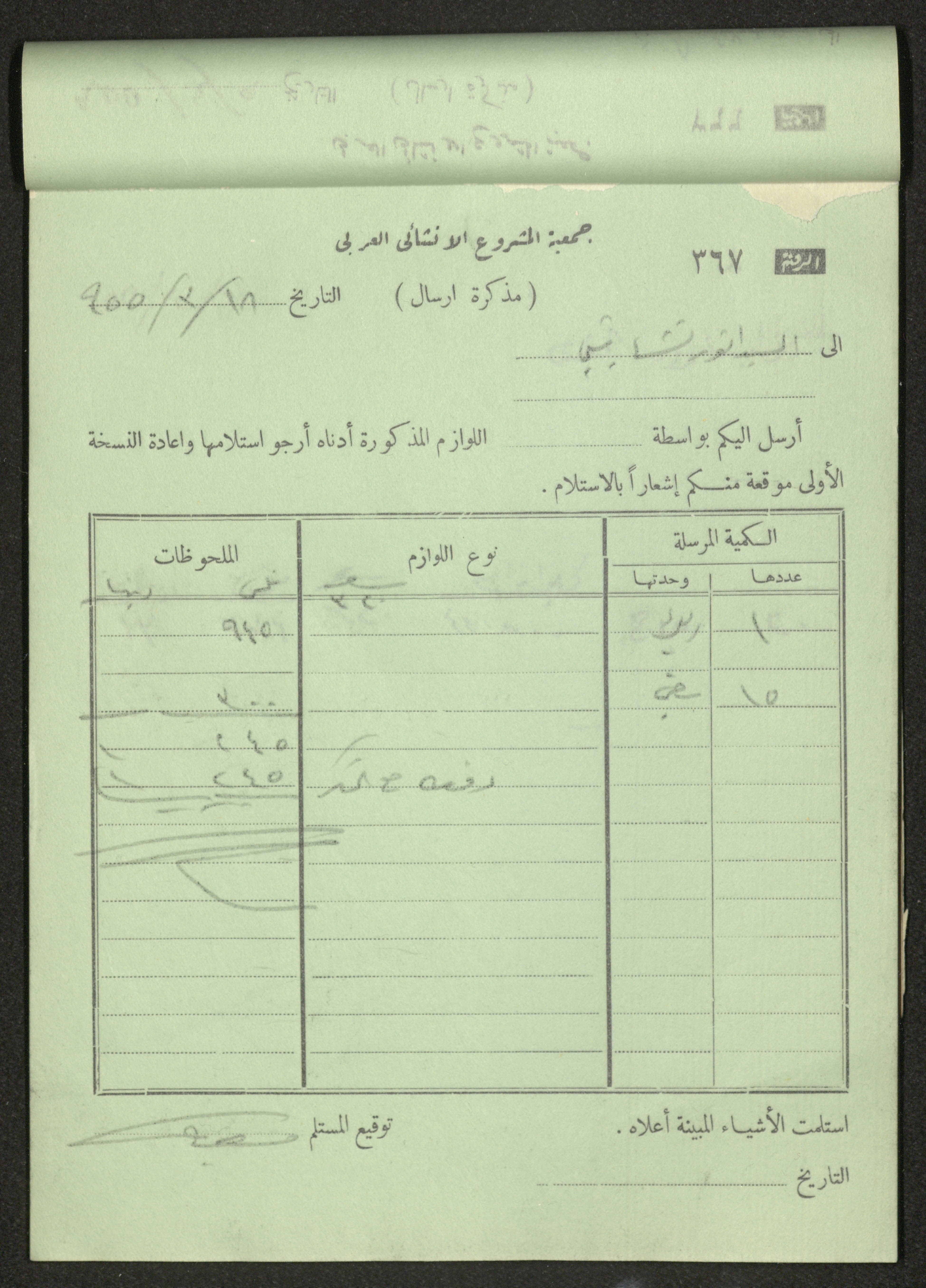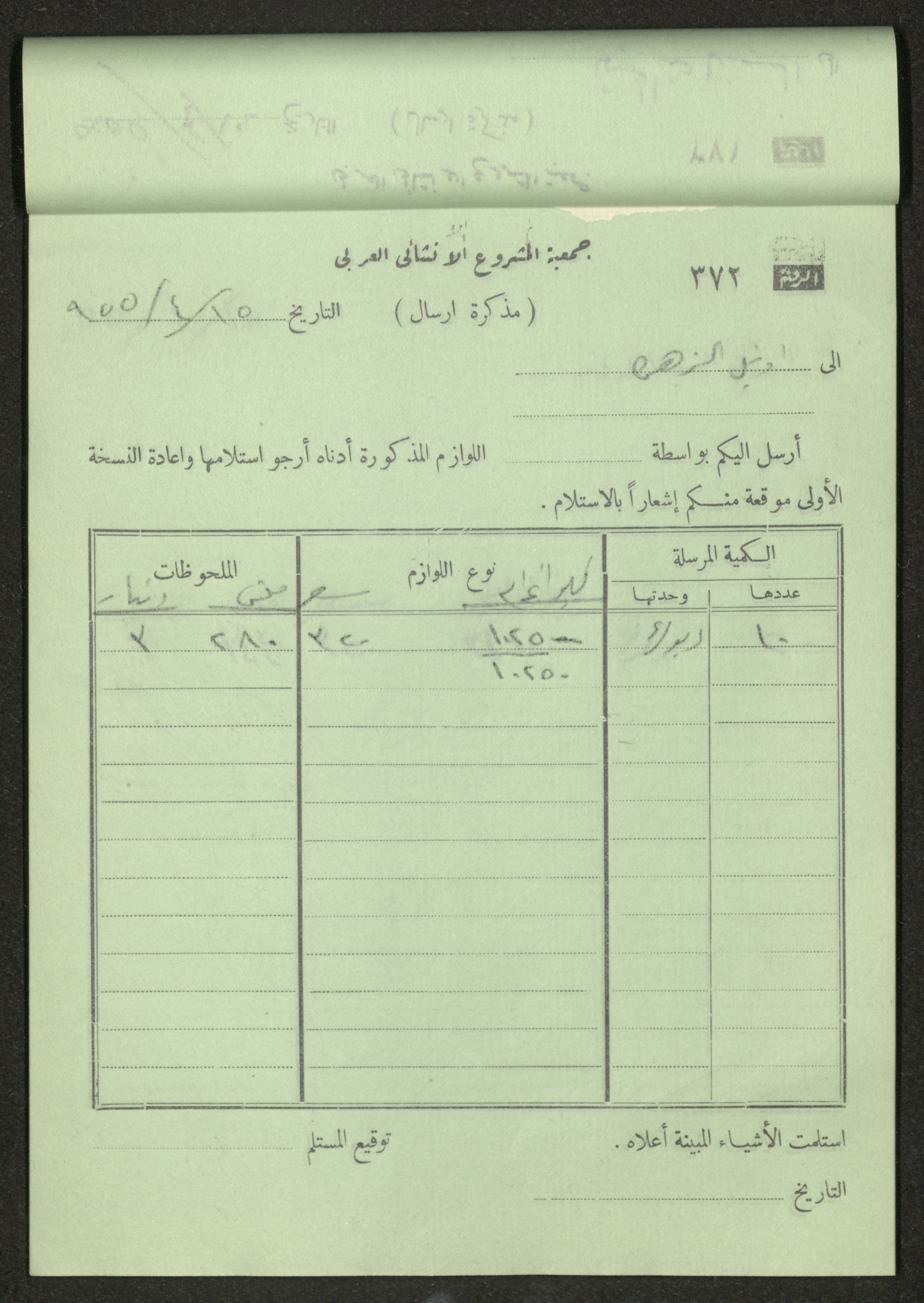 Found in the Arab Development Society Collection, this document shows dispatch notes for the year 1955 issued by the Society.