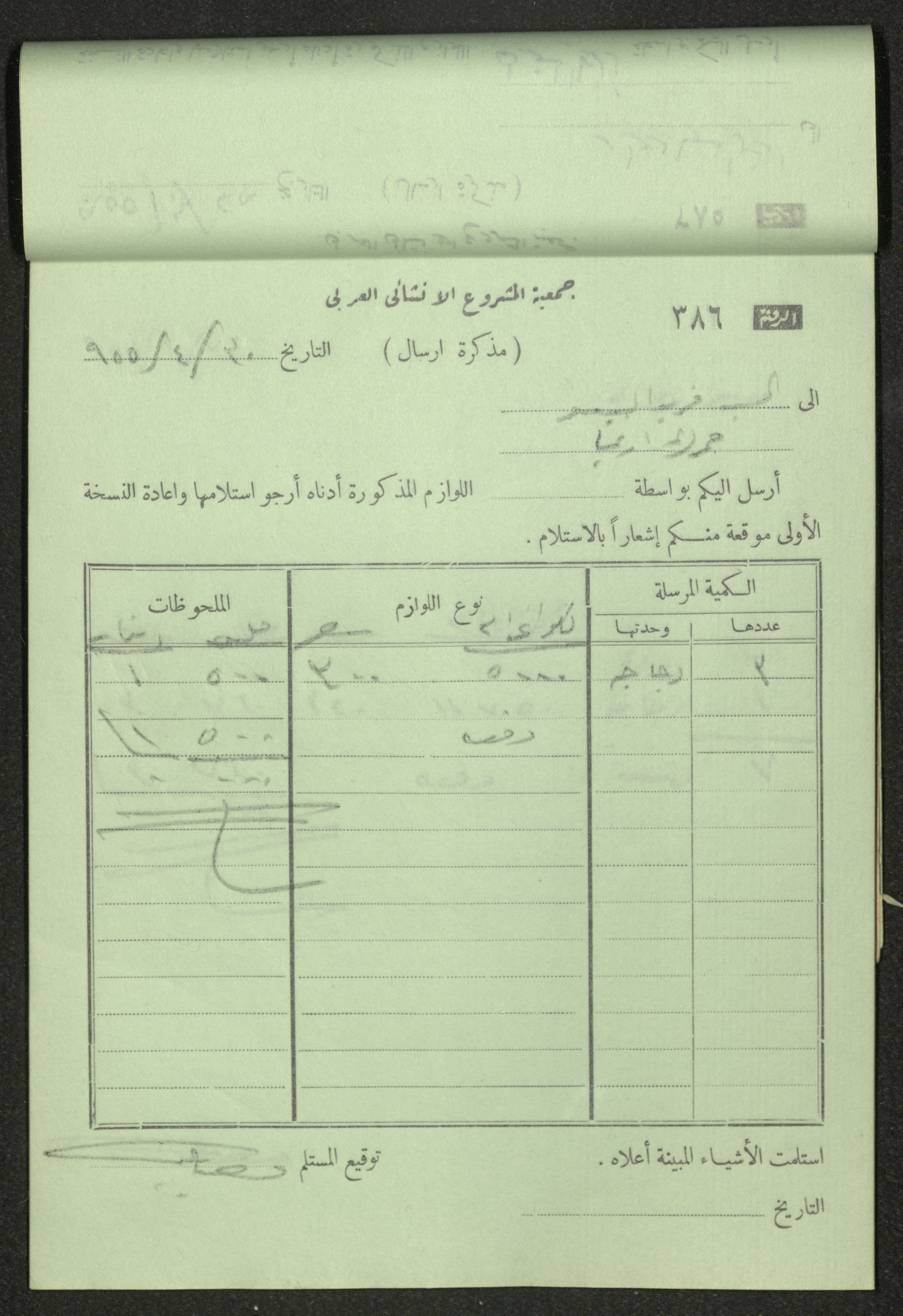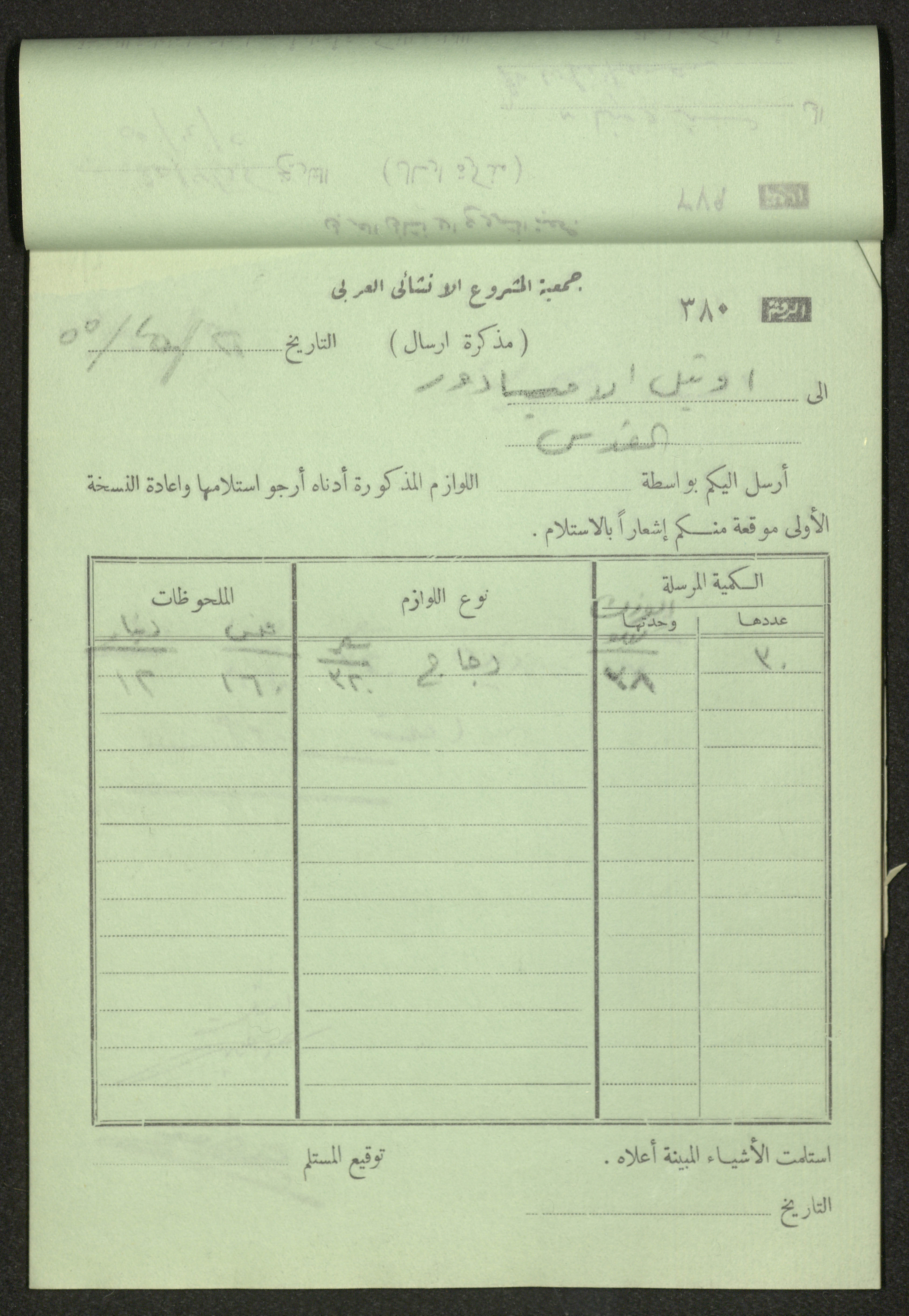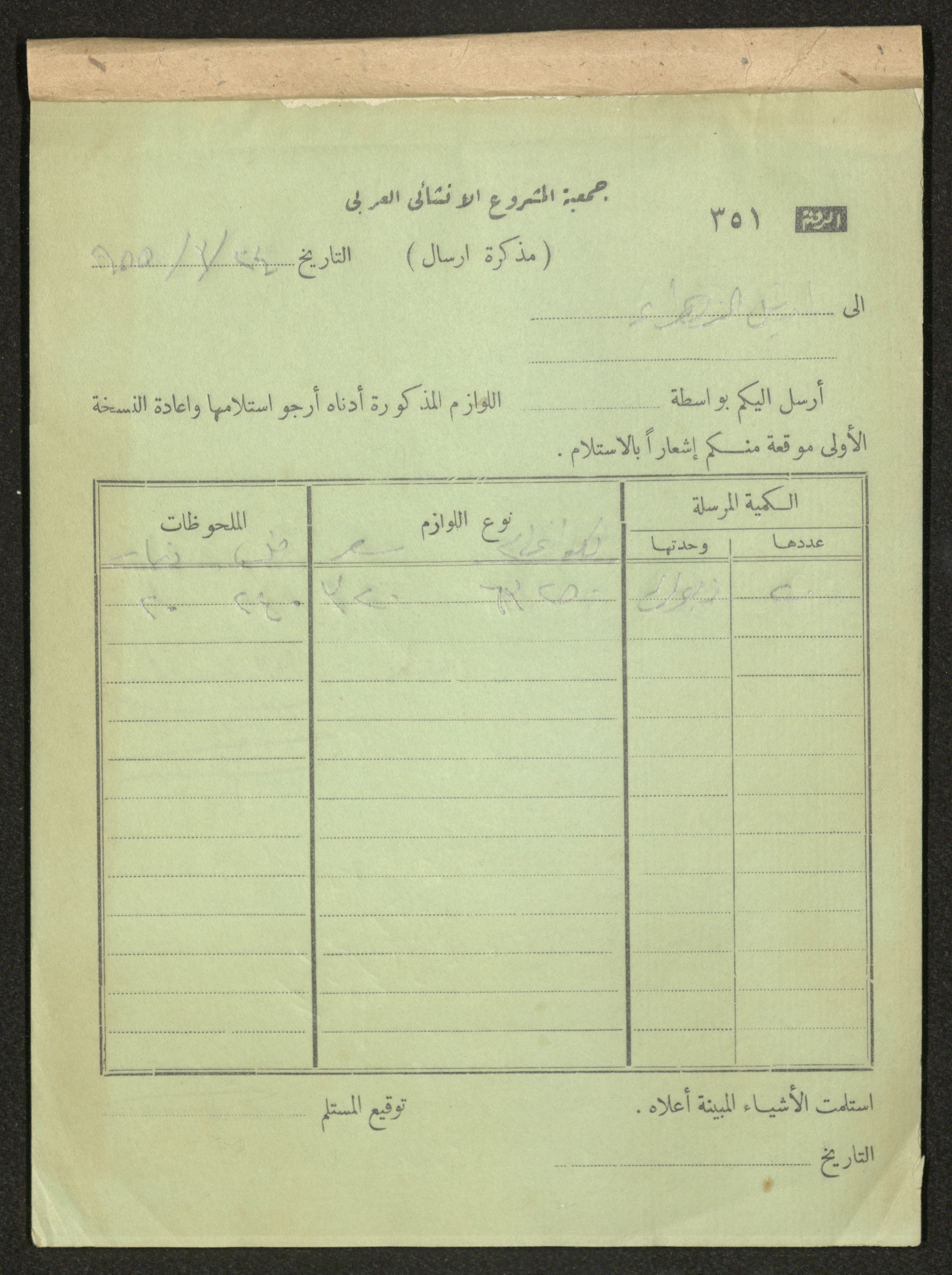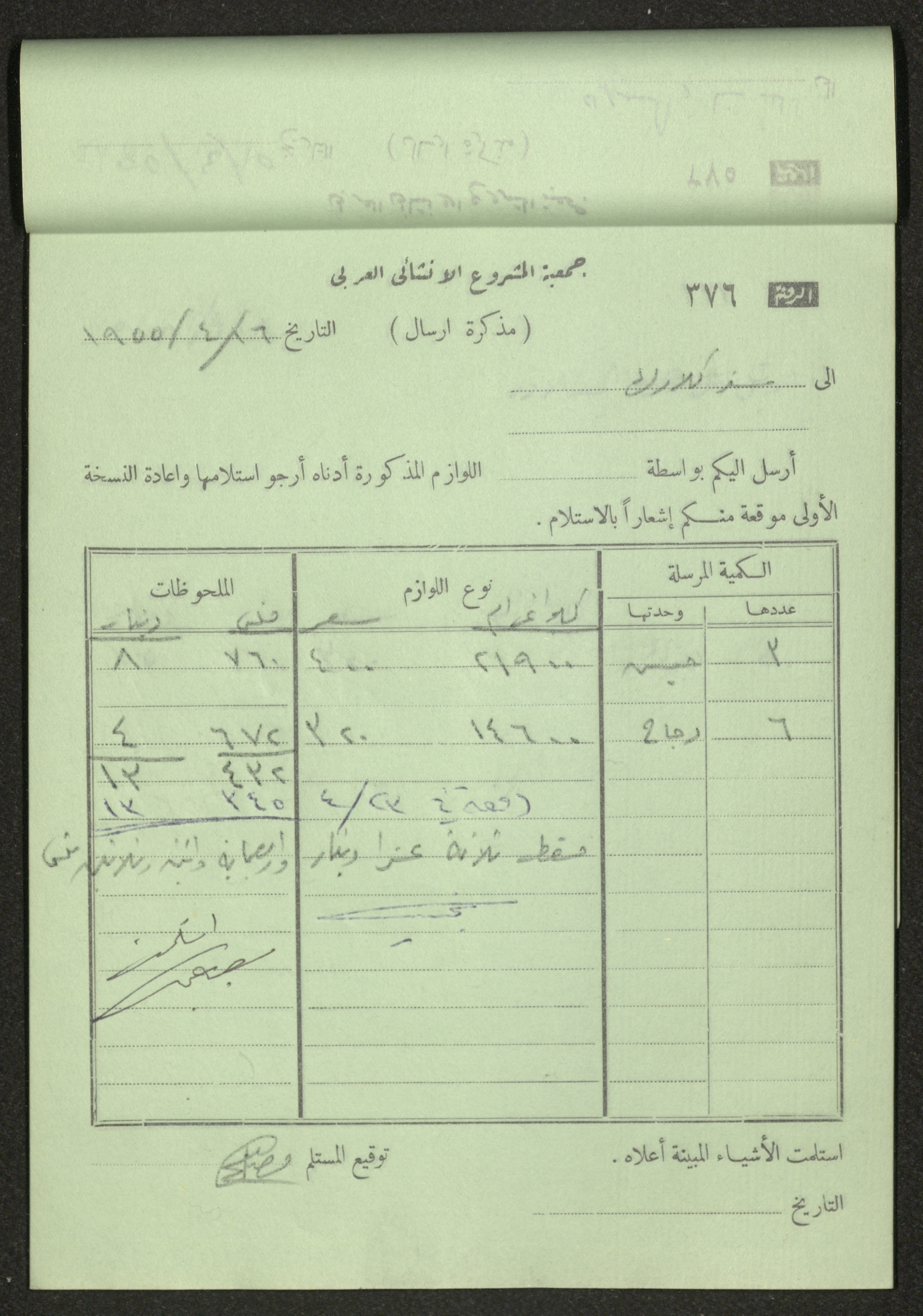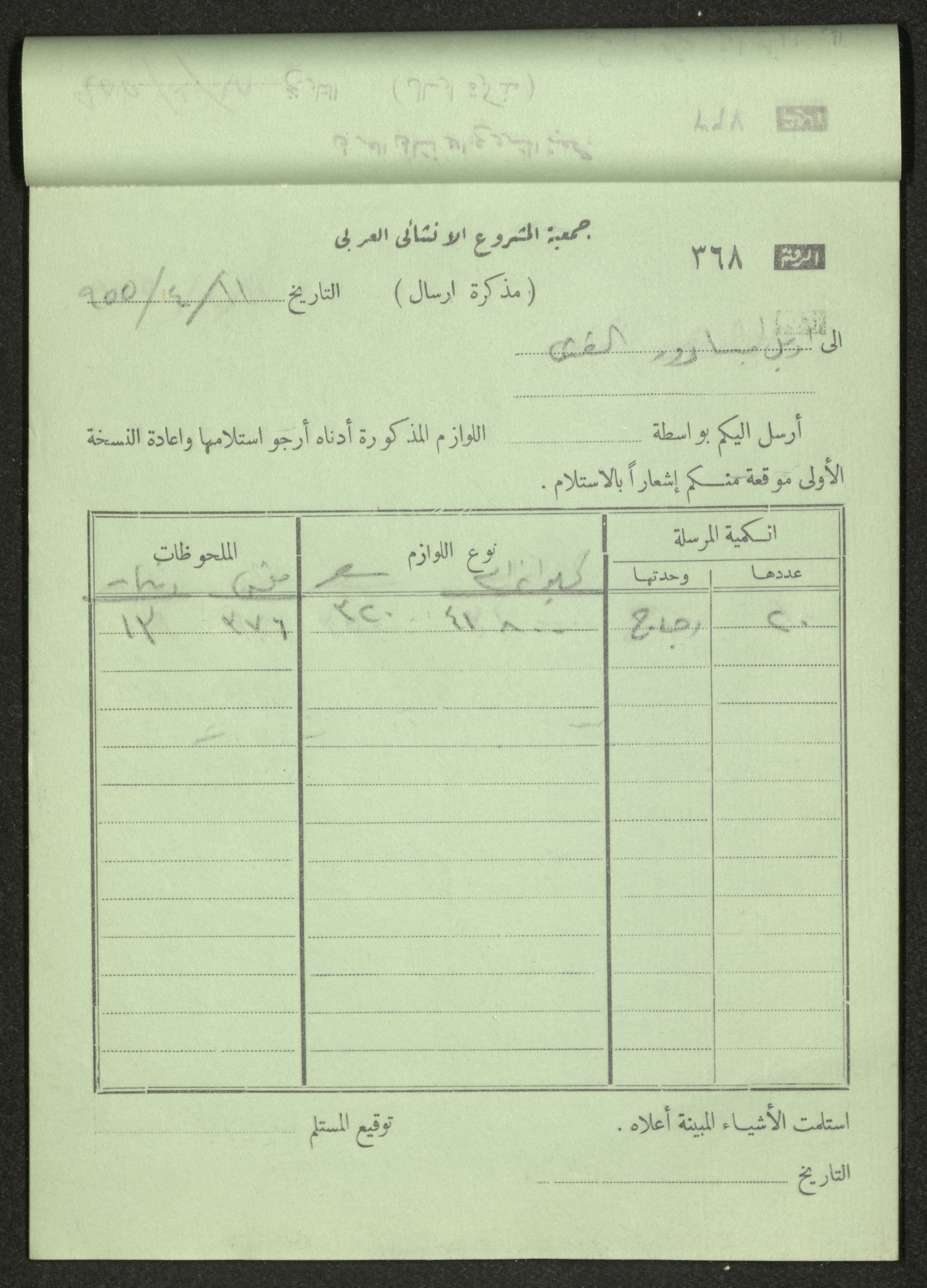 Found in the Arab Development Society Collection, this document shows dispatch notes for the year 1955 issued by the Society.