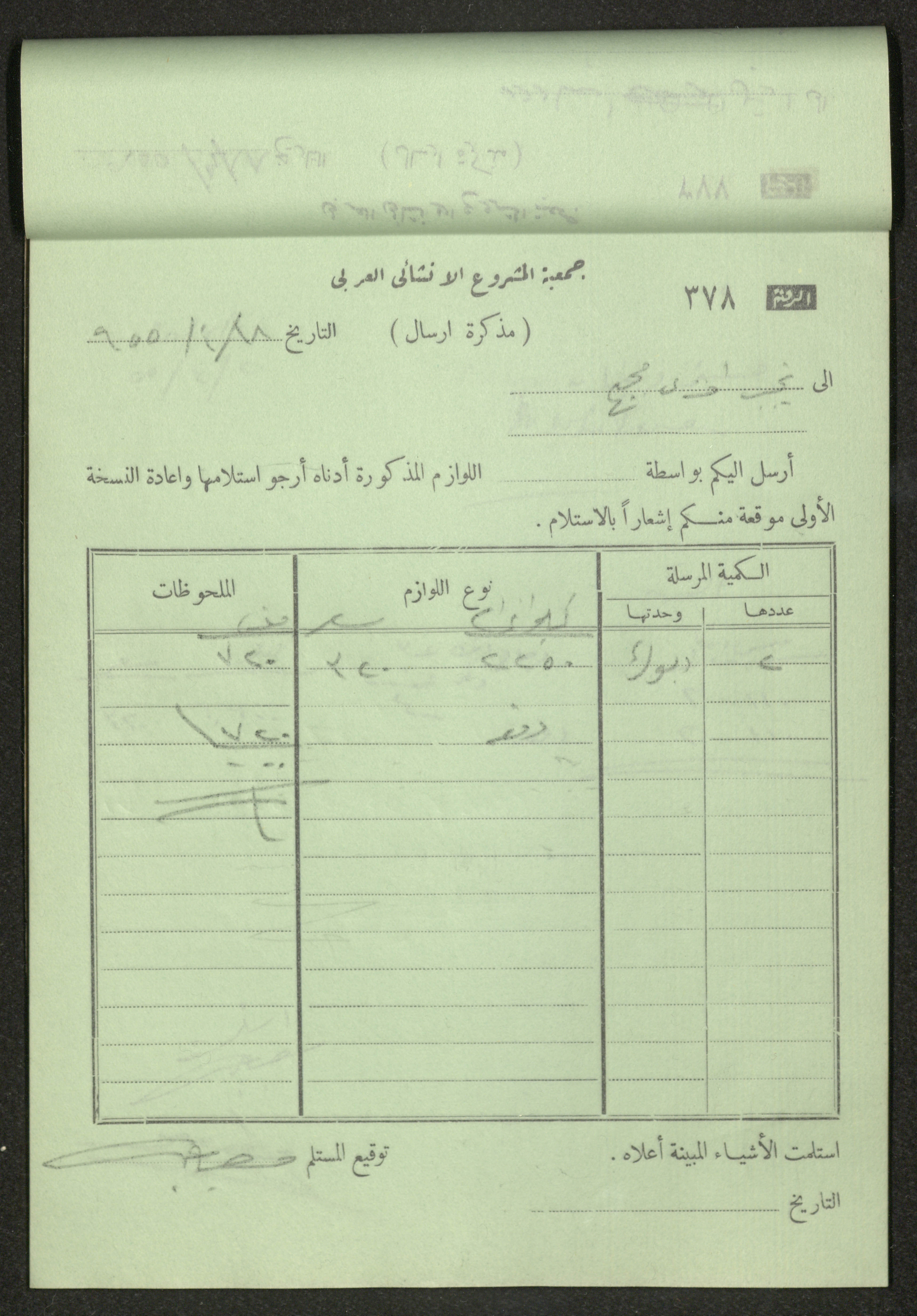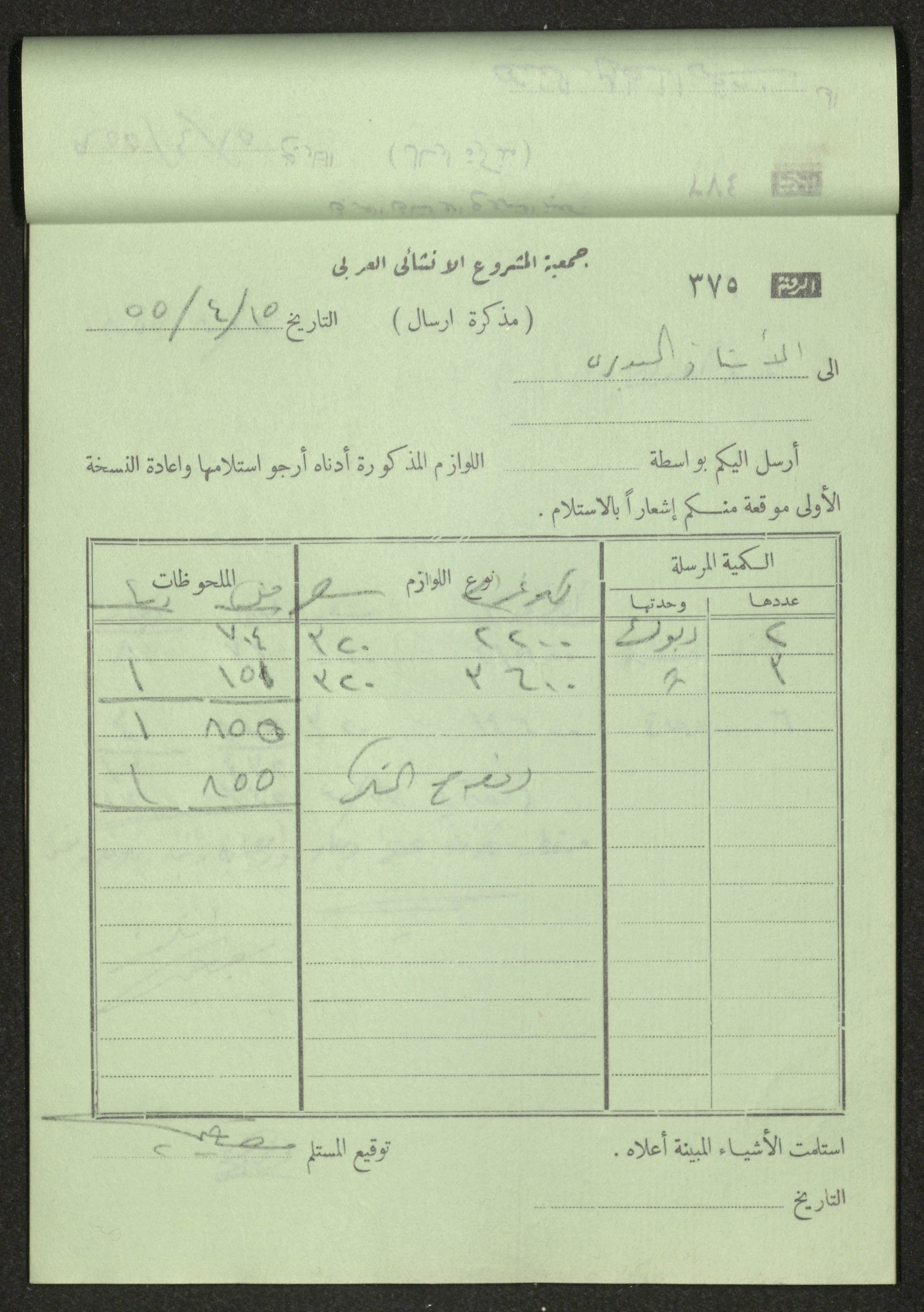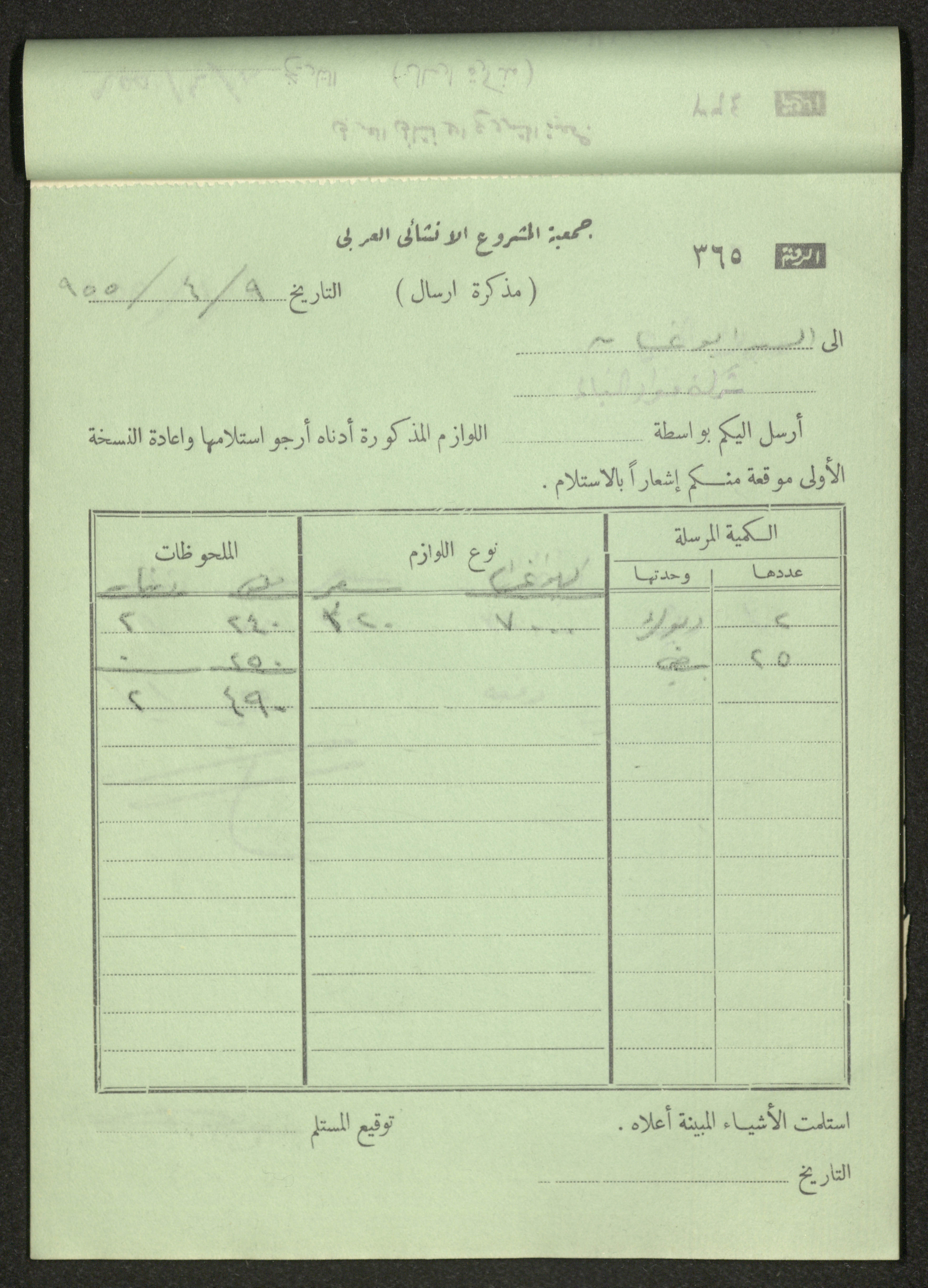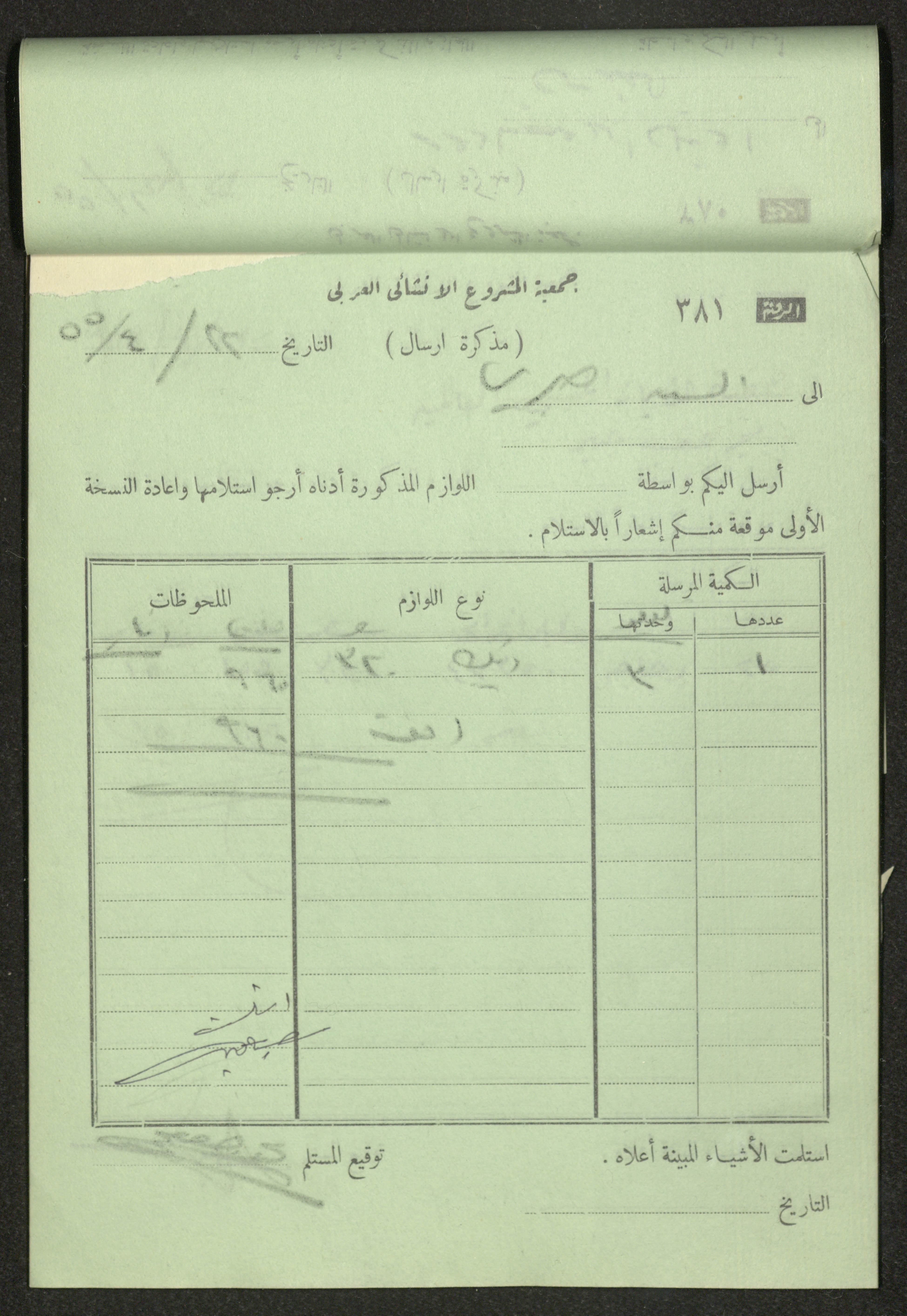 Found in the Arab Development Society Collection, this document shows dispatch notes for the year 1955 issued by the Society.