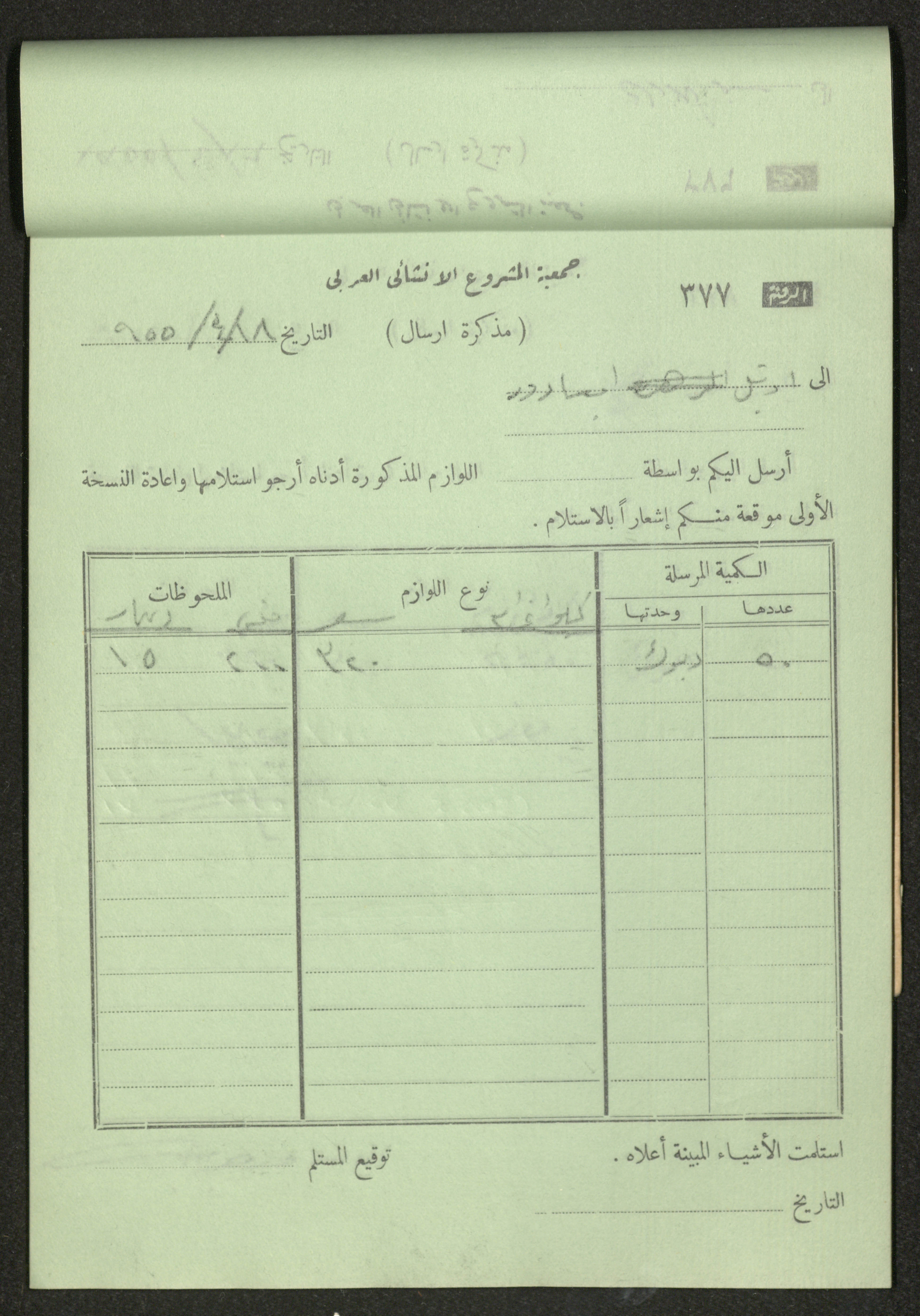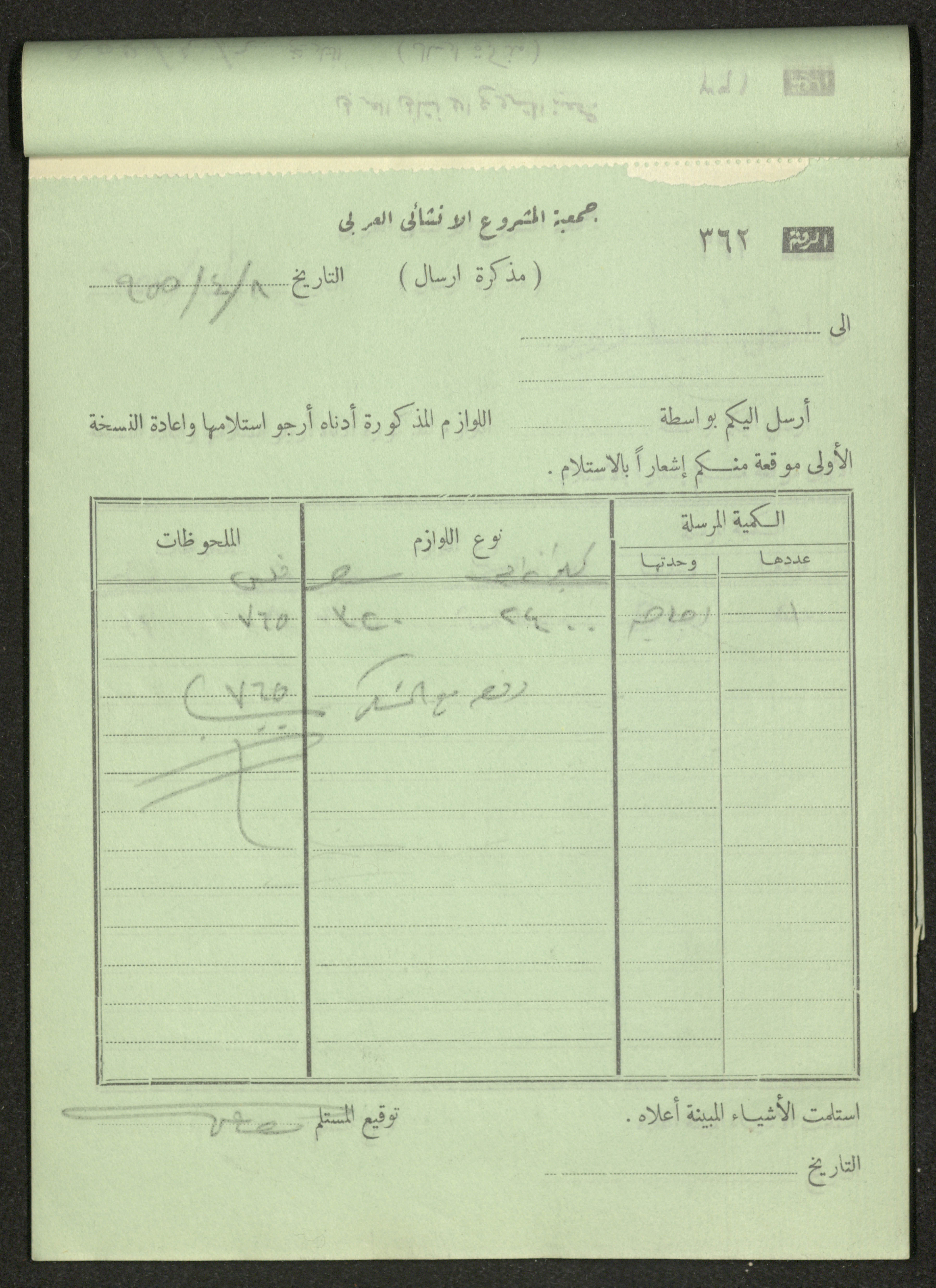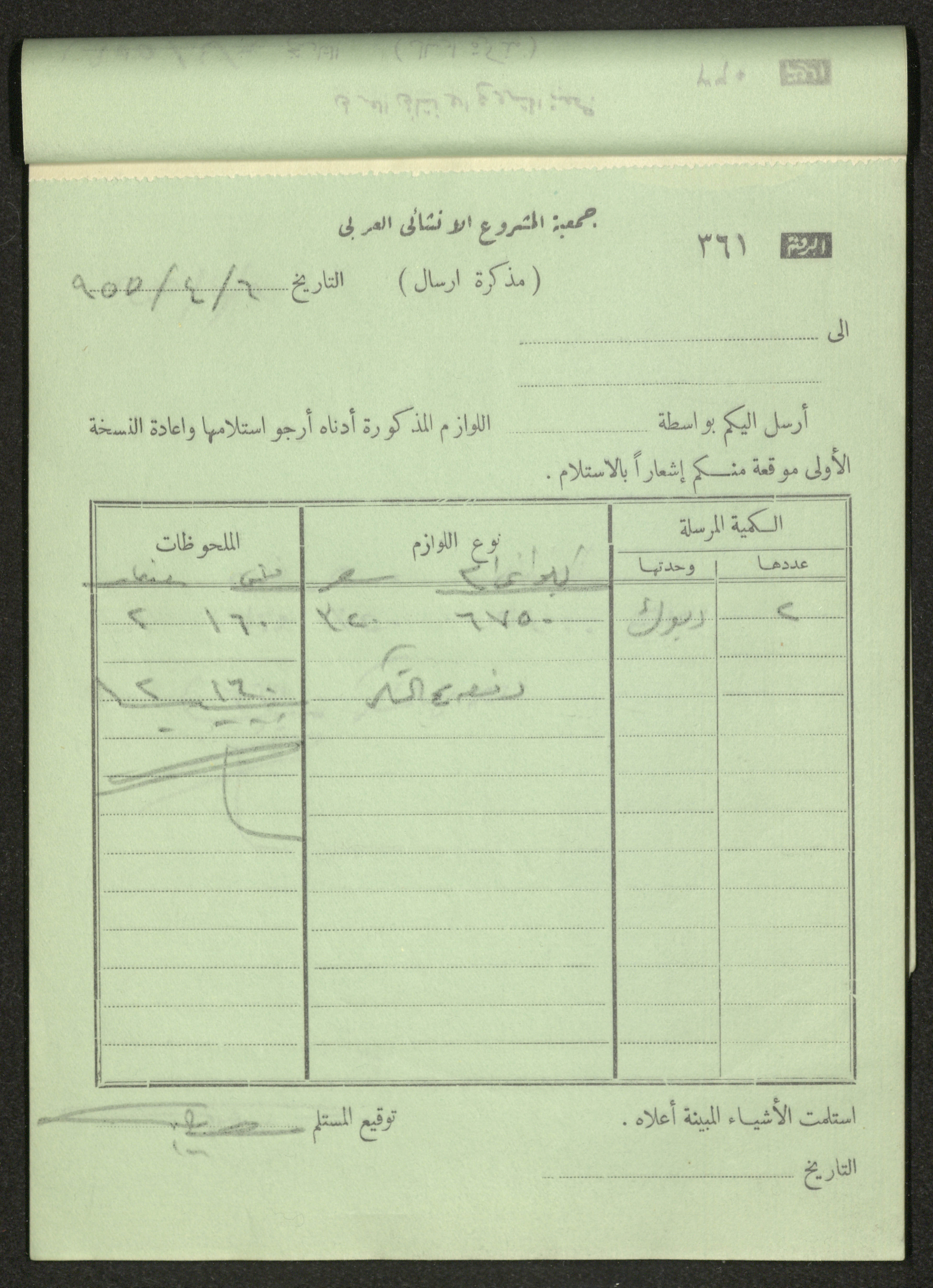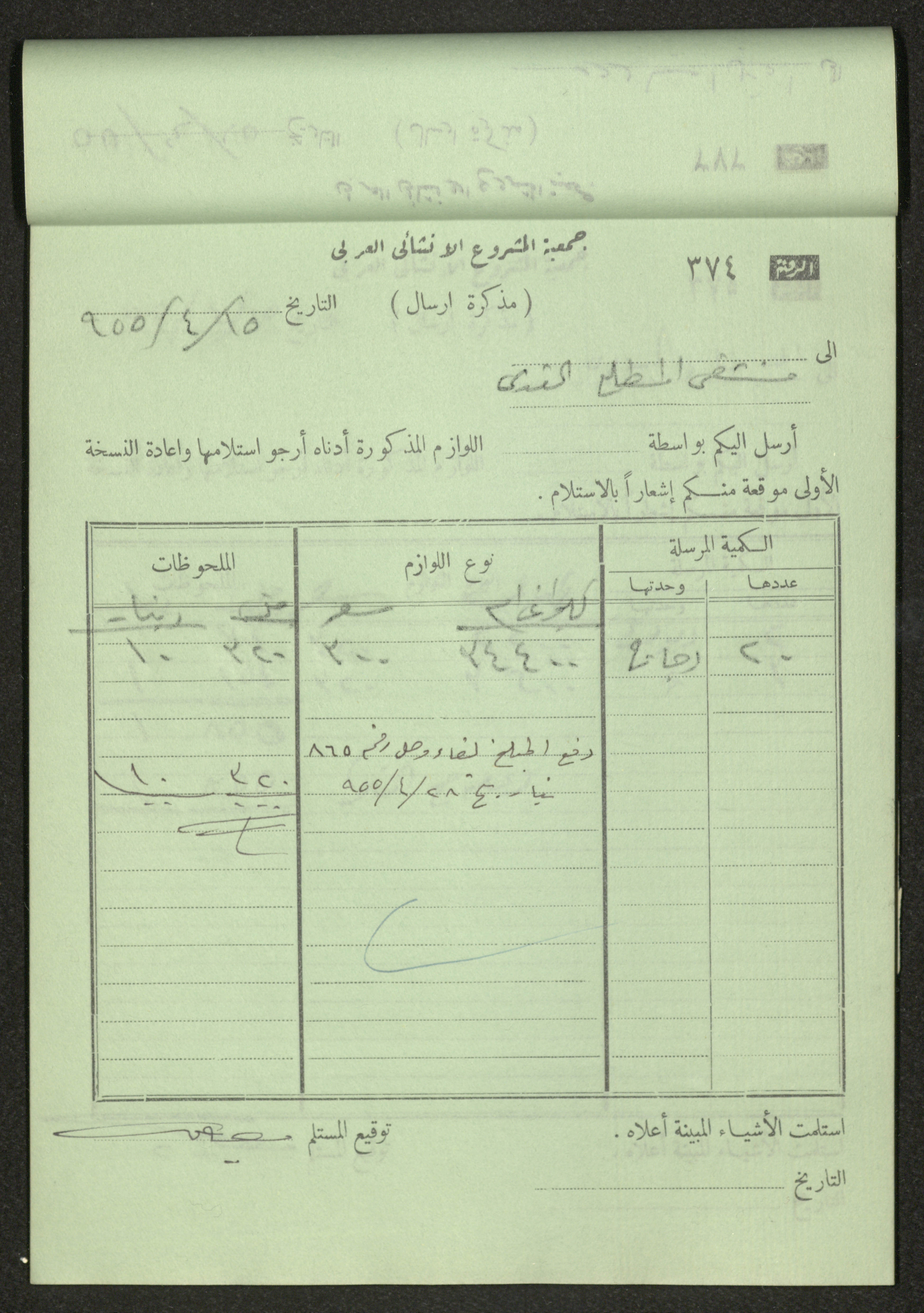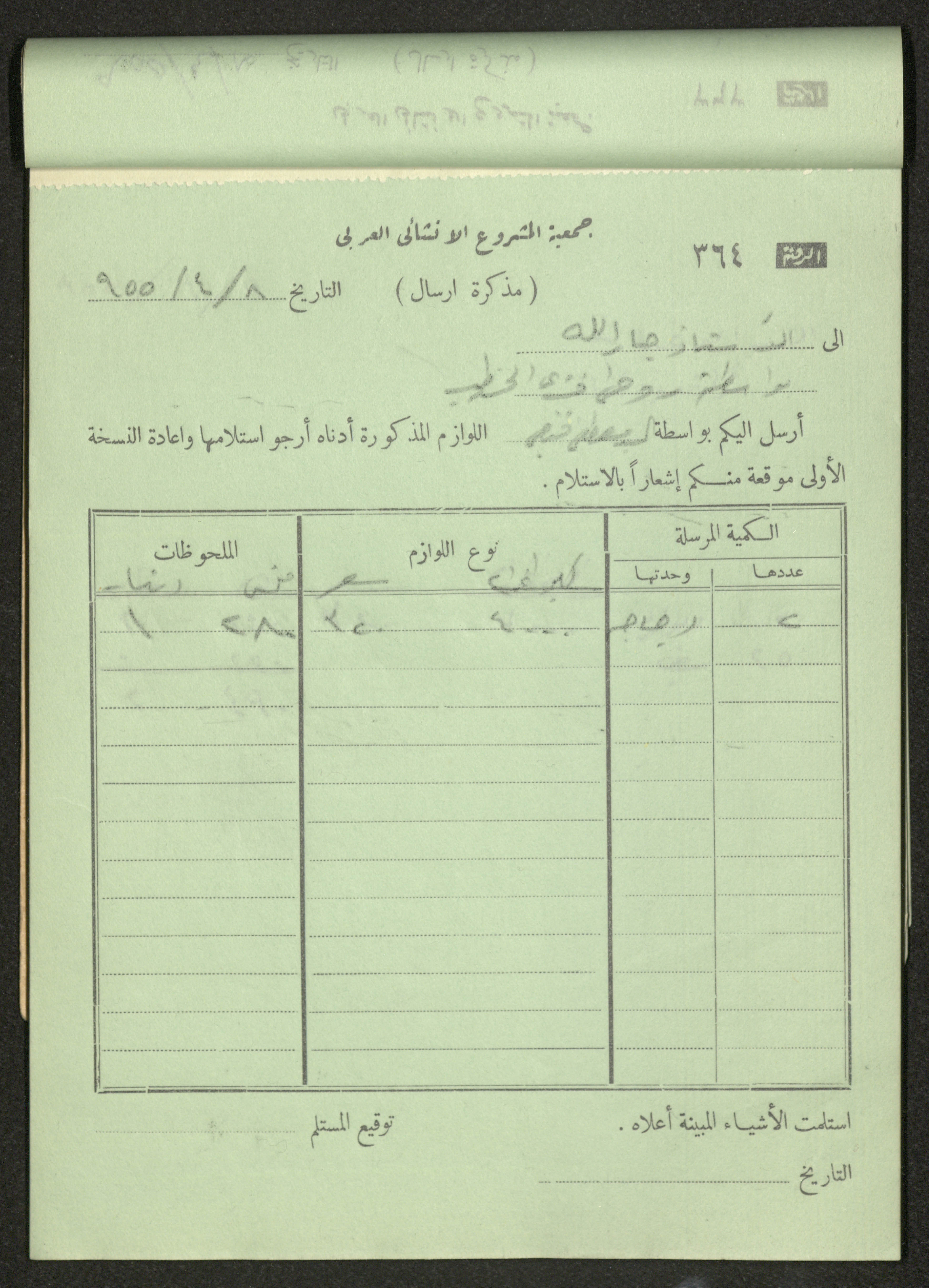 Found in the Arab Development Society Collection, this document shows dispatch notes for the year 1955 issued by the Society.
