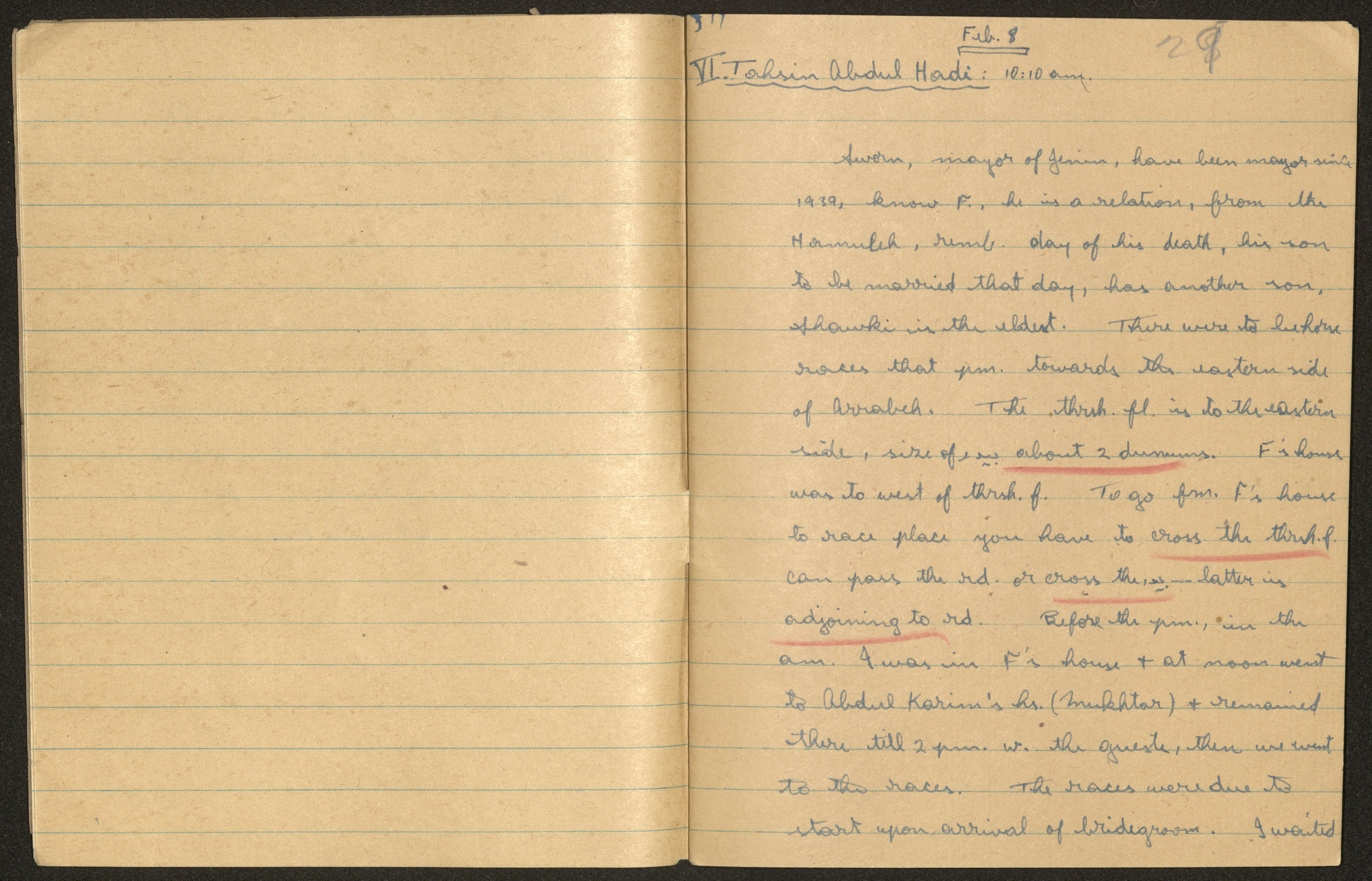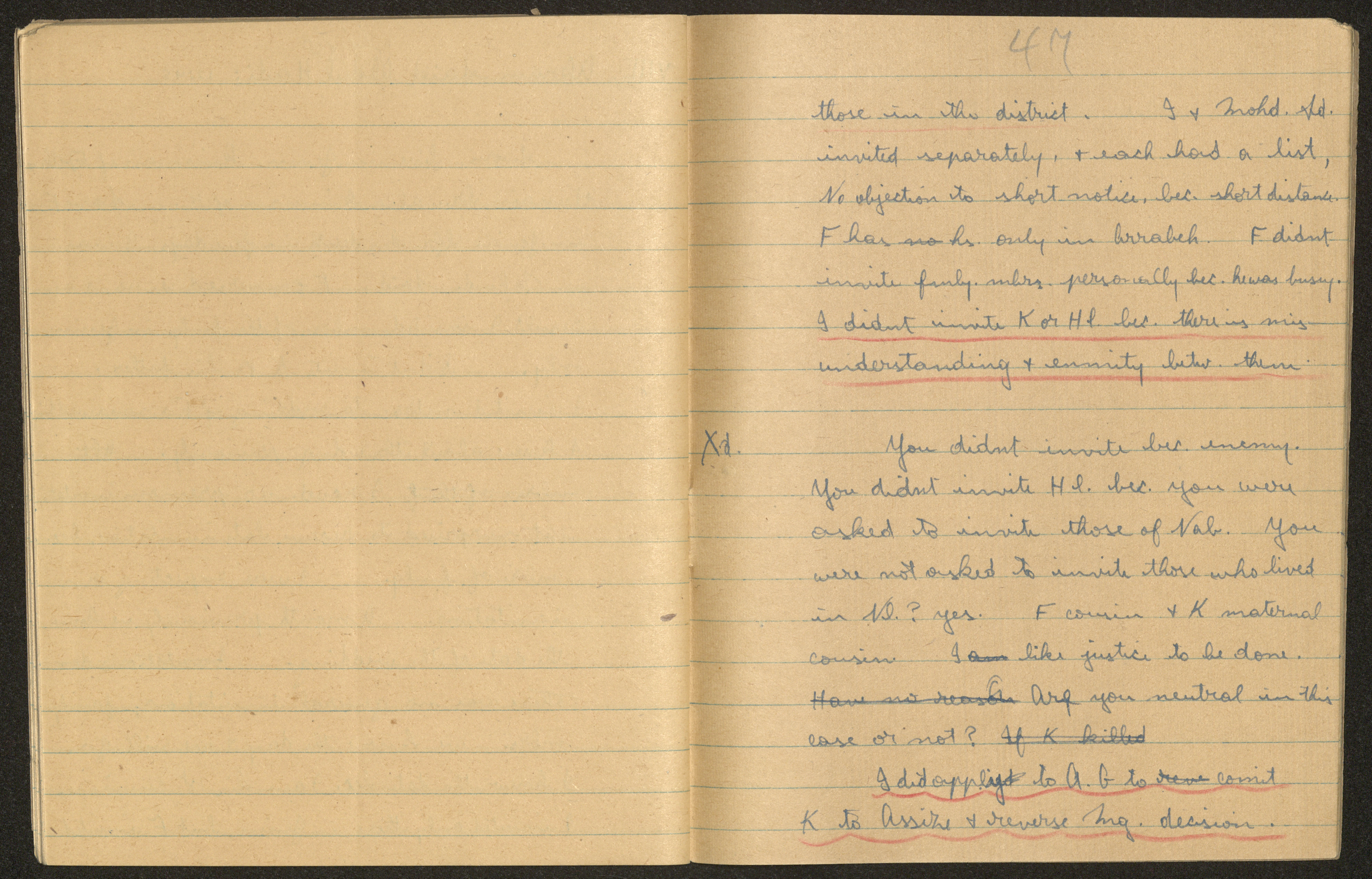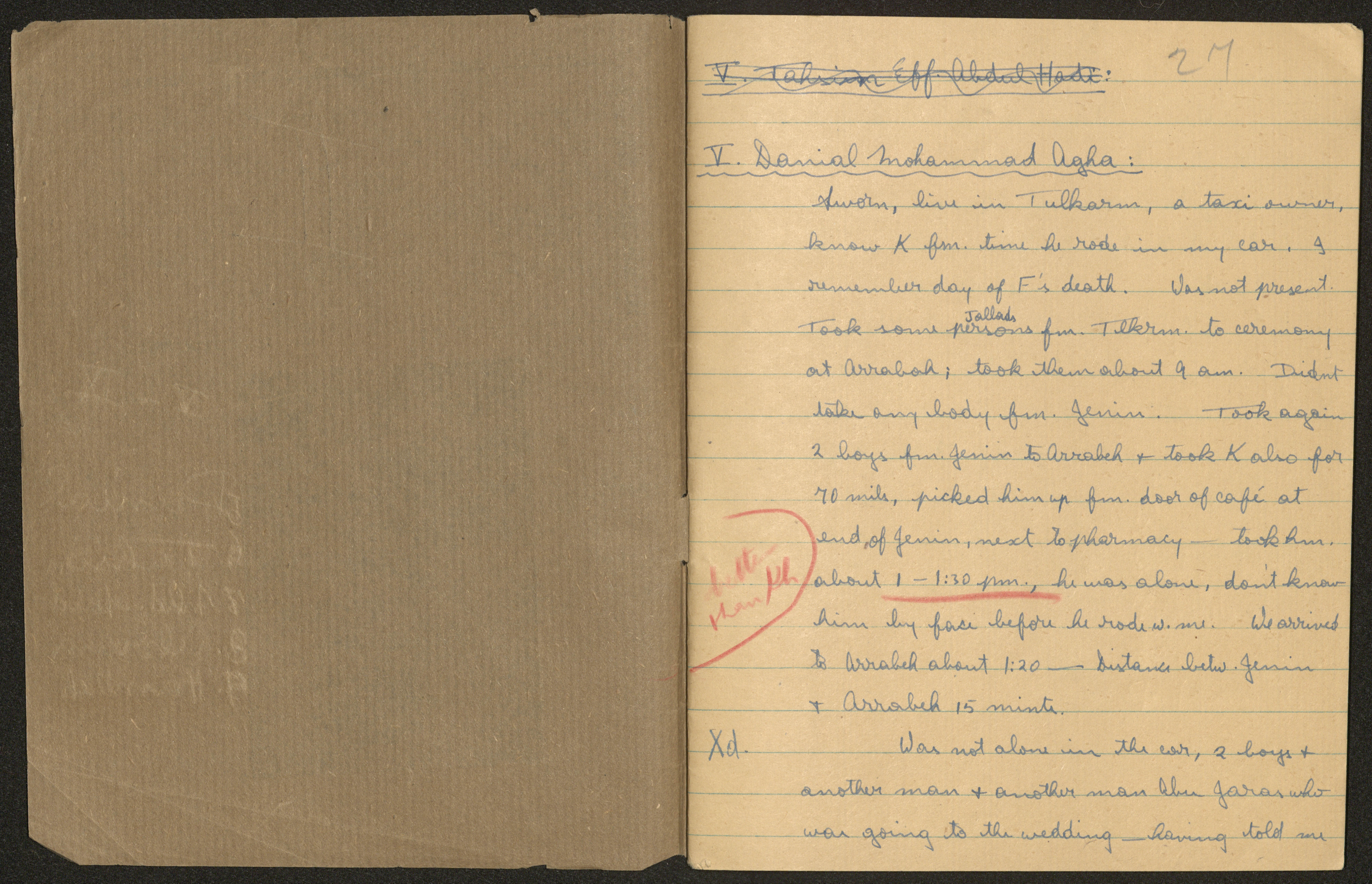 وثيقة مكتوبة باللغة الانجليزية، تتضمن كراسات طالب دون عليها موسى العمي. وجدت في مجموعة المشروع الانشائي العربي