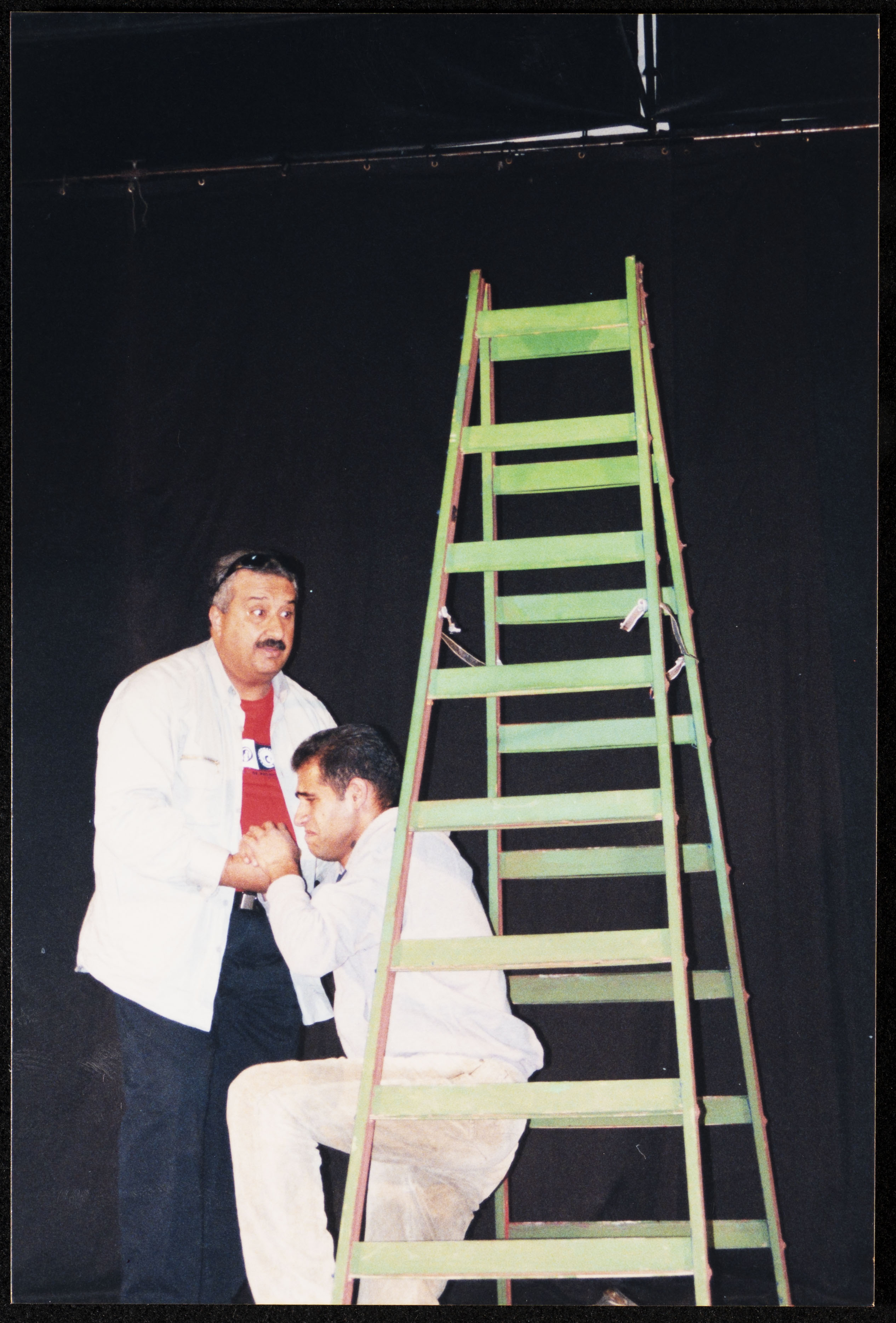مسرحية شؤون أبو شاكر 2001 من انتاج مسرح عشتار، تأليف جماعي واخرج موجيولا أديبايو من ابريطانيا، ومثل فيها كل من إيمان عون، منيرة زريقي، وليد عبد السلام، رائد العيسة، شادي زمرد، محمد عيد.