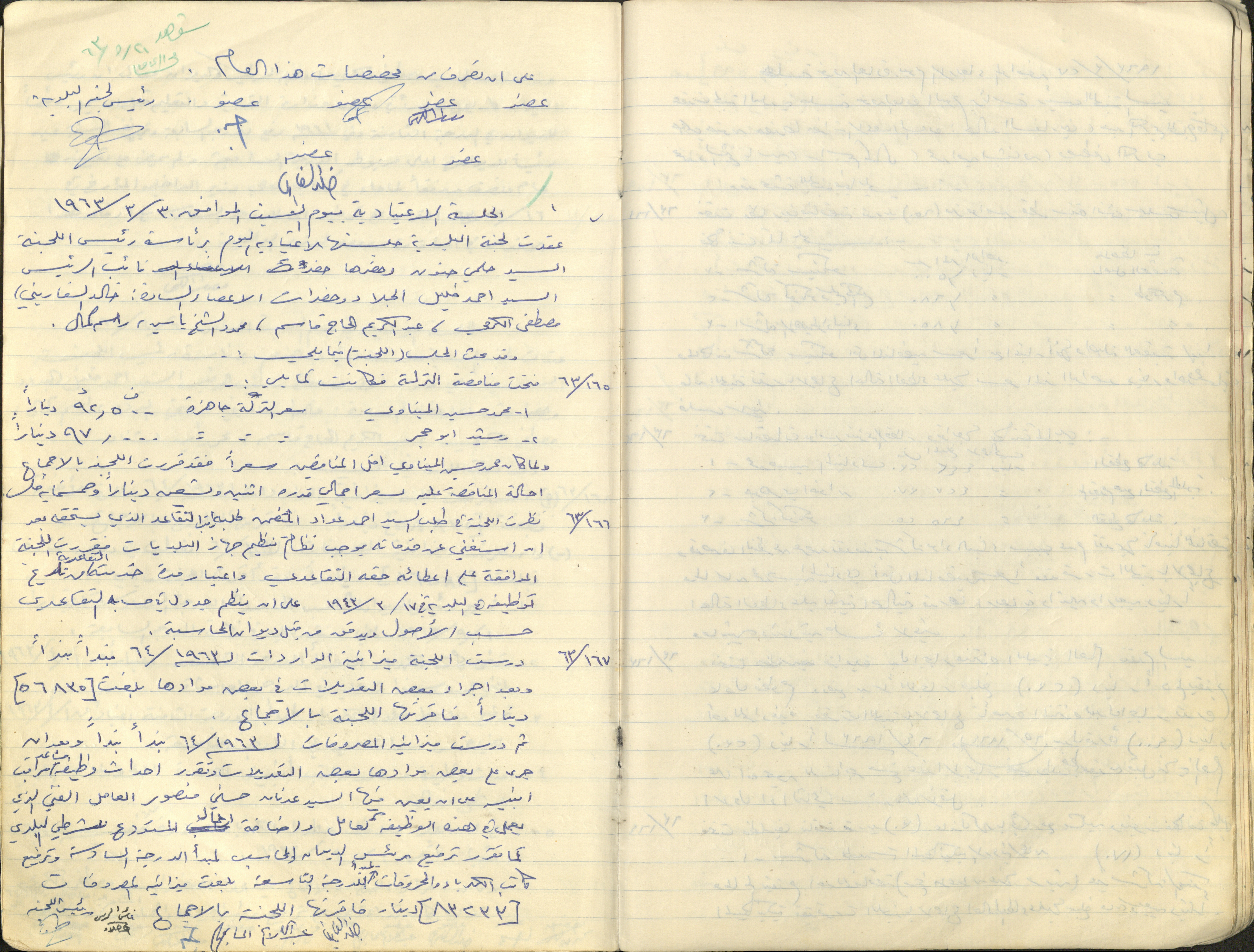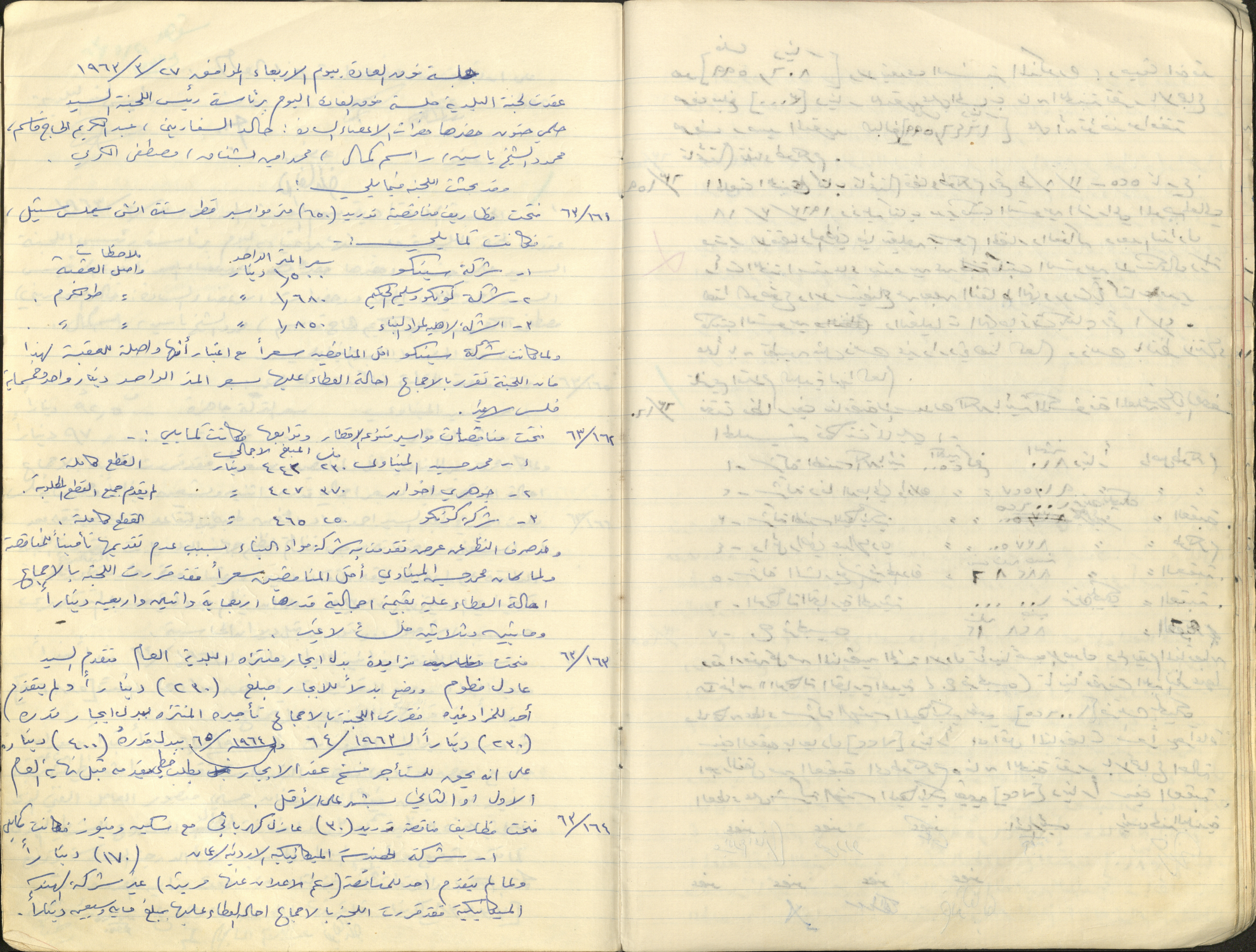 Found in the Tulkarm Municipality records, these are handwritten minutes of the municipal meetings. The notes record the proceedings and decisions made by the municipality on service provision and local population affairs.