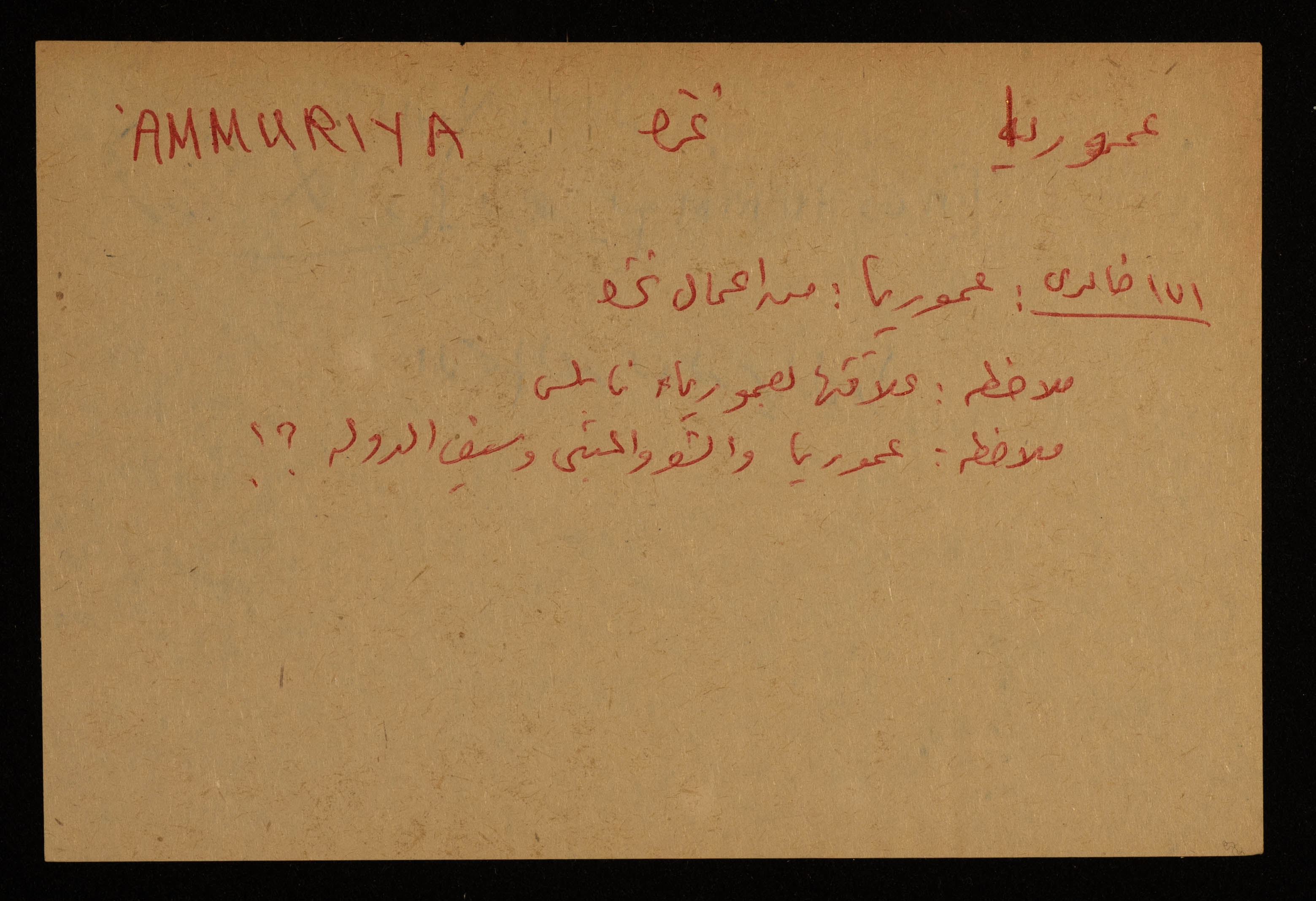 Handwritten in Arabic, this paper clipping documents the name of "'Ammuriya", a spring in Gaza.