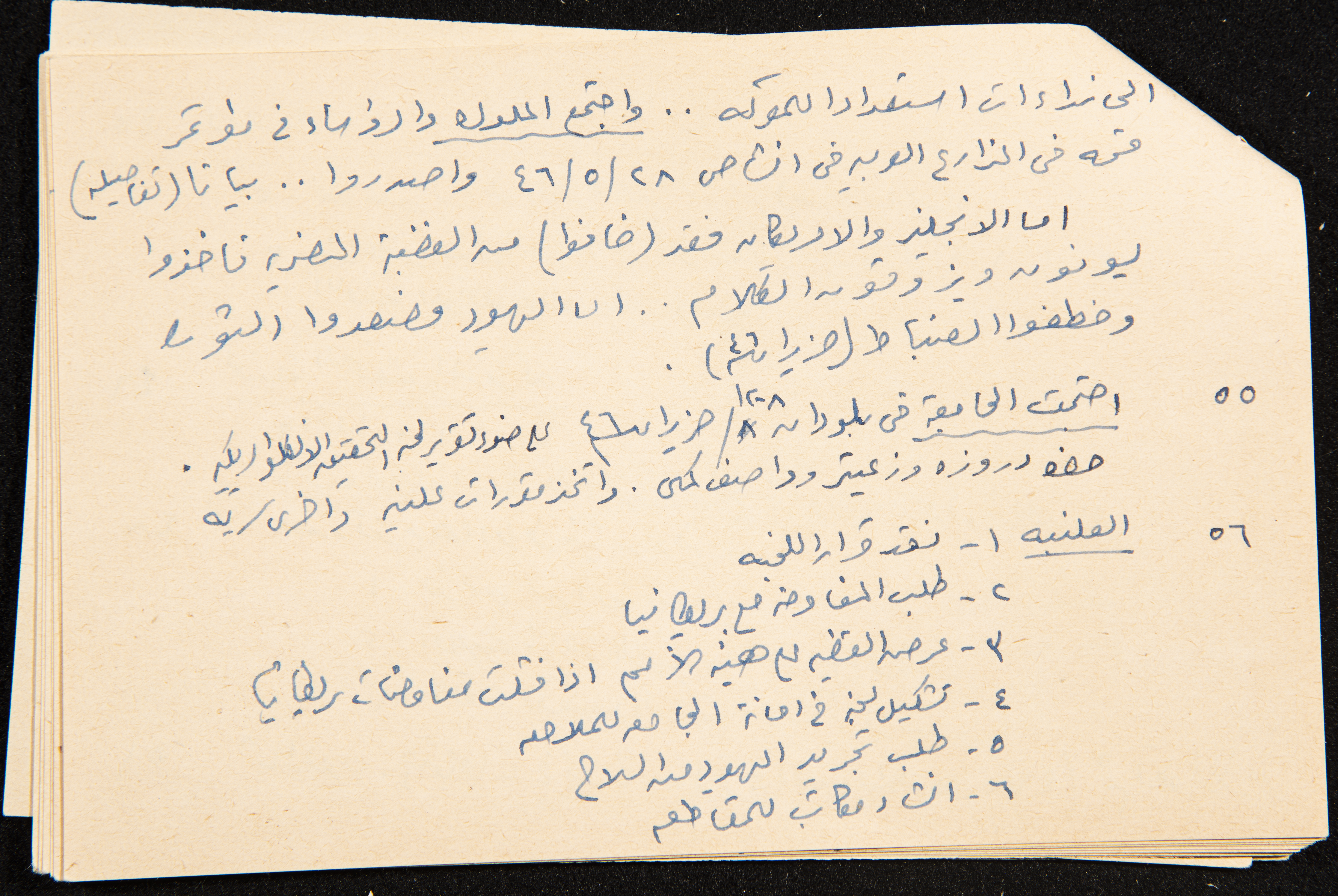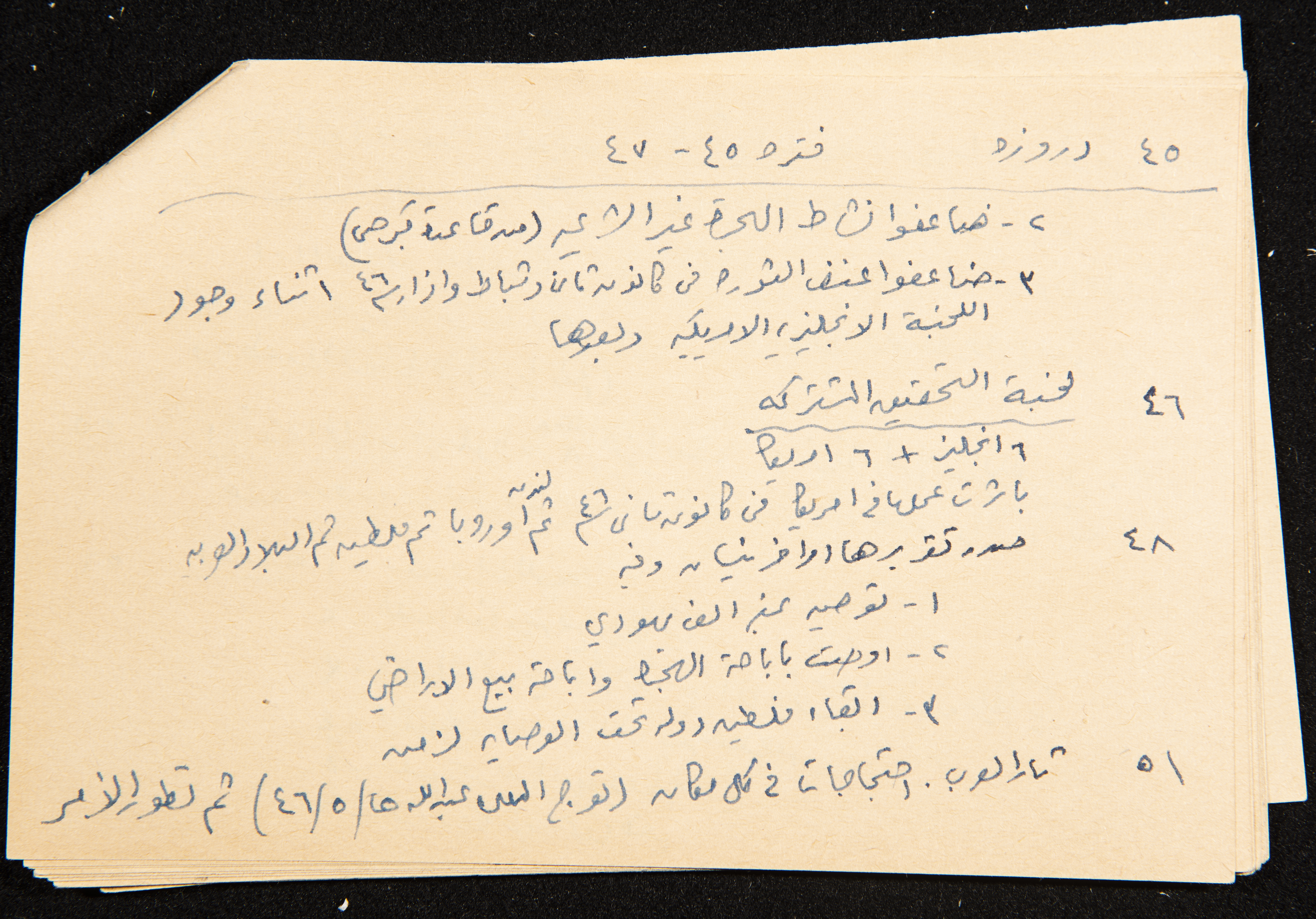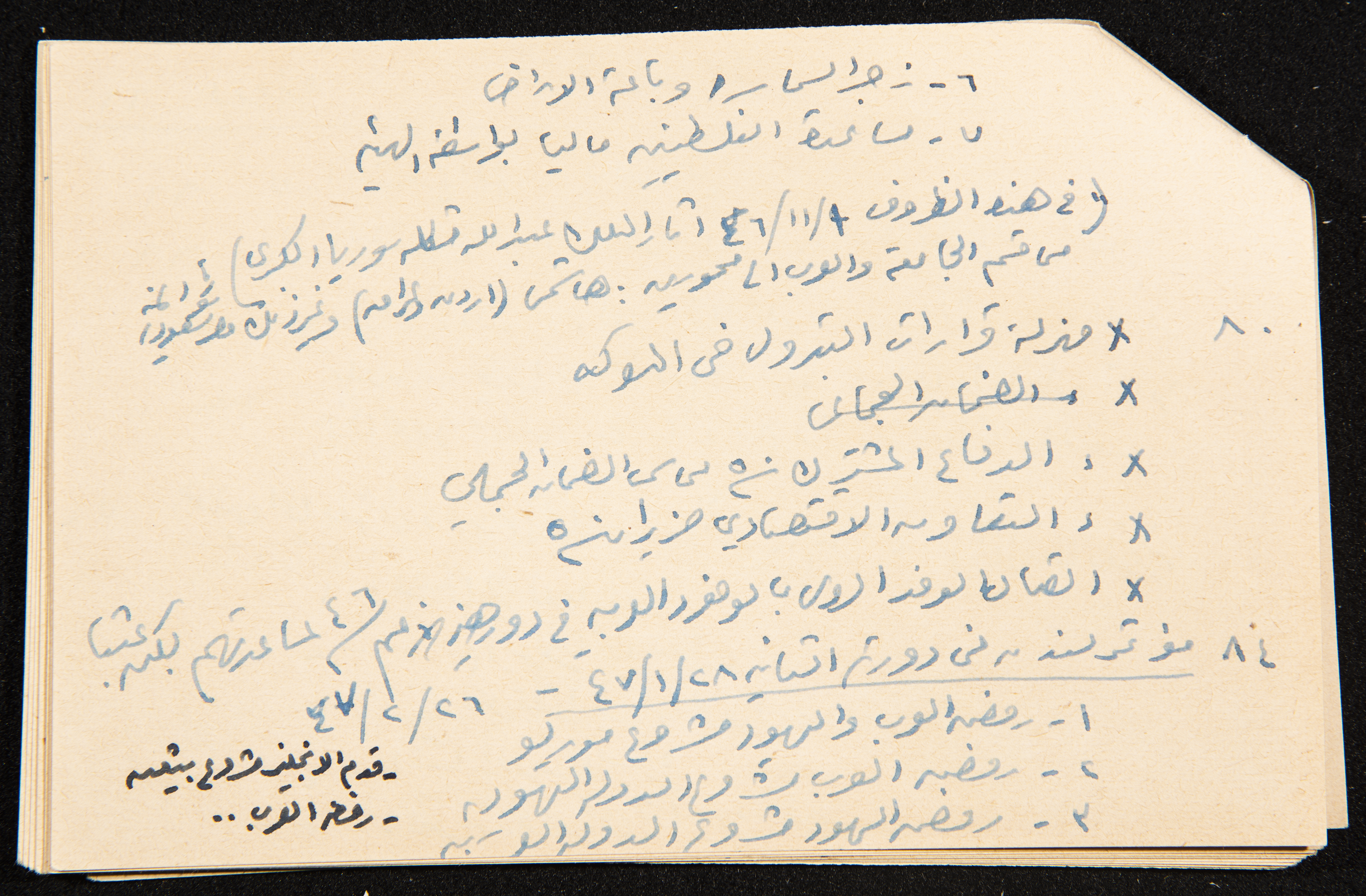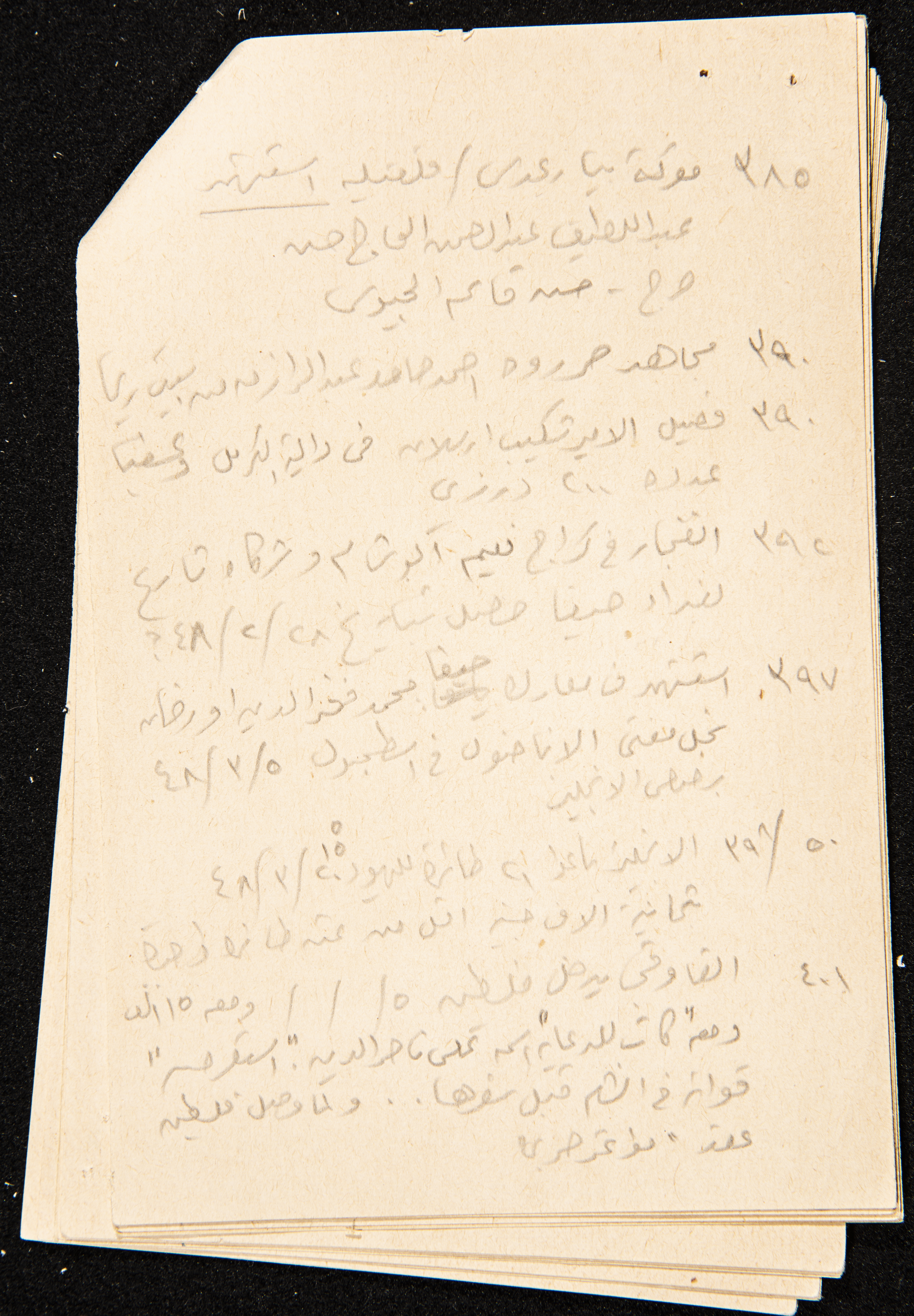 توثق هذه القصاصة، المكتوبة بخط اليد، ملاحظات كتبها الزواتي من كتاب عزة دروزة وكان هدفه جمع المعلومات حتى سنة 1954 إلا أنه يشير إلى أنه جمع لغاية 22/7/1947. بلغ مجموعة هذه القصاصات 30 قصاصة مجموعة كملف واحد.