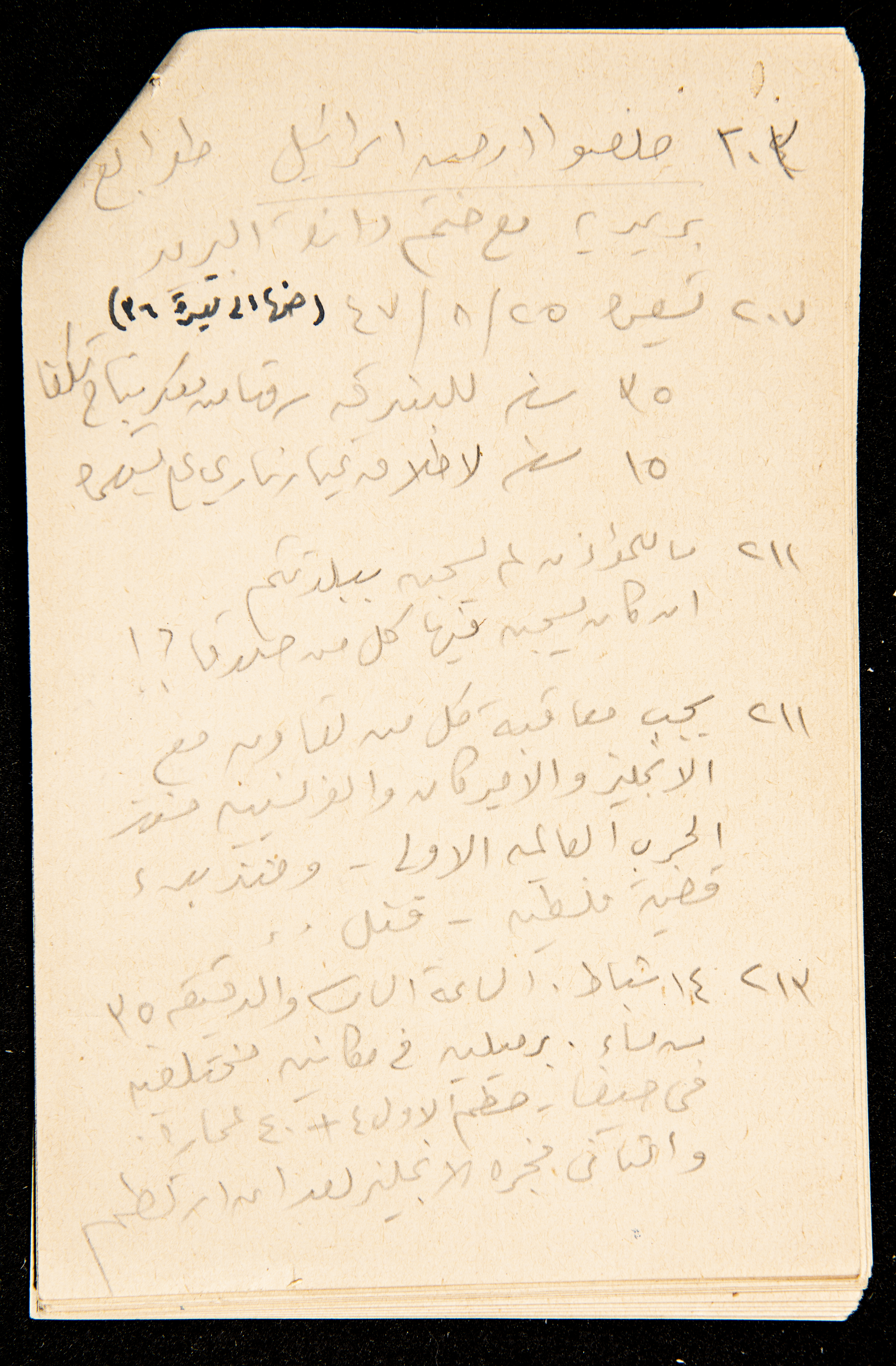 قصاصة توثق ملاحظات من كتاب عزة دروزة