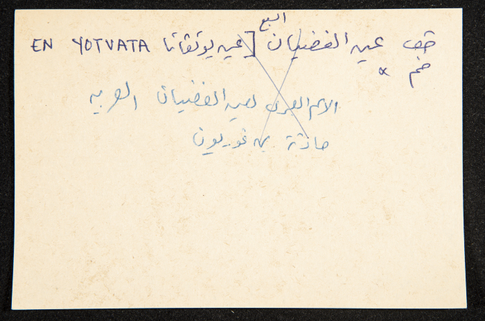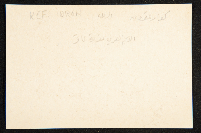 Handwritten in Arabic, this paper clipping documents the name of "'Aqir (Kefar Iqron in Hebrew", a village in al-Ramleh.
