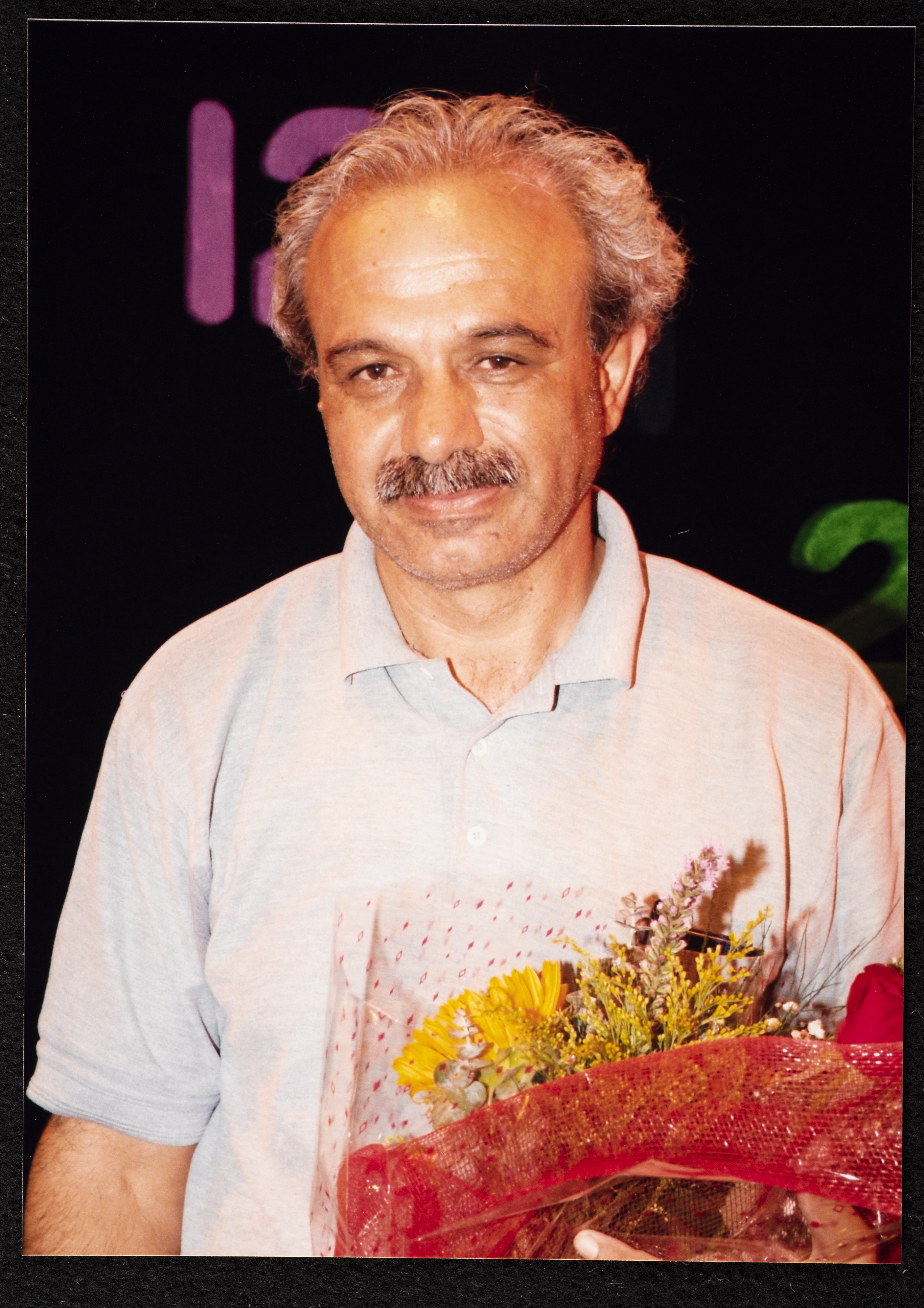 A colour photograph of Rady Shhadeh the director of the "Ṣah Ṣah" play produced by al-Midan Theatre. Addressing children, the said play tells the story of a naughty boy who lets his dreams and imagination loose through stars and planets. Written by Egyptian poet Ṣalah Jahin and directed by Rady Shhadeh, the play mixes acting with music and puppetry.