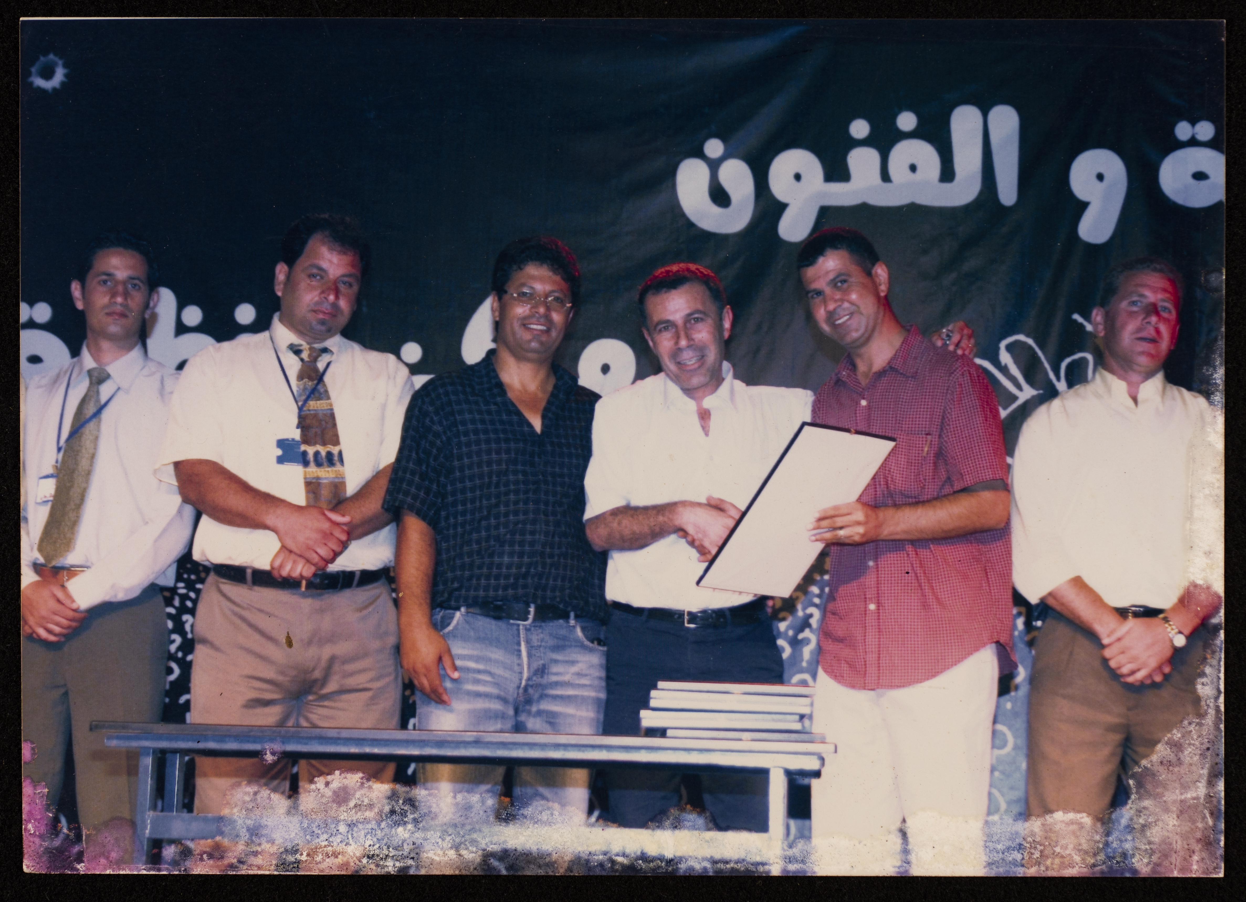 صورة لأعضاء لجنة مهرجان صفا الرابع للثقافة والفنون أثناء تكريم ابراهيم معالي شاركت في فعاليات المهرجان الذي أقامه مركز حنظلة الثقافي في مدرسة ذكور صفا عام 2007 برعاية مؤسسة عبد المحسن القطان وبالتعاون مع مركز الفن الشعبي.