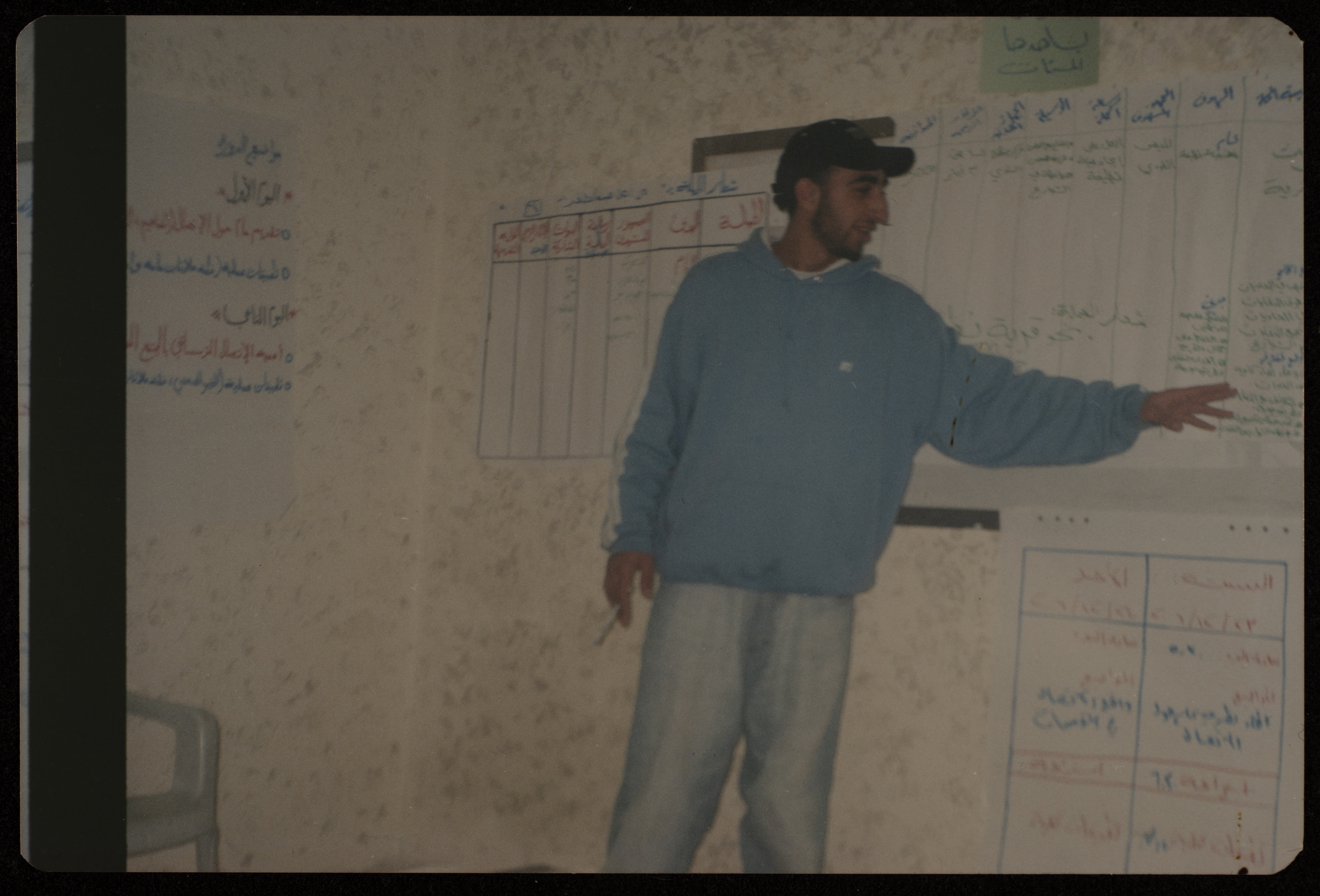 Taken on 23 February 2006, this photograph captures Yusef Karaja at the "Developing Communication Skills at Local Institutions" workshop held by the Handalah Cultural Center in Saffa village in cooperation with Bisan Center.