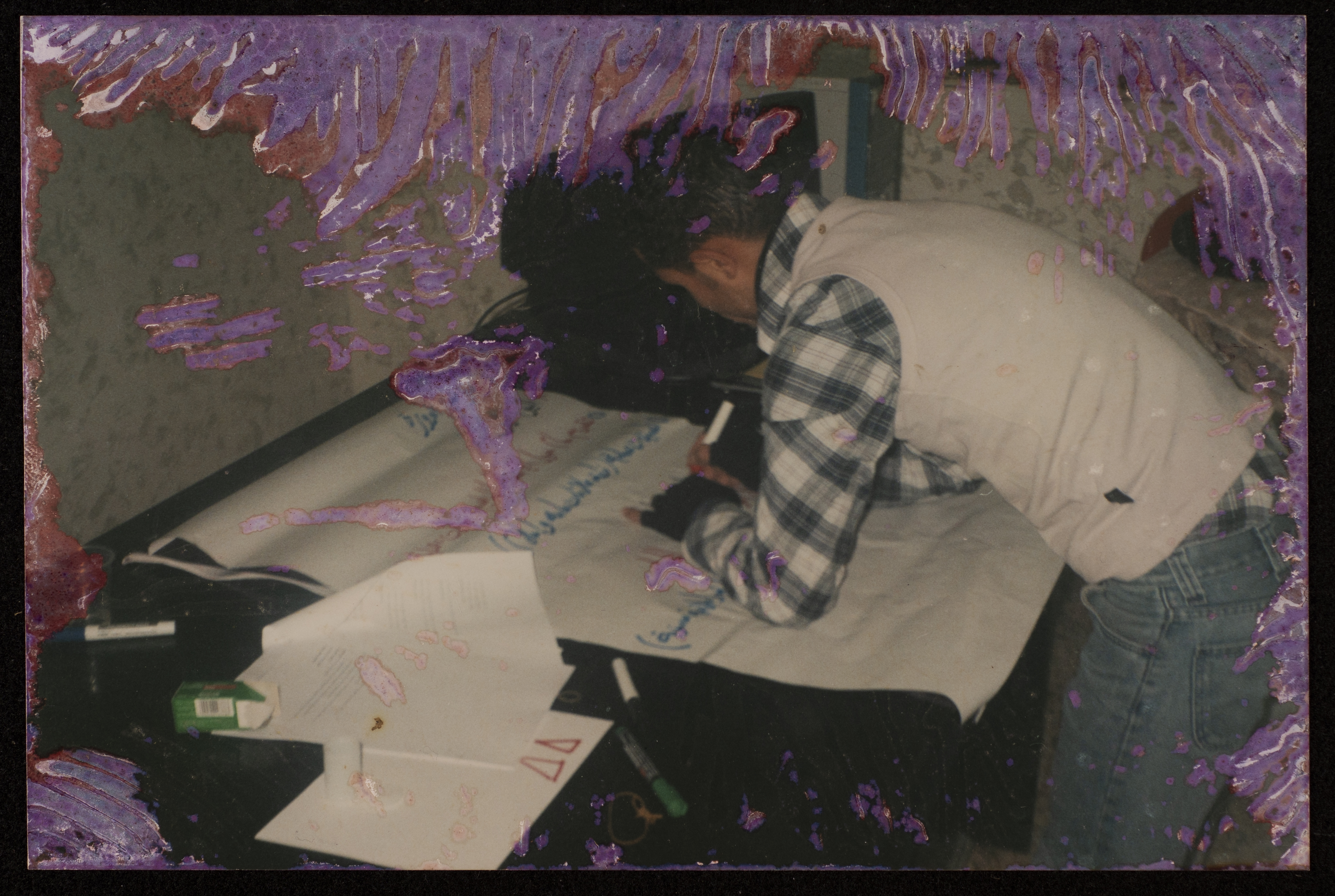 Taken on 23 February 2006, this photograph captures one of the participants at the "Developing Communication Skills at Local Institutions" workshop held by the Handalah Cultural Center in Saffa village in cooperation with Bisan Center.