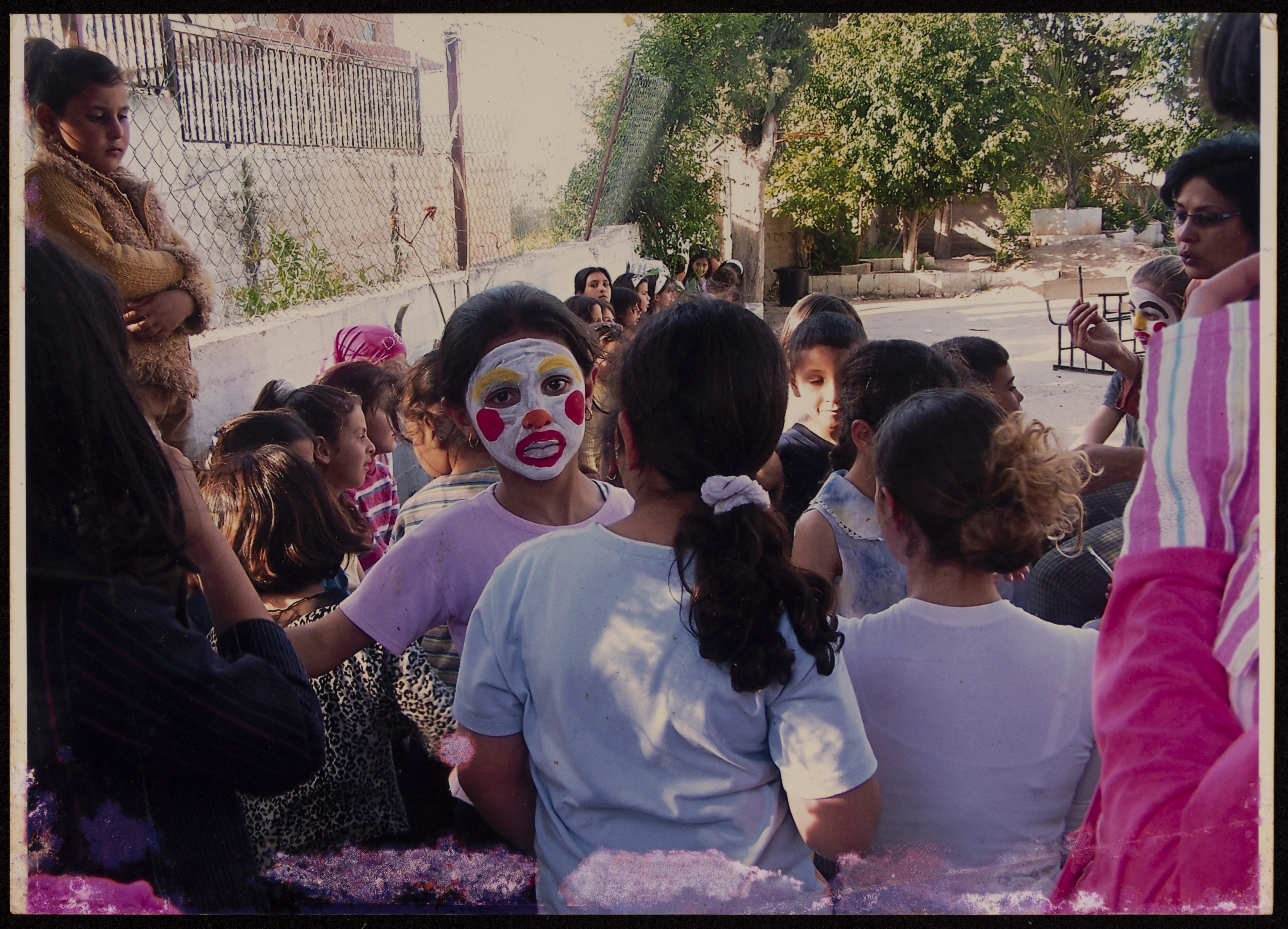 صورة لمجموعة من الأطفال أثناء المشاركة في فعاليات مخيم غسان كنفاني الصيفي الذي نظمه مركز حنظلة الثقافي في مدرسة ذكور صفا الاساسية.