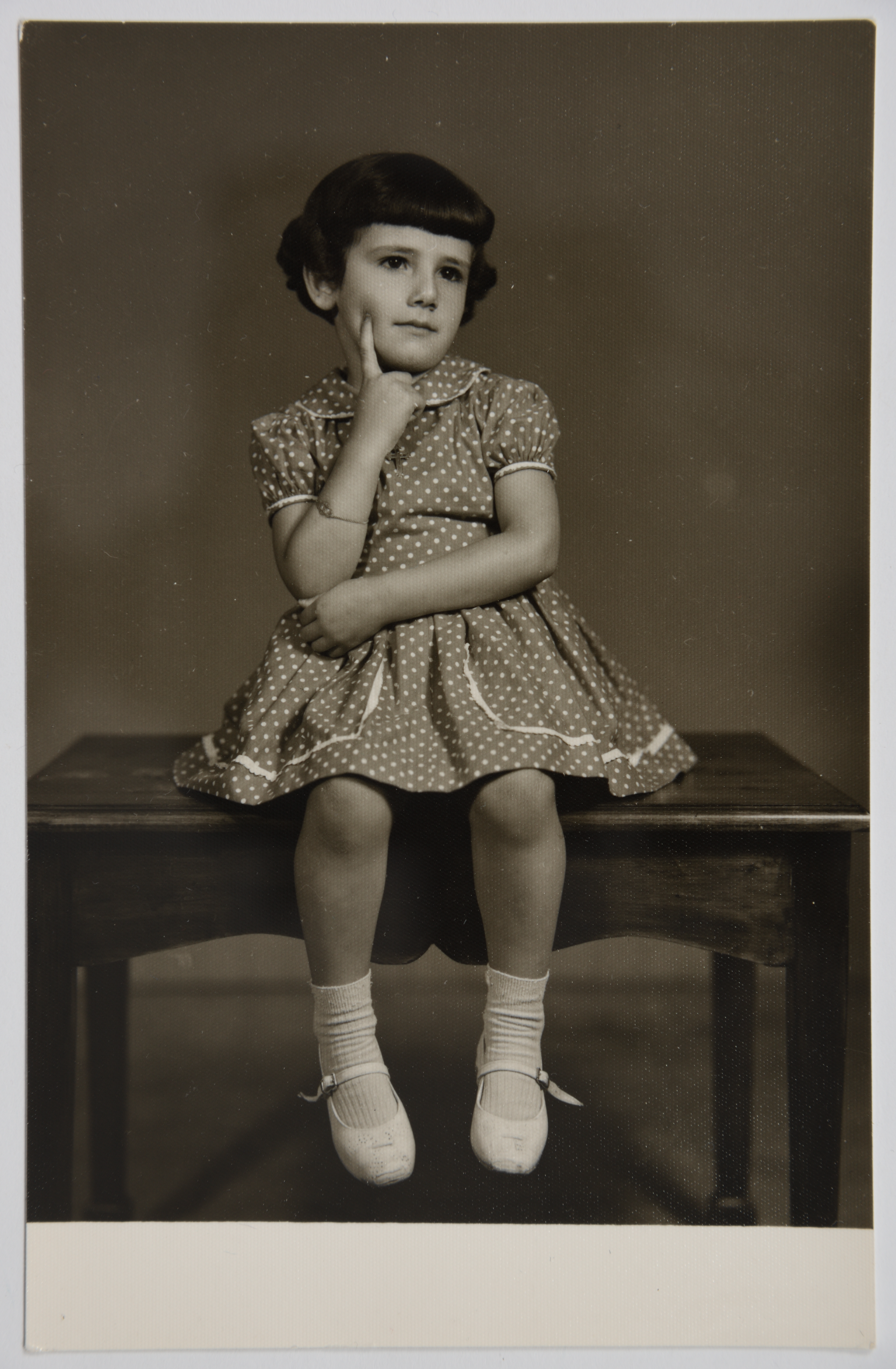 صورة غير ملونة تظهر فيها الكسندرا سمعان عشراوي ابنة سلوى وسمعان في فترة الستينات من القرن الماضي.